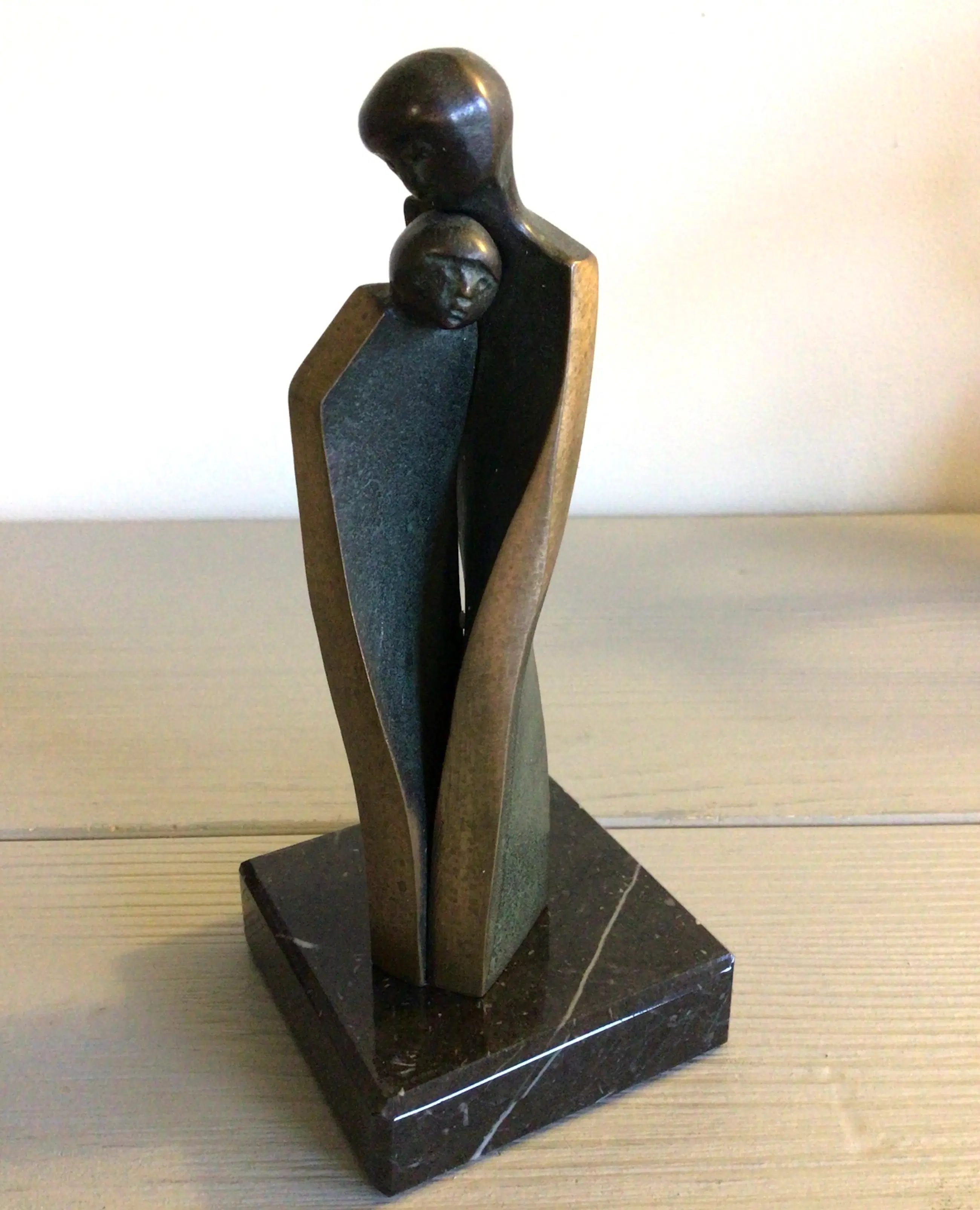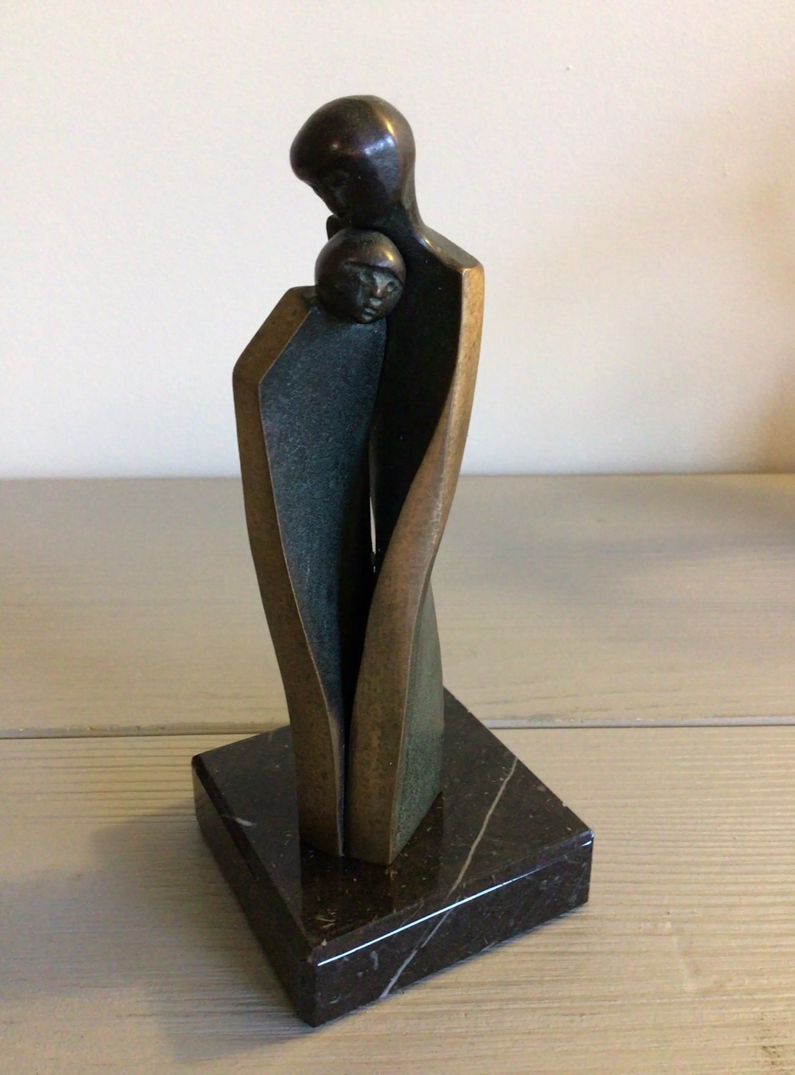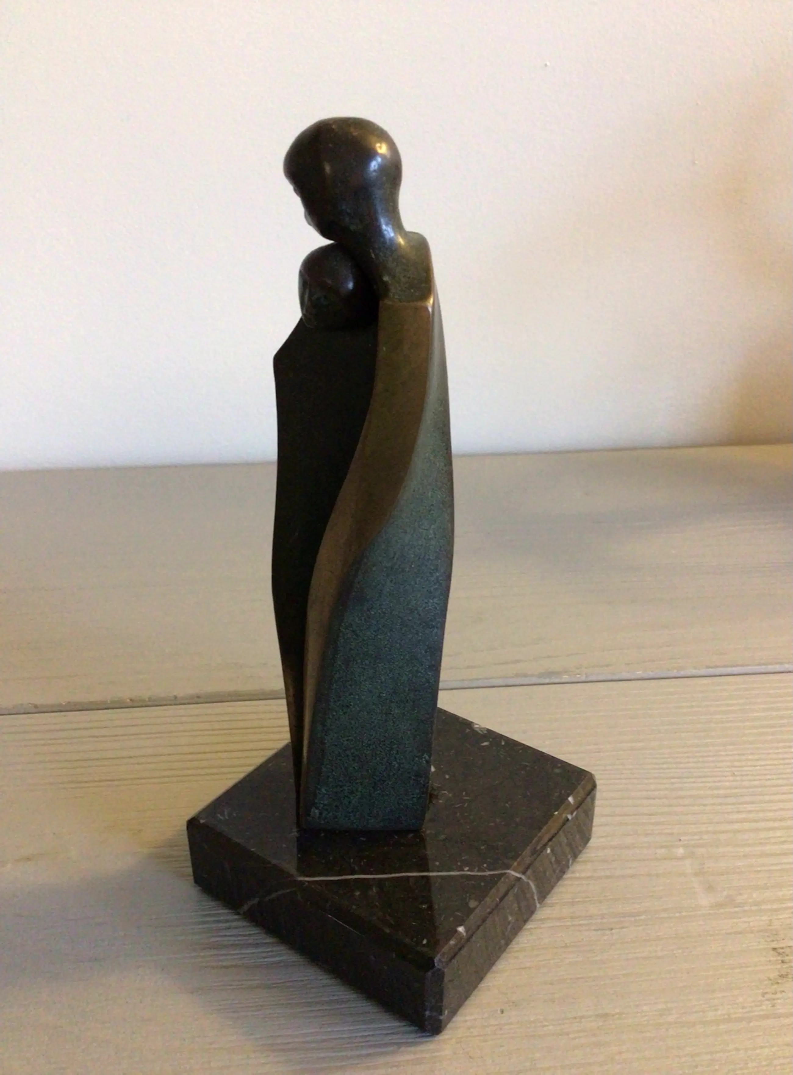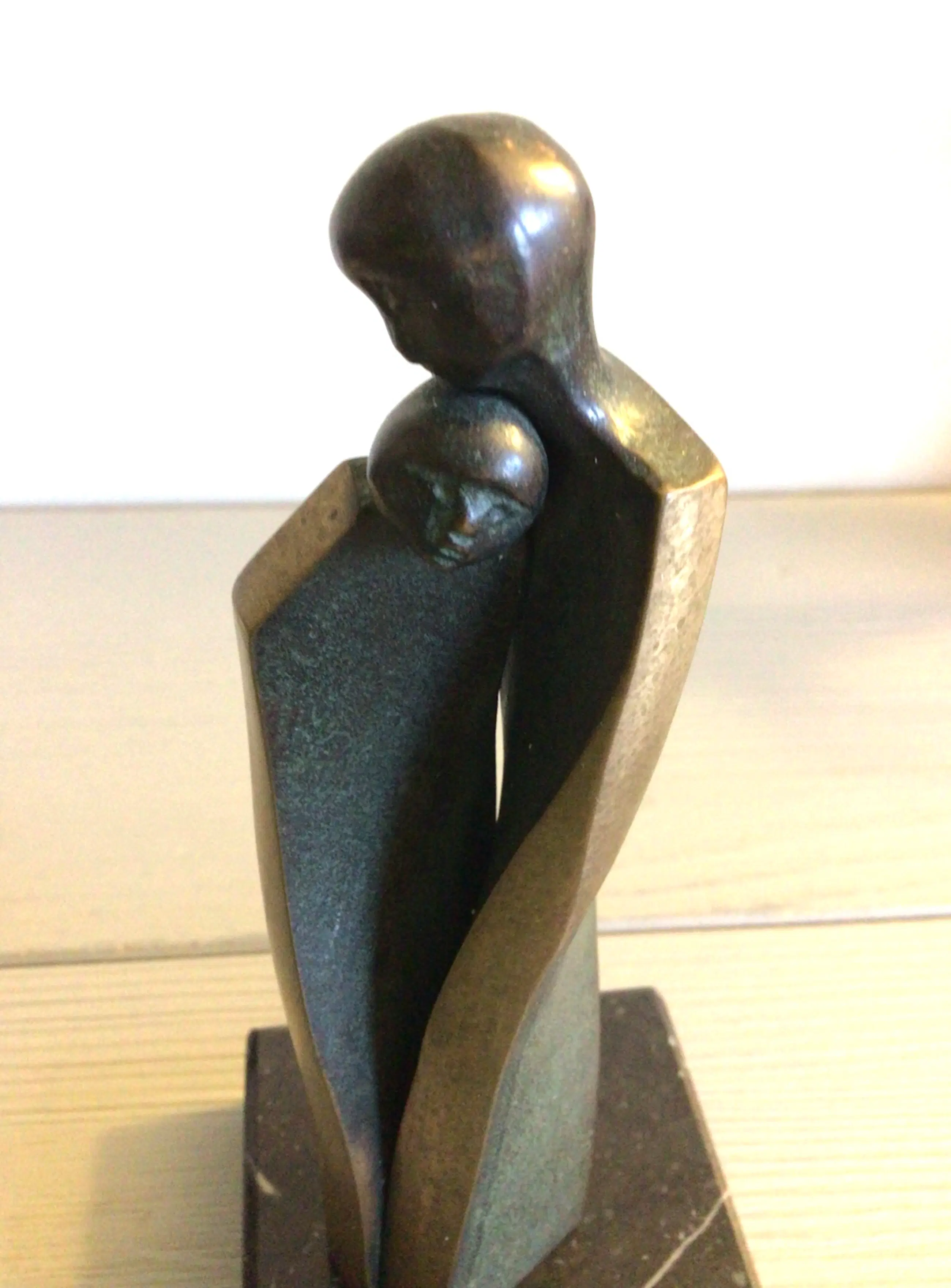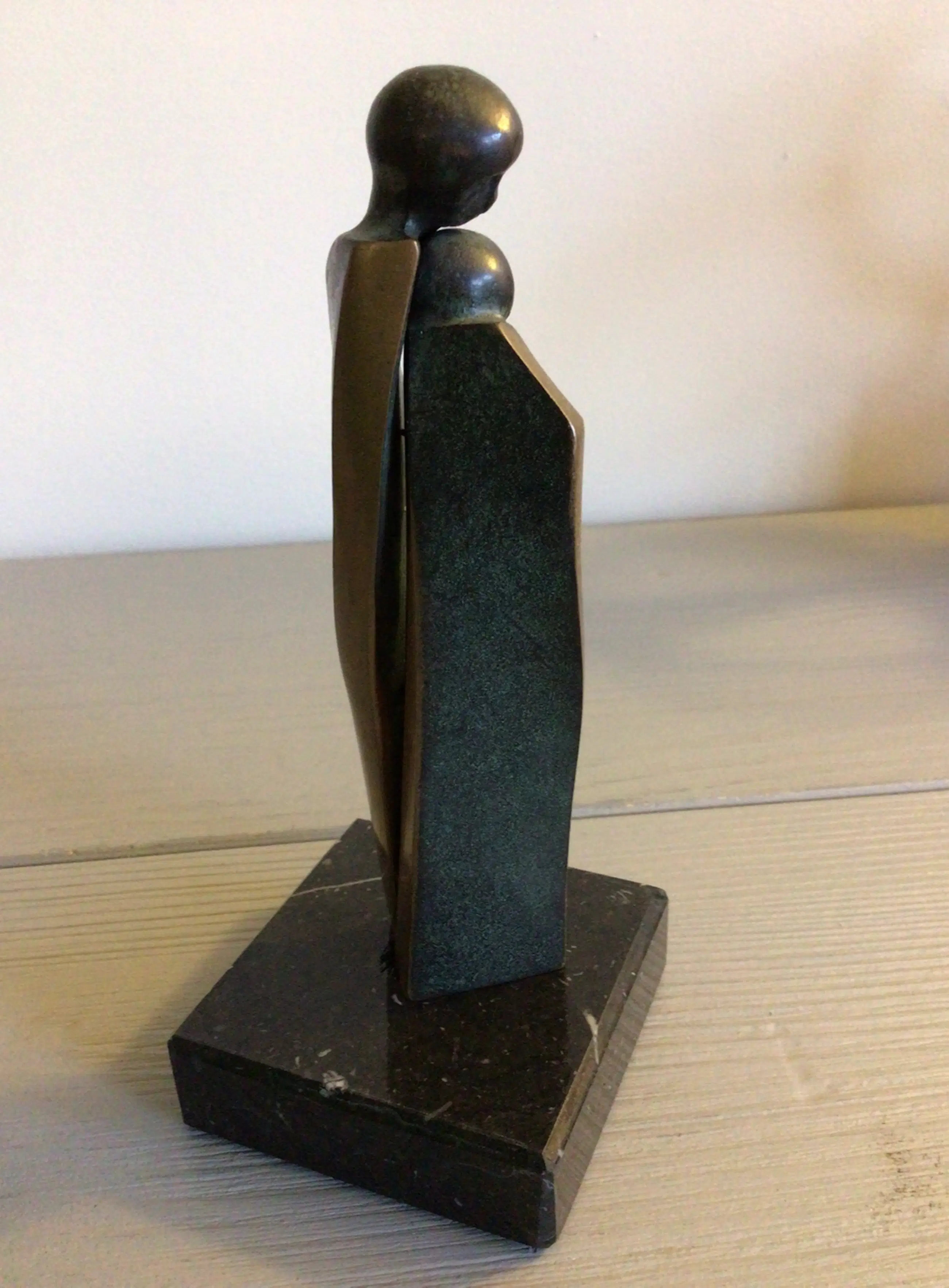 Zeer fraai vormgegeven vertederend sculptuur van twee geliefden . Titel “ Geborgenheid “ Dit schitterende sculptuur is afgewerkt met fraaie goudkleurige belijningen, zoals we die kennen van haar prachtige werk. Materiaal: brons op marmeren sokkel Kunstenares: Luise Kott - Gartner Het beeld staat los op de sokkel zodat u zelf kunt bepalen of u deze wilt gaan gebruiken Het beeld verkeert in zeer goede staat en wordt zorgvuldig verpakt verzonden