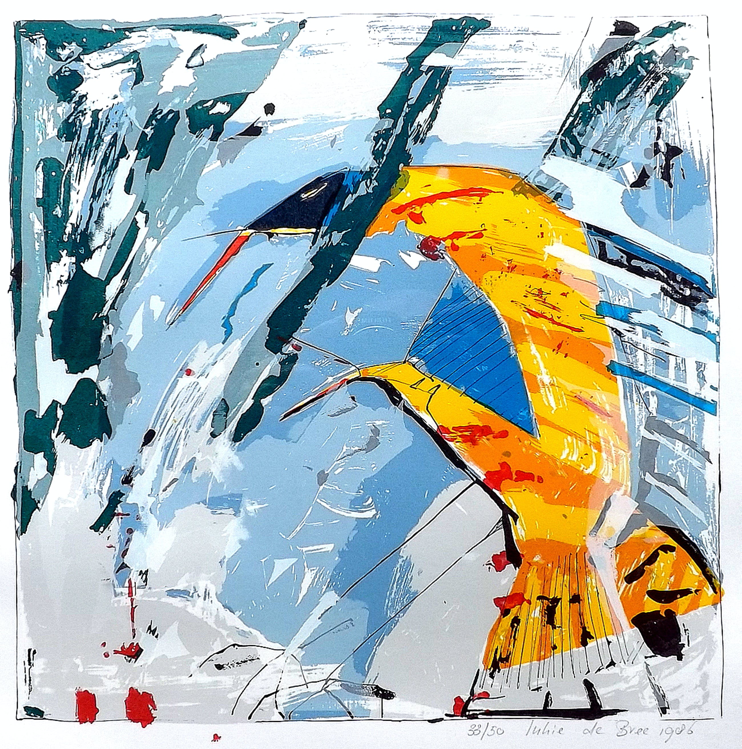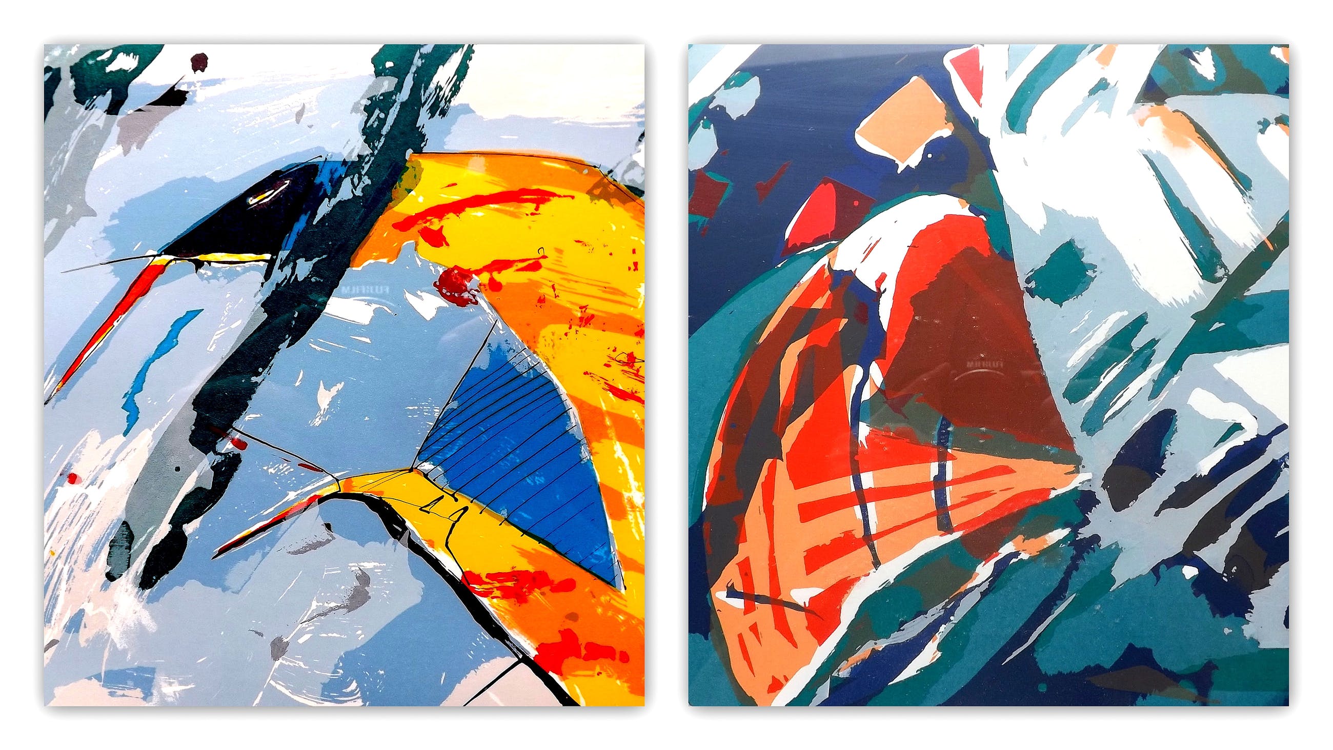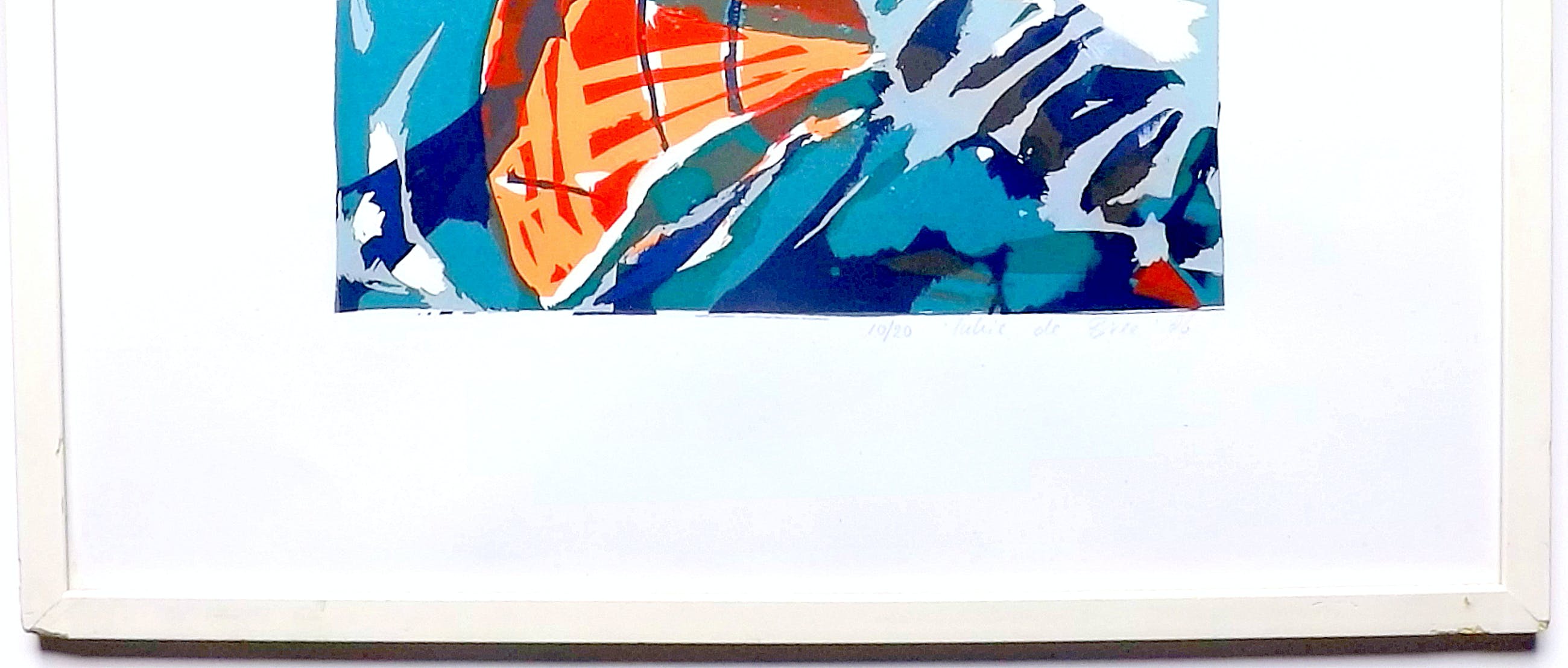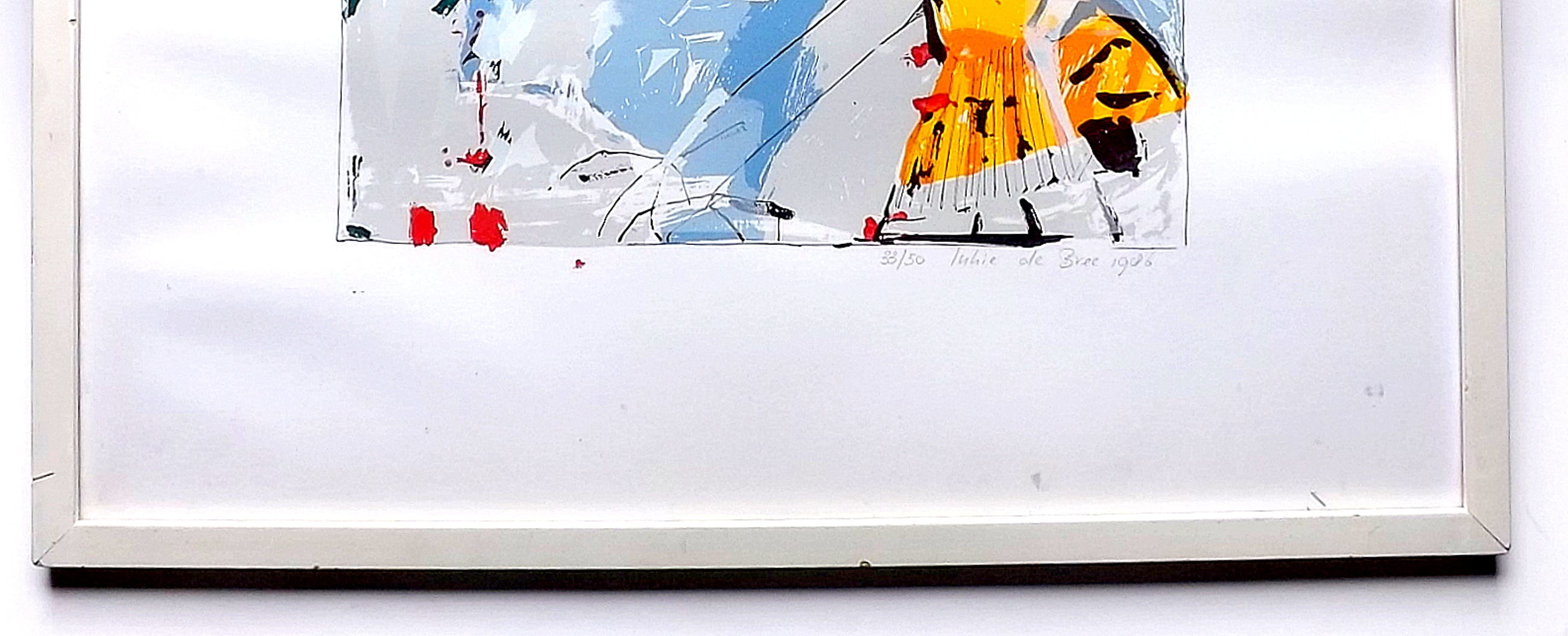 De beide zeefdrukken zijn ingelijst in een houten lijst achter glas.