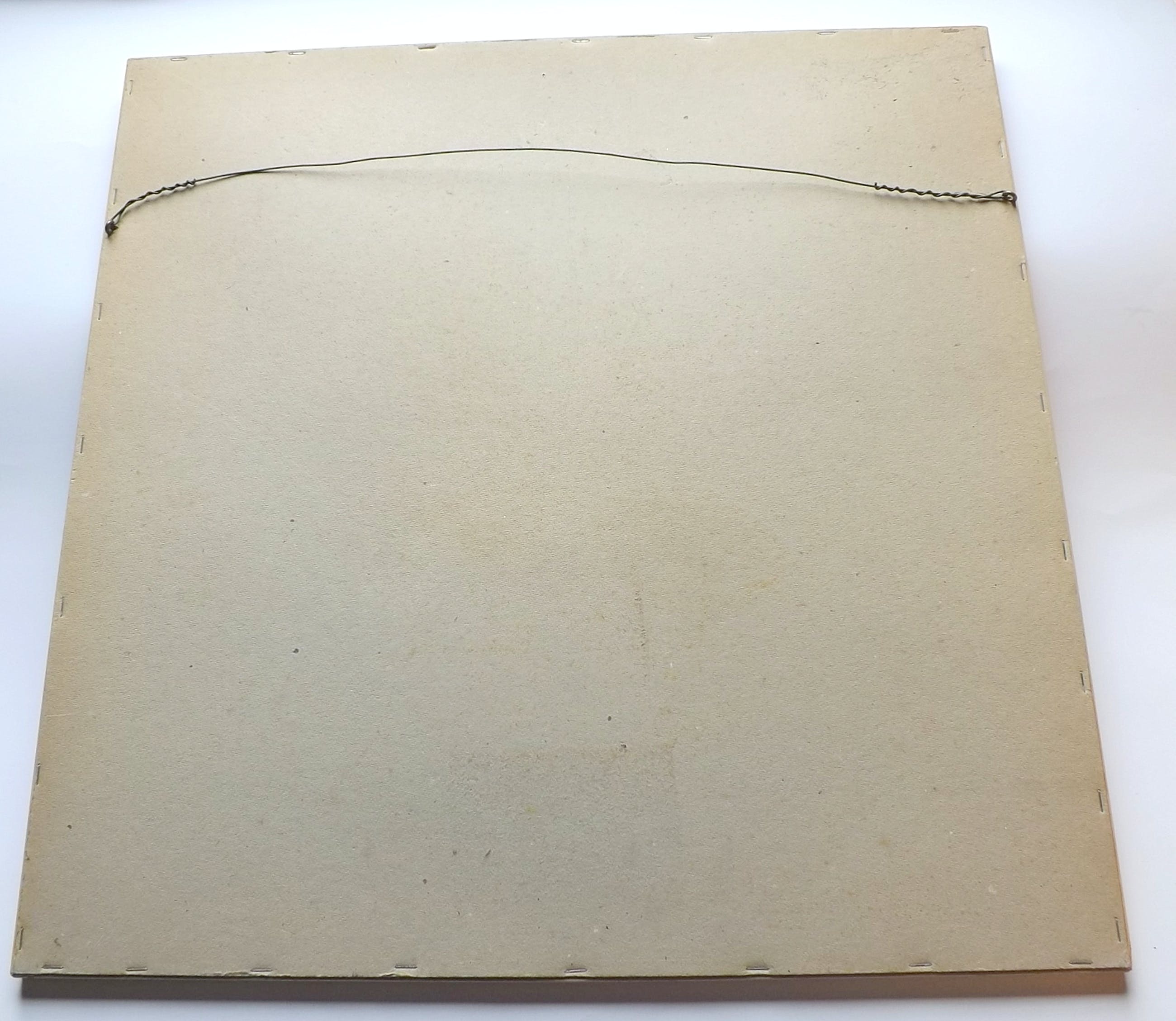 Conditie: na zo veel jaren zijn de kleuren nog zeer helder; witte houten lijsten vertonen gebruikssporen - glas is onbeschadigd.
