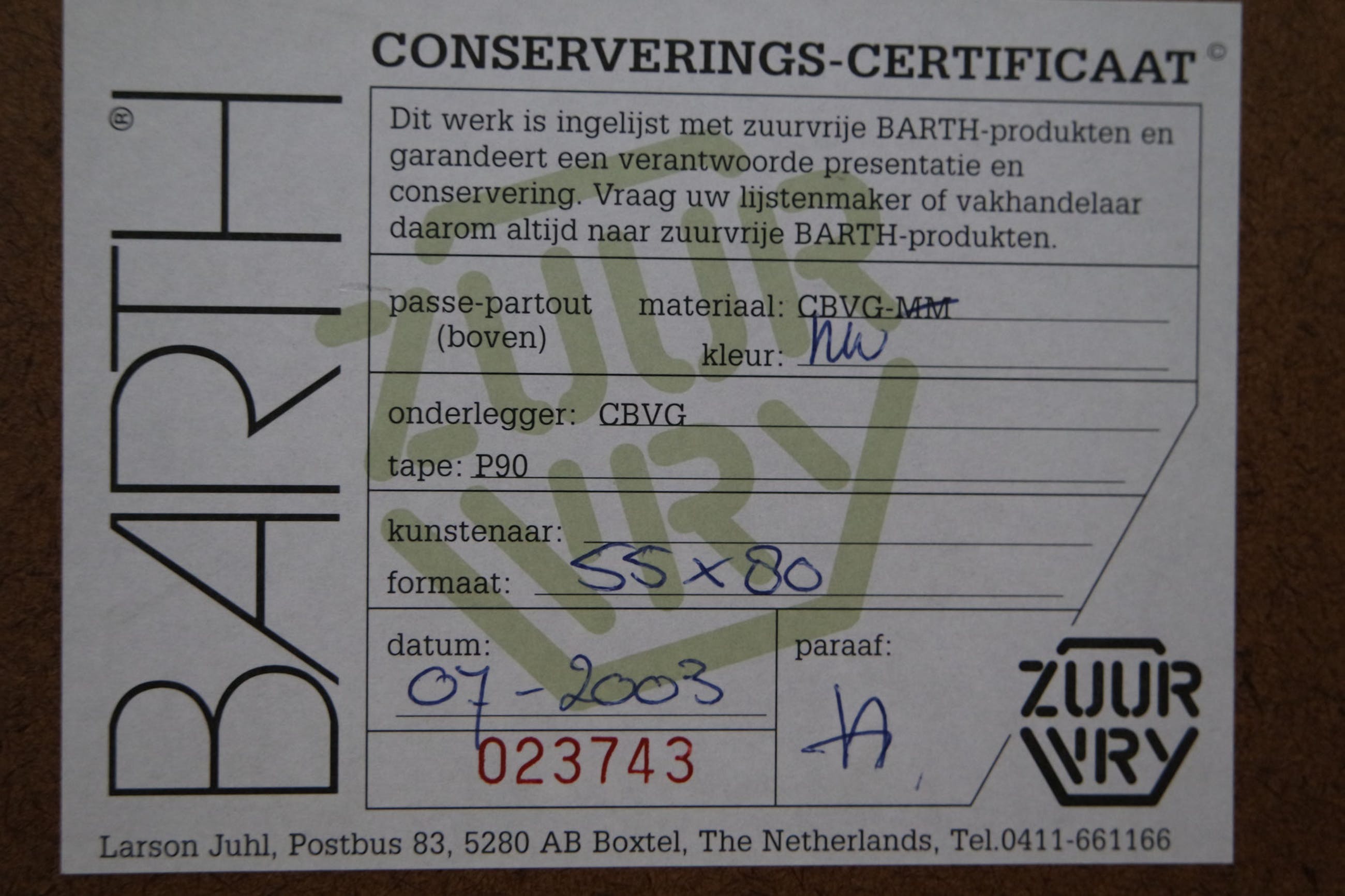 | Incl. lijst | 58 x 83 cm (h x b) |