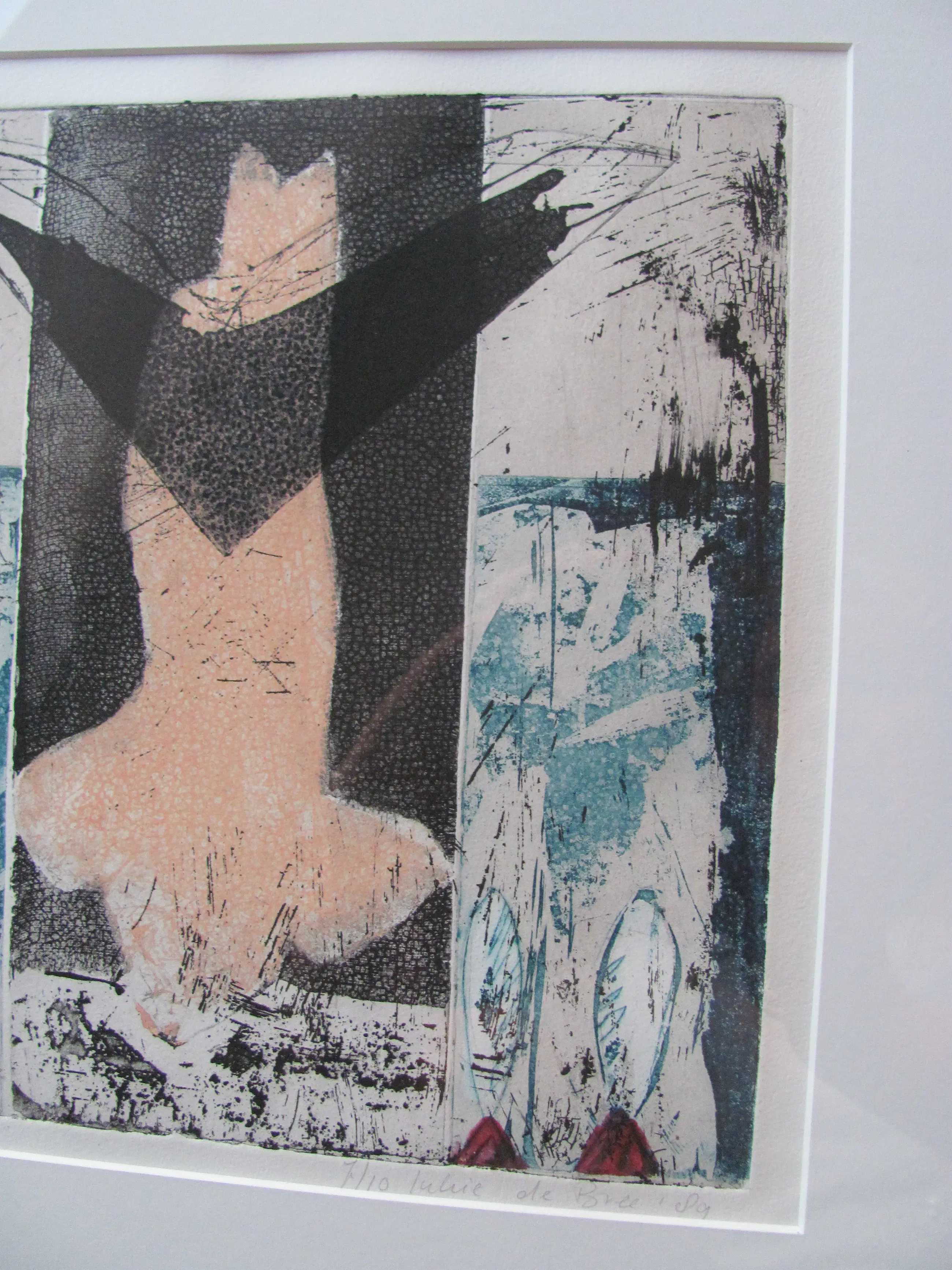 Zeefdruk van Lukie de Bree. Met potlood gedateerd 1989. Met potlood genummerd 7/10. Met potlood gesigneerd.