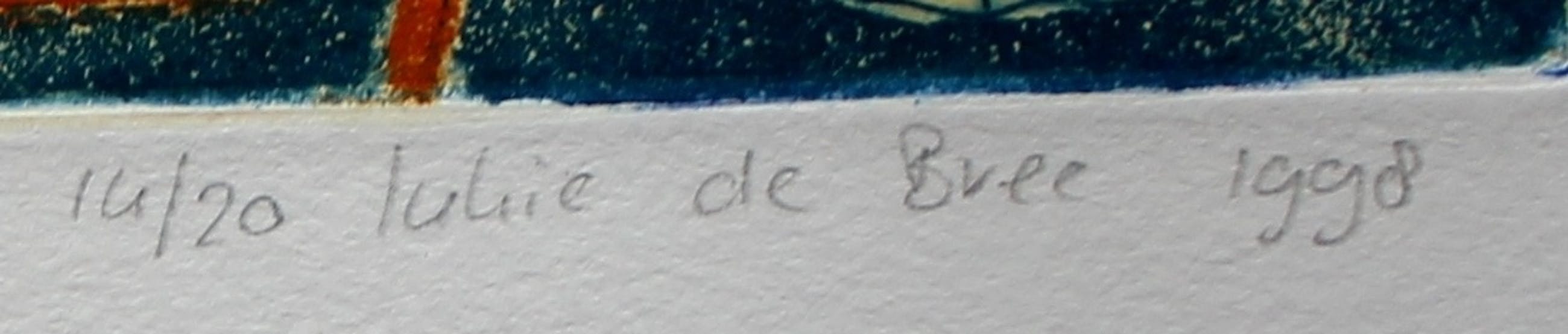 Zeefdruk van Lukie de Bree uit 1998. Nummer: 14/20. Afmetingen blad: H39 X b32. Afmetingen voorstelling: H25 X b20. Het werk is rechtsonder gesigneerd door de kunstenaar. De authenticiteitvan het aangeboden werk kan volledig worden gegarandeerd. Een certificaat van echtheid kan, op aanvraag worden gemaild. Herkomst: Collectie ABN AMRO.