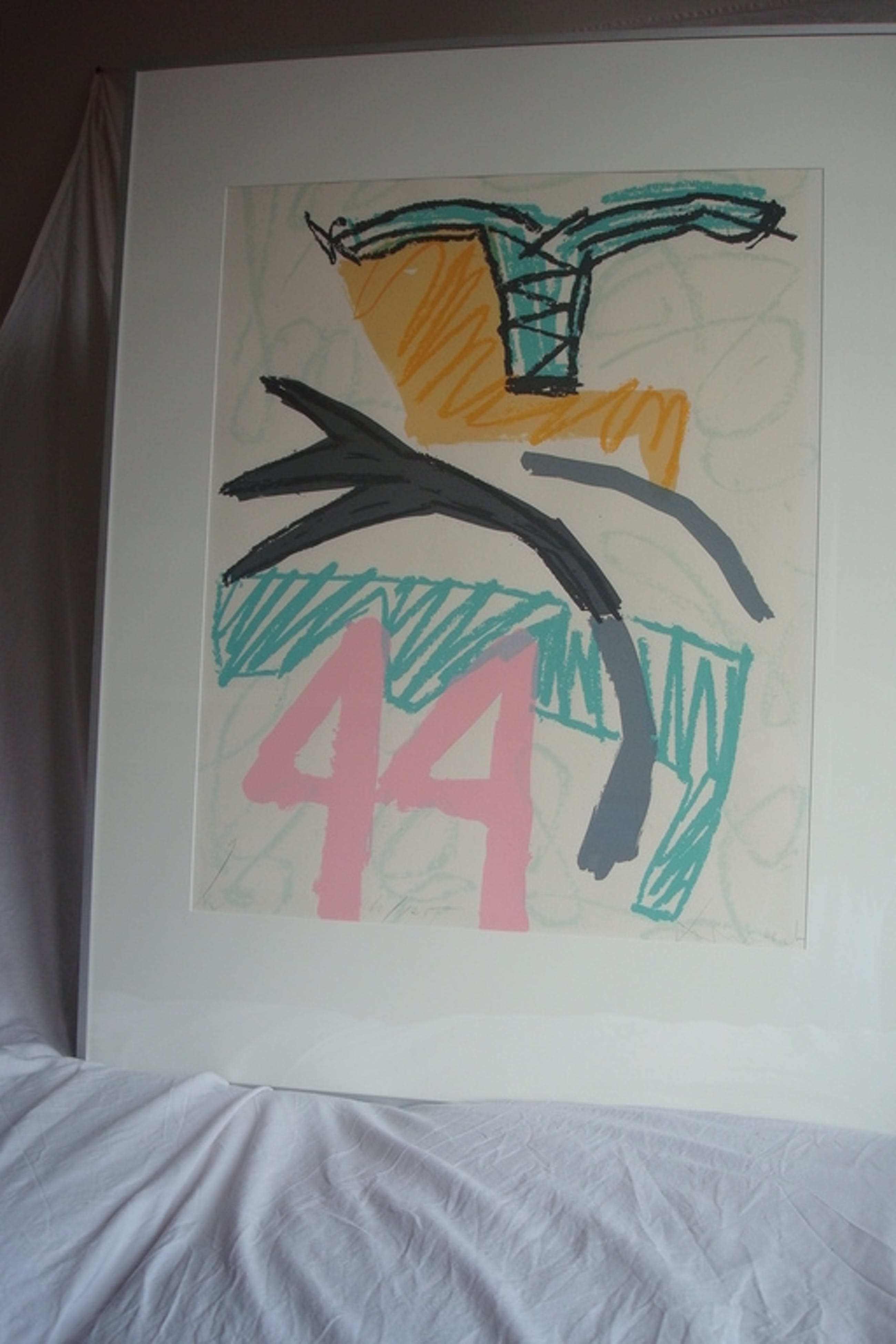 Zeefdruk is in nieuwe staat er zijn wat kleine krasjes aan rand van aluminium lijst