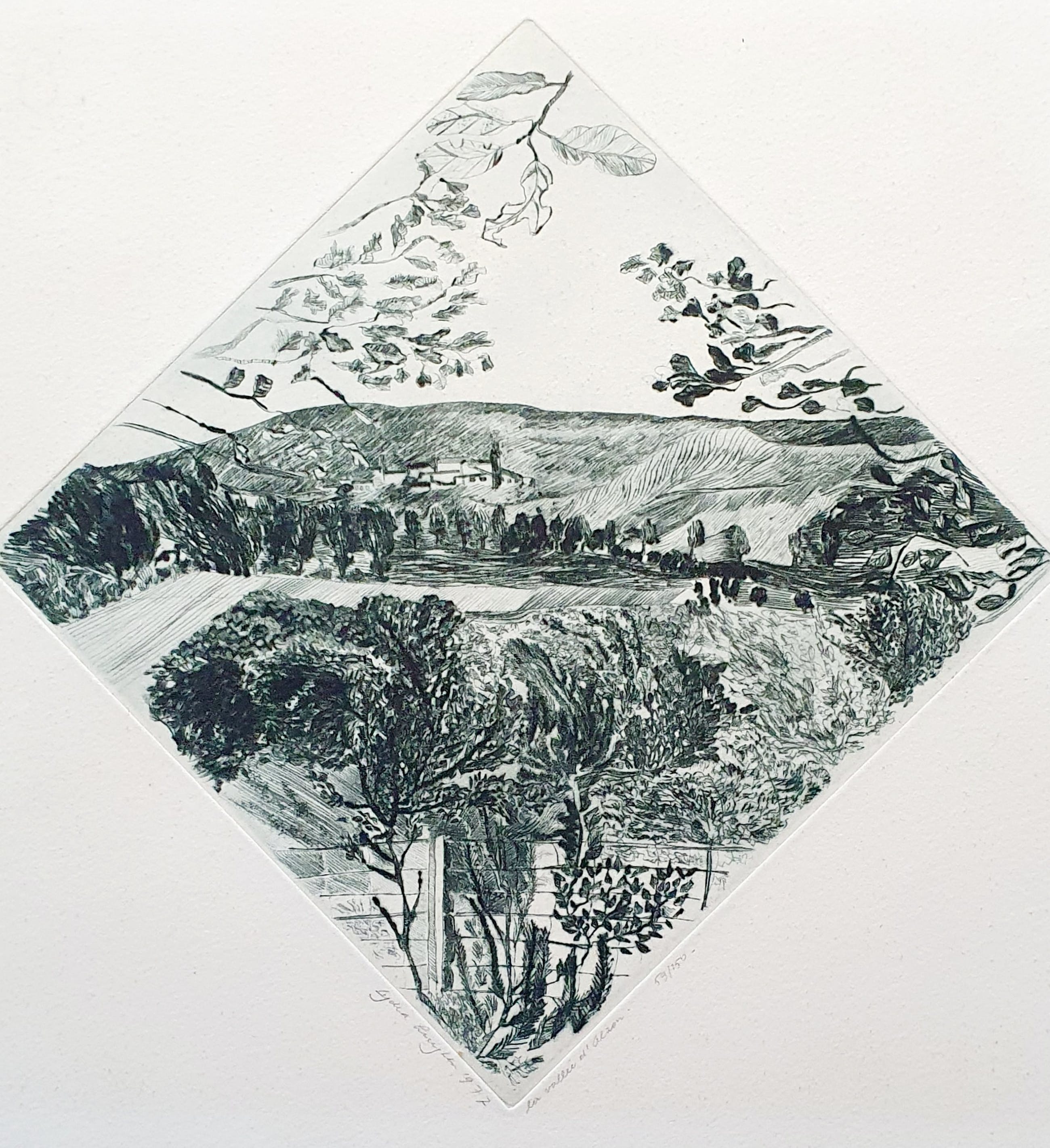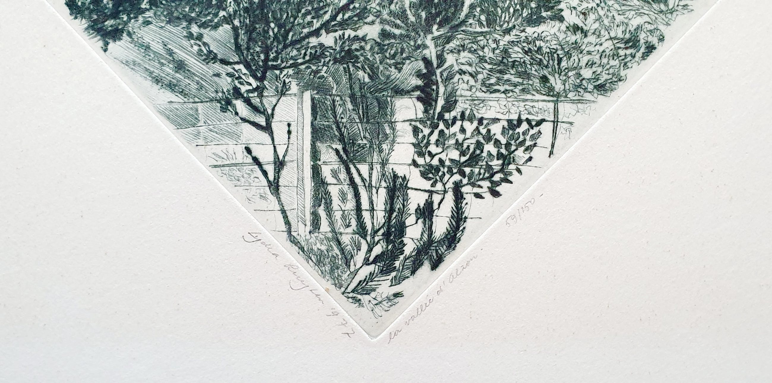 Ets, oplage 150, 59e druk Gesigneerd 1977 Titel La Vallee d' Alzon
