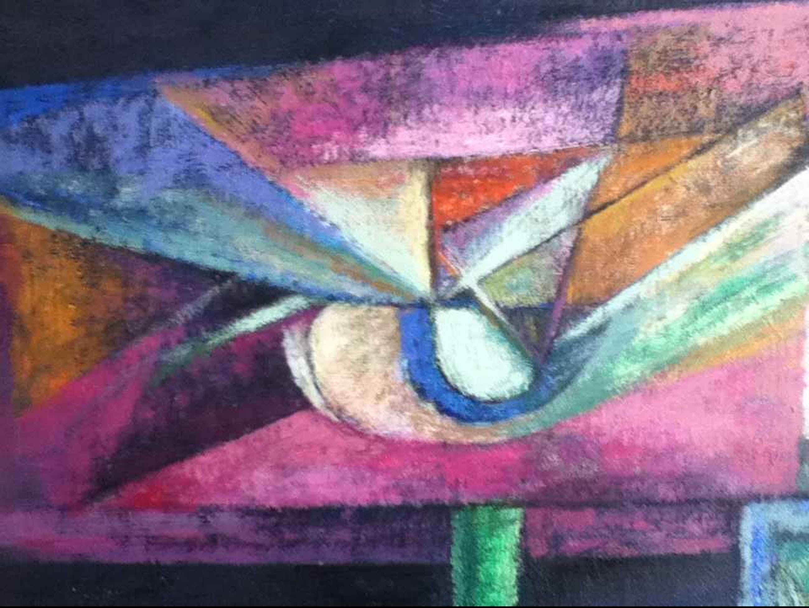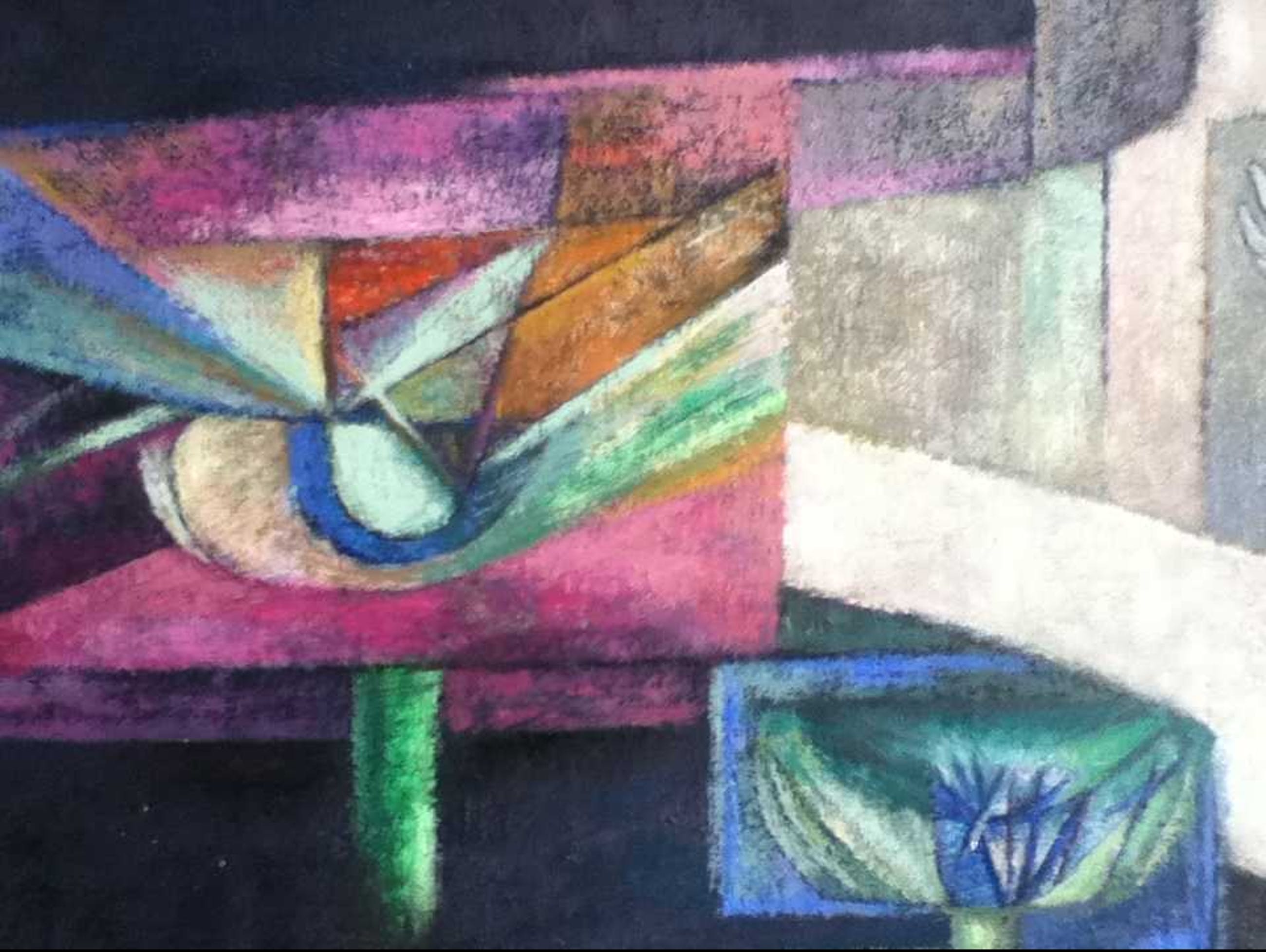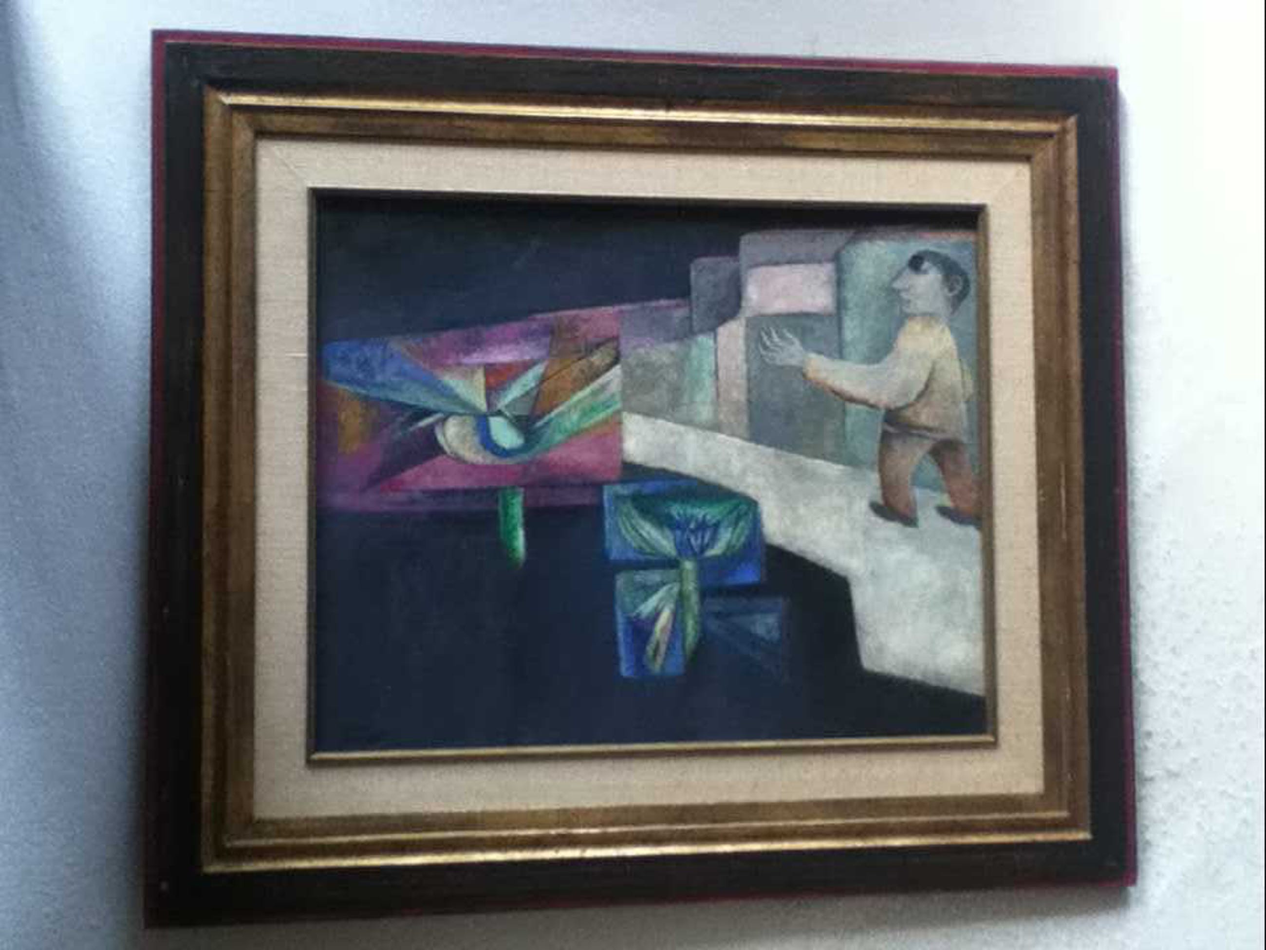 Zeer mooi en kleurrijk olieverfschilderij. Fantasierijk, krachtig geschilderd surrealistisch tafereel. Prachtig ingelijst in een mooie kader die gratis wordt bijgeleverd. Bekende artieste.