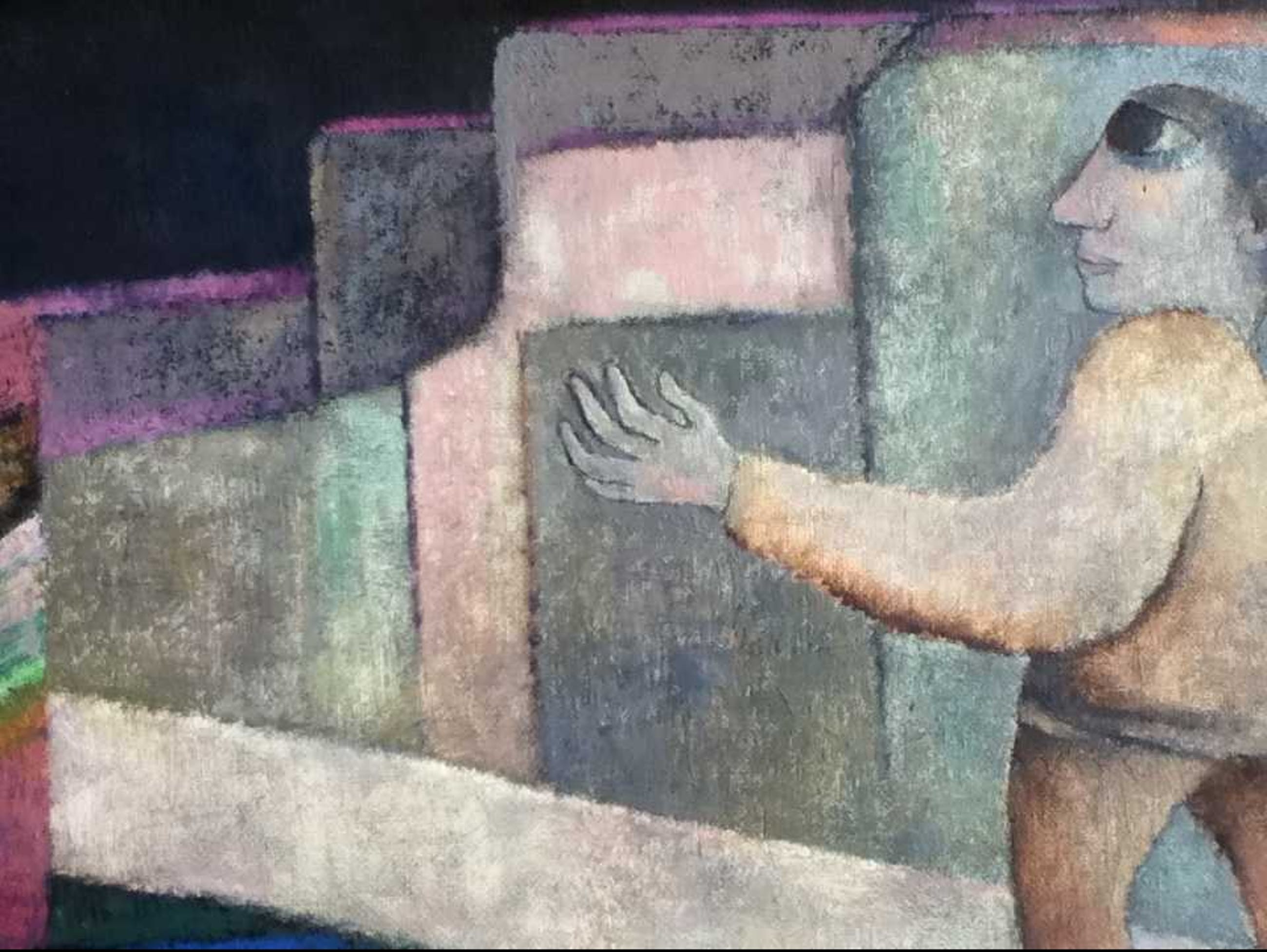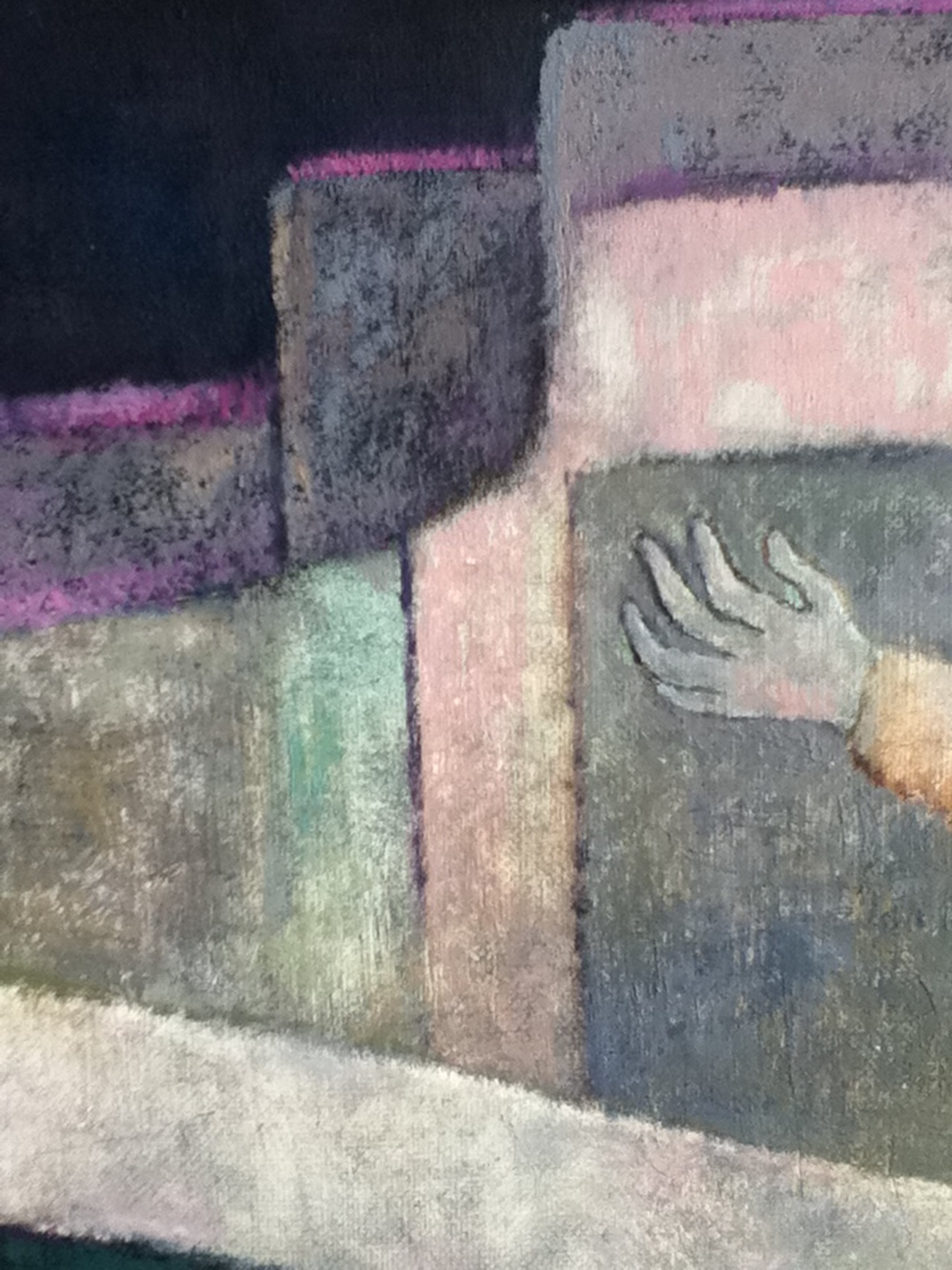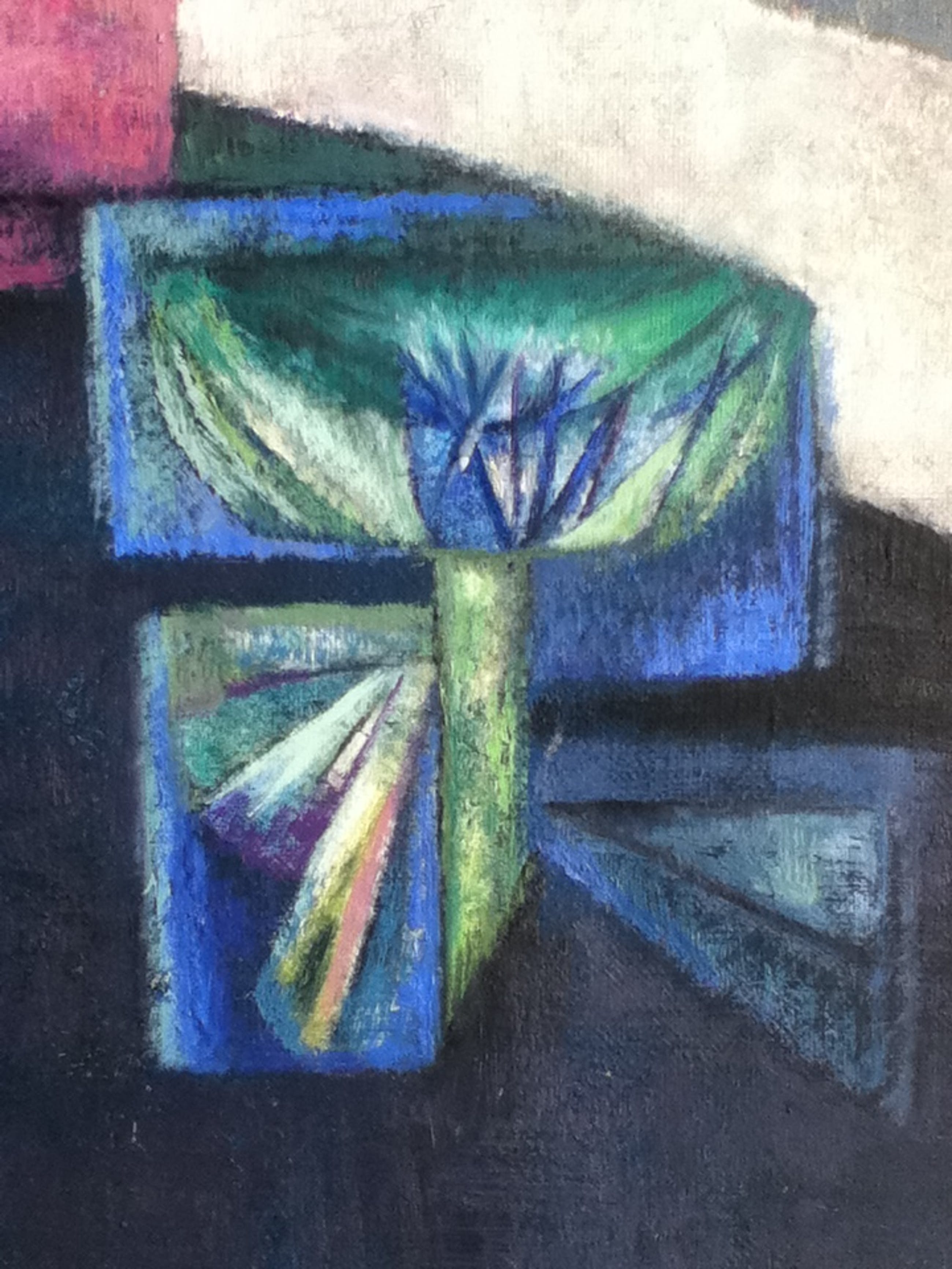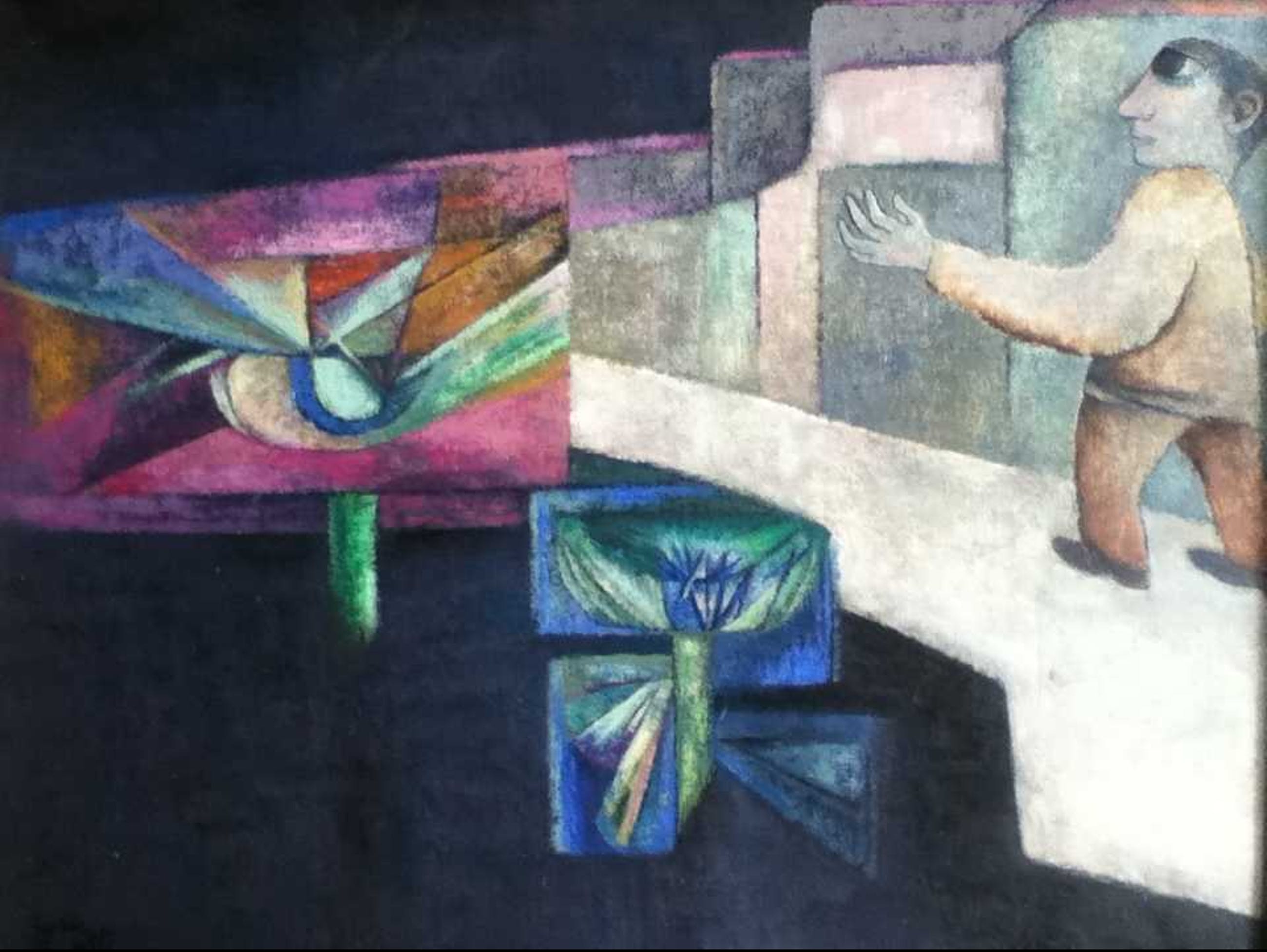 Zeer mooi en kleurrijk olieverfschilderij. Fantasierijk, krachtig geschilderd surrealistisch tafereel. Prachtig ingelijst in een mooie kader die gratis wordt bijgeleverd. Bekende artieste.