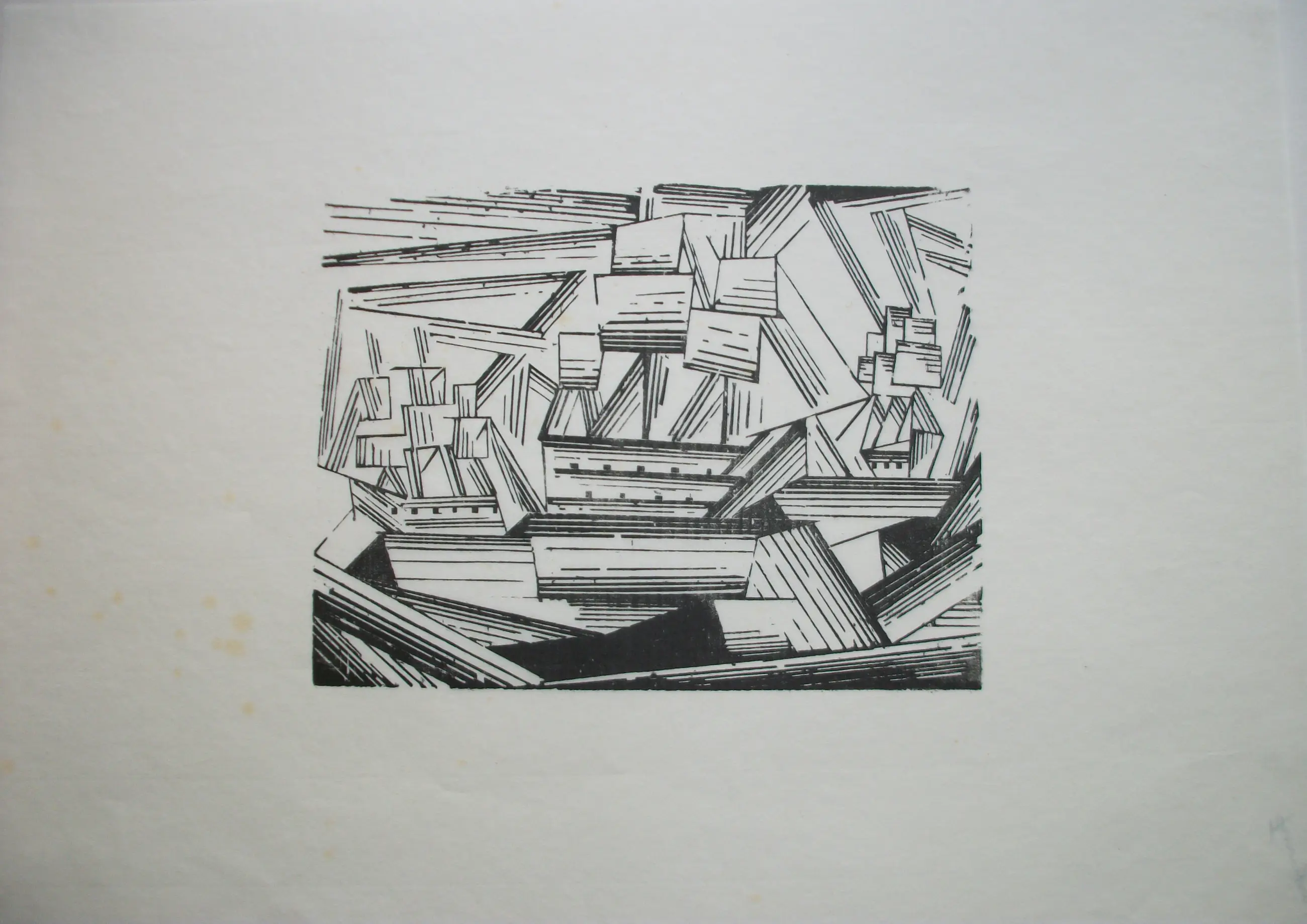 Houtsnede op fijn Japan. 1919. 172 x 225 (352 x 464) mm.
