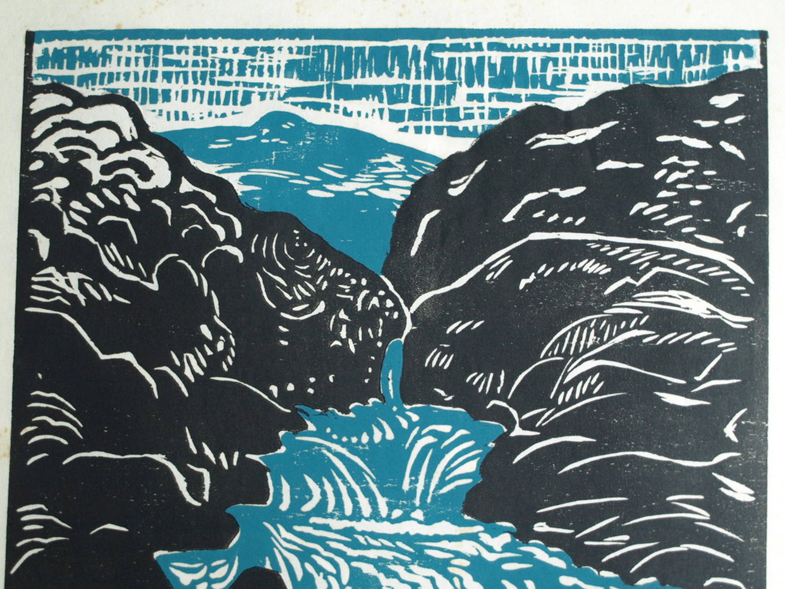 Een druk van een linoleumsnede van de Nederlandse kunstenares Maaike Braat (1907-1992)