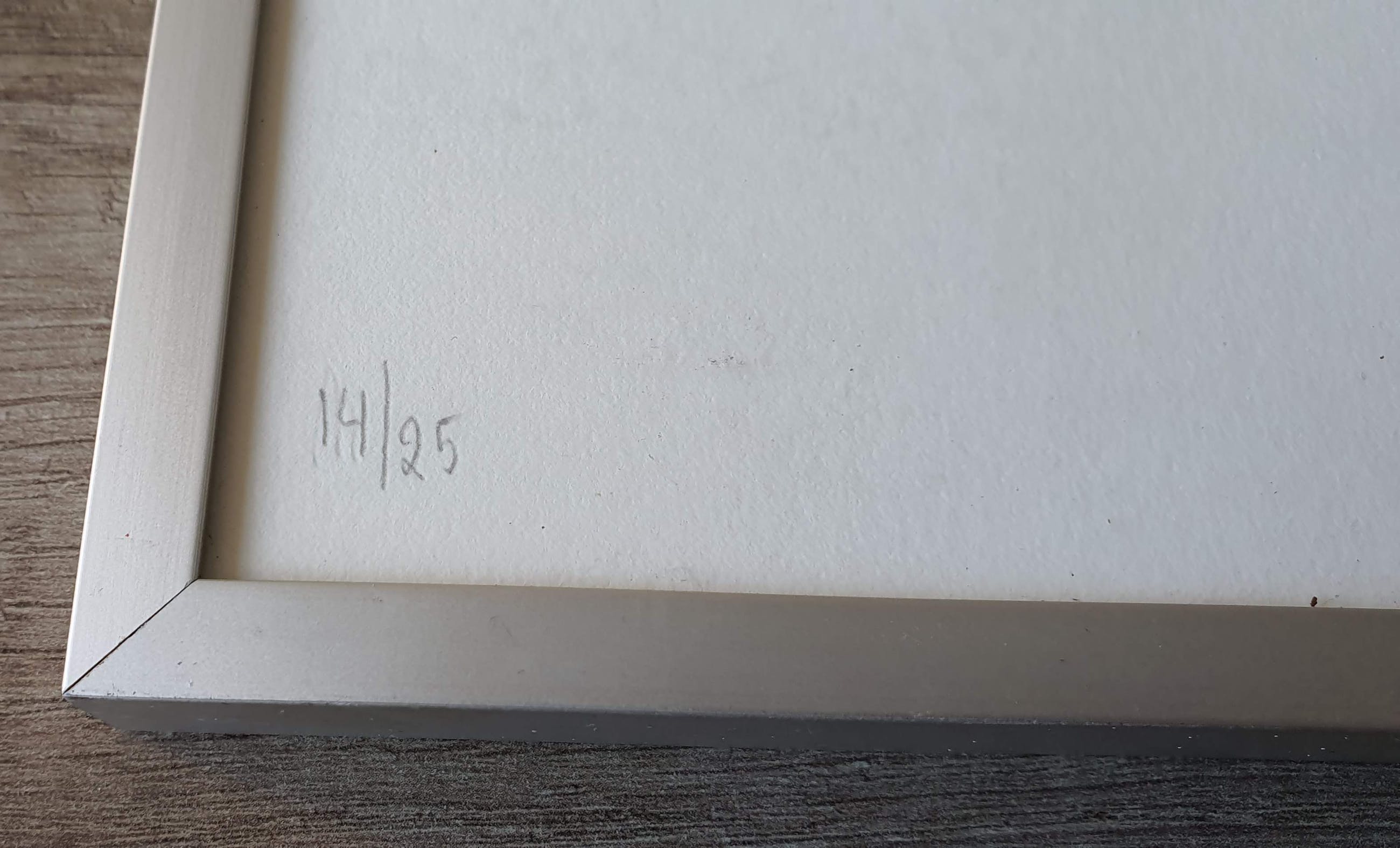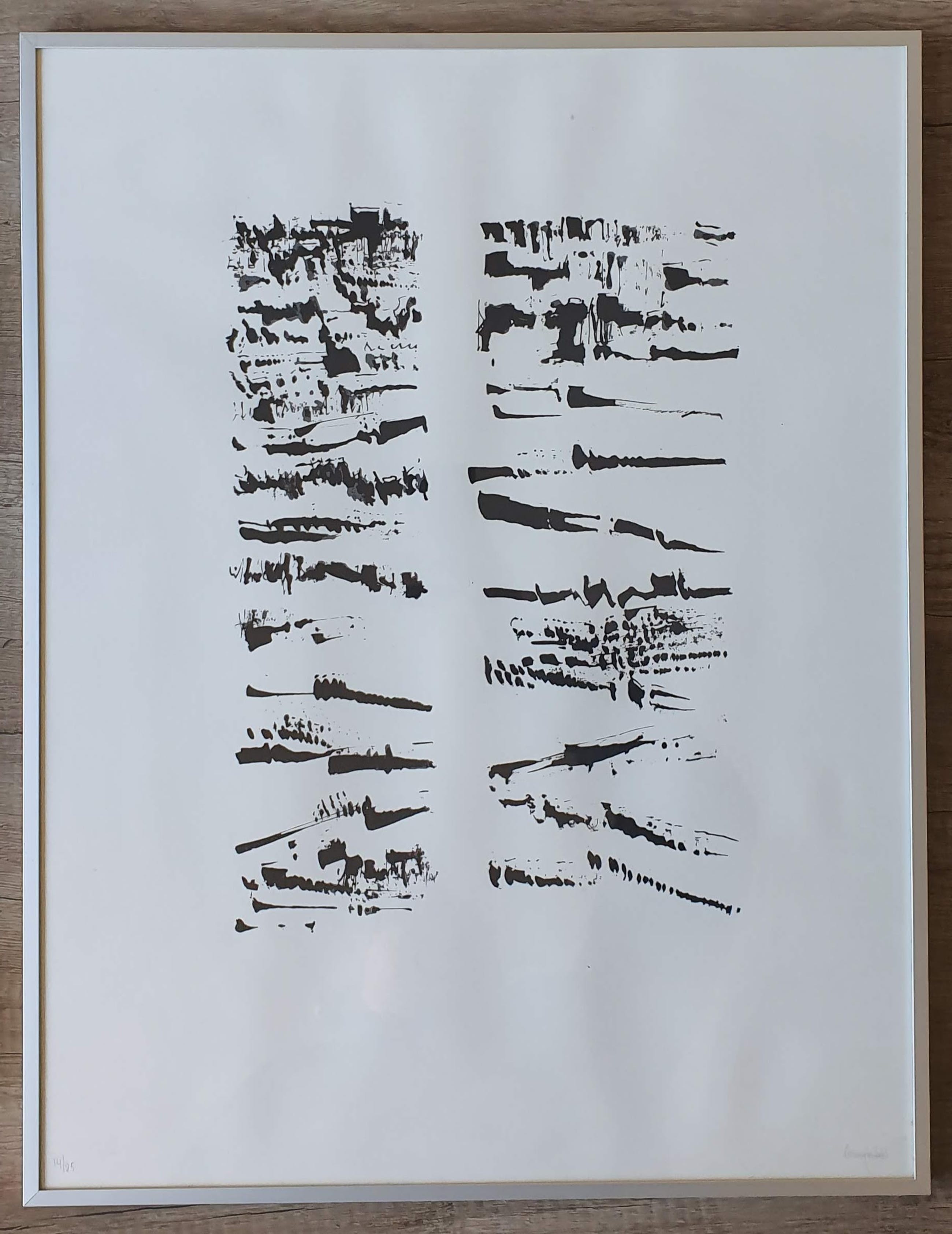 Titel: Zonder titel Jaartal: Onbekend Afmetingen blad: 65 cm x 50 cm Oplage: 14/25 Gesigneerd: Ja, handgeschreven met potlood (rechtsonder) Materiaal: Zeefdruk op papier Ingelijst: Ja Conditie: In zeer goede staat.