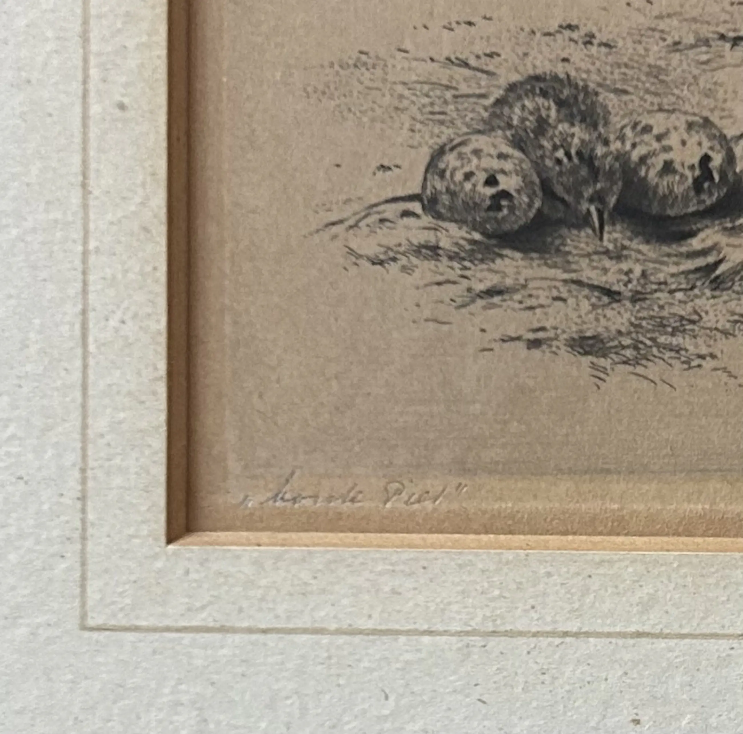 Prachtige ets van een scholekster ("bonte piet") van Maarten Langbroek. Getiteld en gesigneerd. Randen van de passe-partout zijn licht verkleurd. Zie foto's.