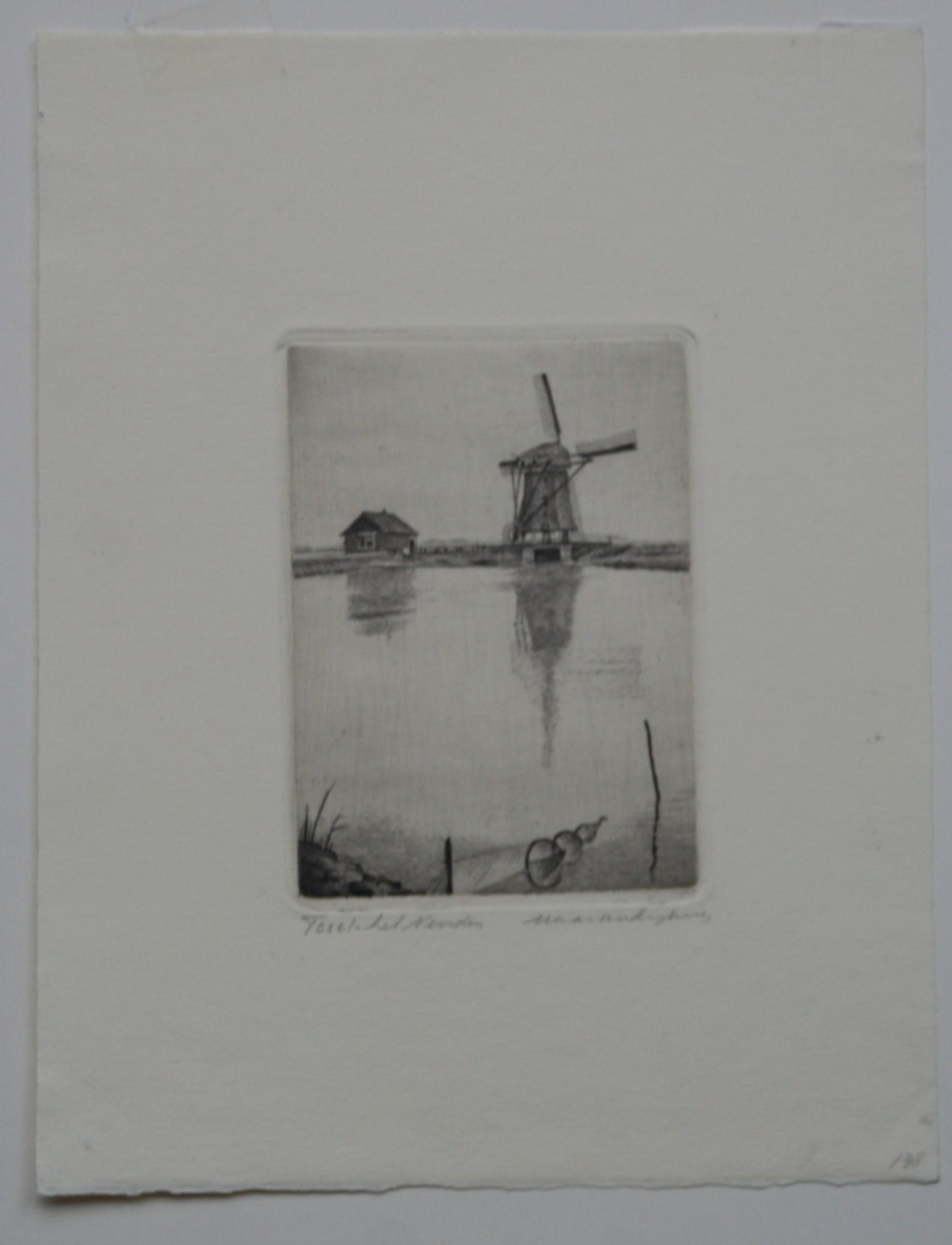 Op dubbel geslagen blad met passepartout, bevestigd met 2 stukjes tape, kan eenvoudig losgehaald worden.