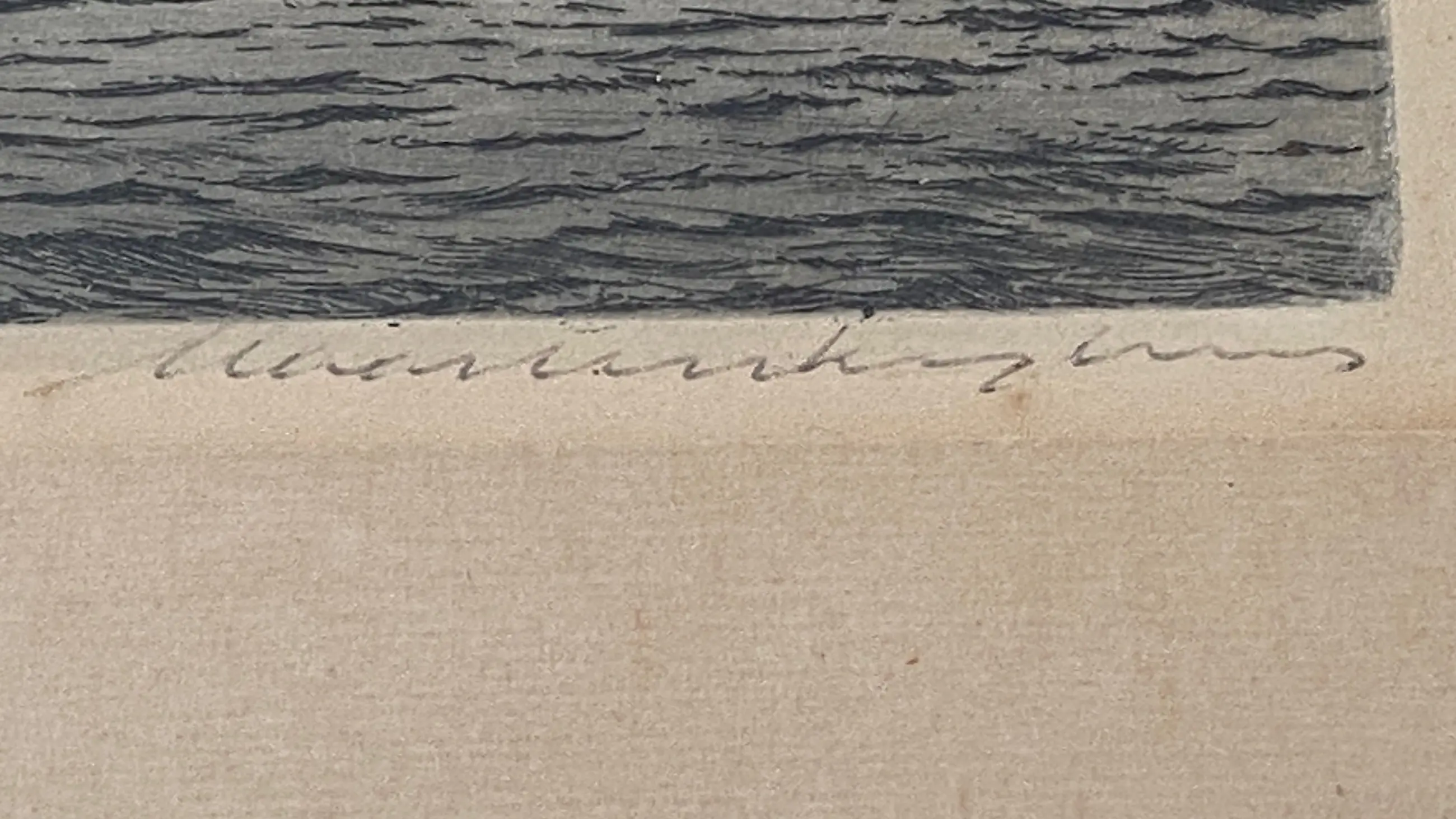 Het werk is uitgevoerd in een krachtige zwart-wit techniek met veel aandacht voor lijnvoering en diepte, typerend voor Langbroeks grafische oeuvre uit het midden van de 20e eeuw. De lichte vergeling van het papier is consistent met de leeftijd en doet geen afbreuk aan de presentatie.