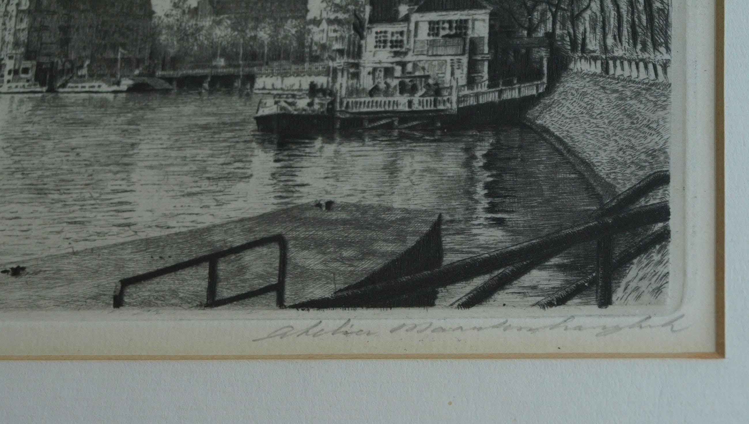 -Conditie: De ets is in zeer goede staat. Het passe-partout is licht ‘vergeeld’, met name aan de randen. De lijst heeft slijtplekjes en is wat ‘verweerd’.