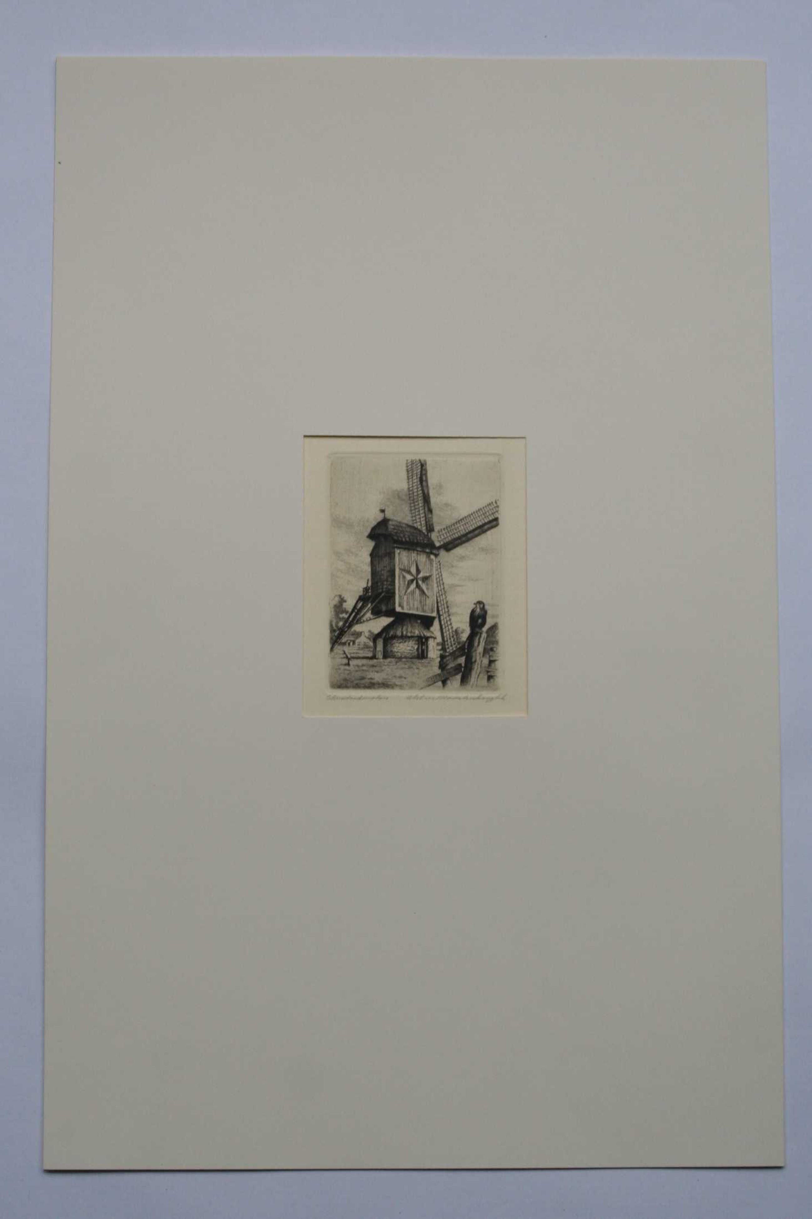 Ets op papier van 21 x 16 cm. Eenvoudig vastgezet in passe partout, Maat afbeelding en passe partout staat hierboven. Gesigneerd met atelier Langbroek (mogelijk uitgegeven door weduwe Langbroek). Wordt plat verzonden tussen platen.
