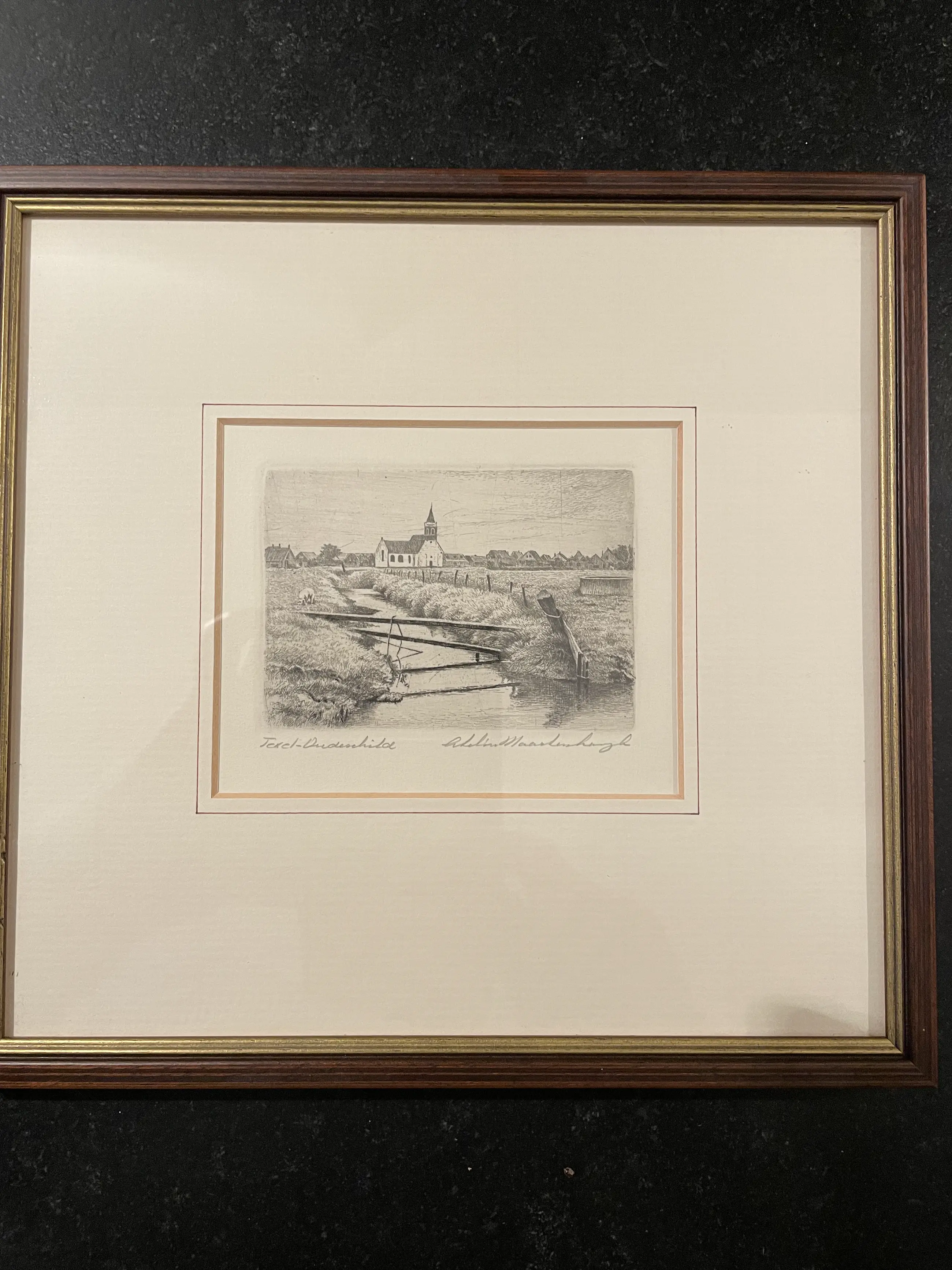 De lang gezochte ets van Maarten Langbroek Handgesigneerd door de weduwe van Maarten Langbroek (Postume druk)
