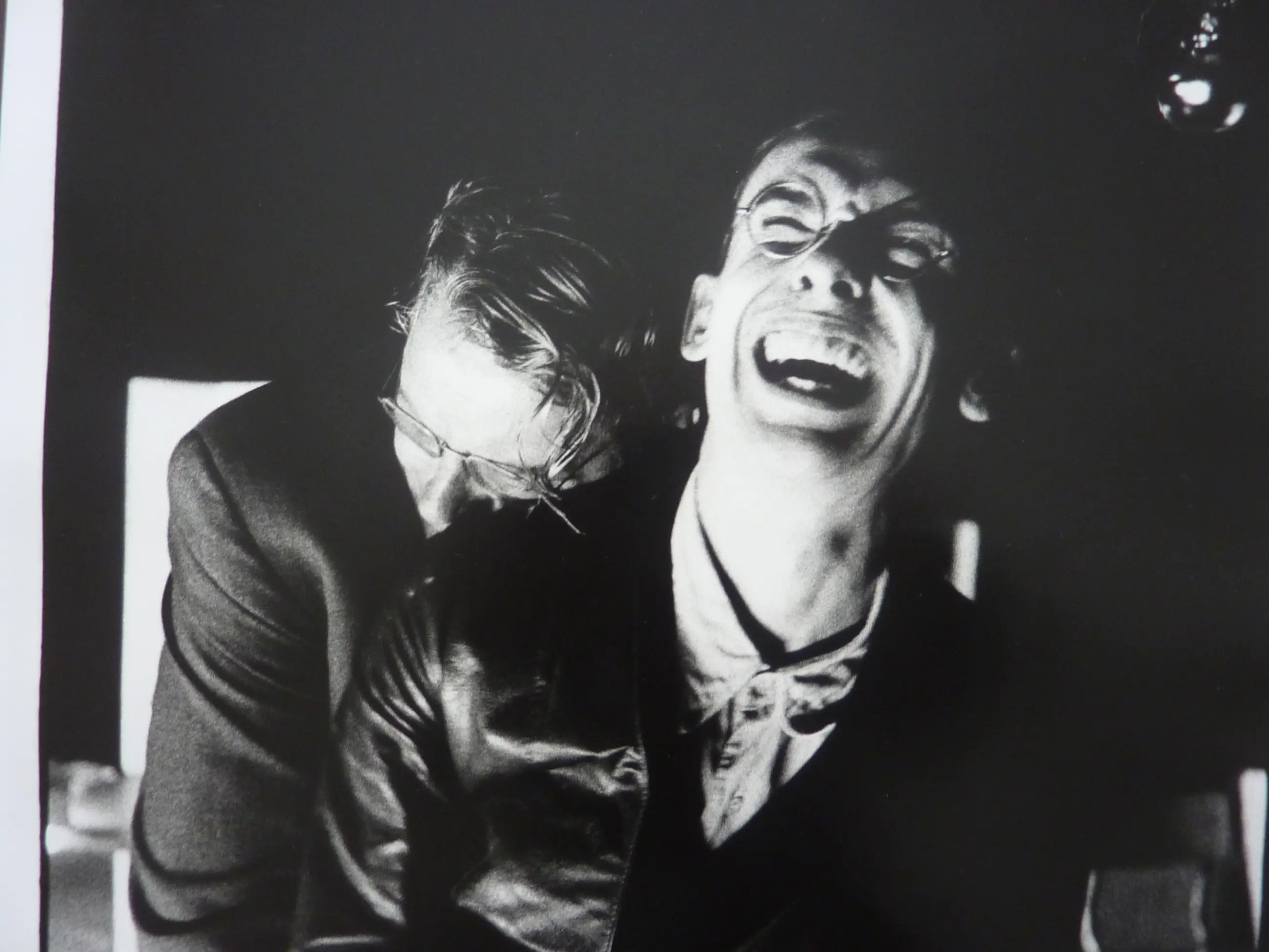 Maarten Laupman fotografeerde veel portretten voor het cultureel maandblad Magazijn te Rotterdam. Zwart-wit foto. De acteurs/regisseurs en theatermakers Erik-Ward Geerlings en Dejongpaul zijn hierop geportretteerd in de voorstelling Wenen, het gat van Freud , experimenteel toneel.