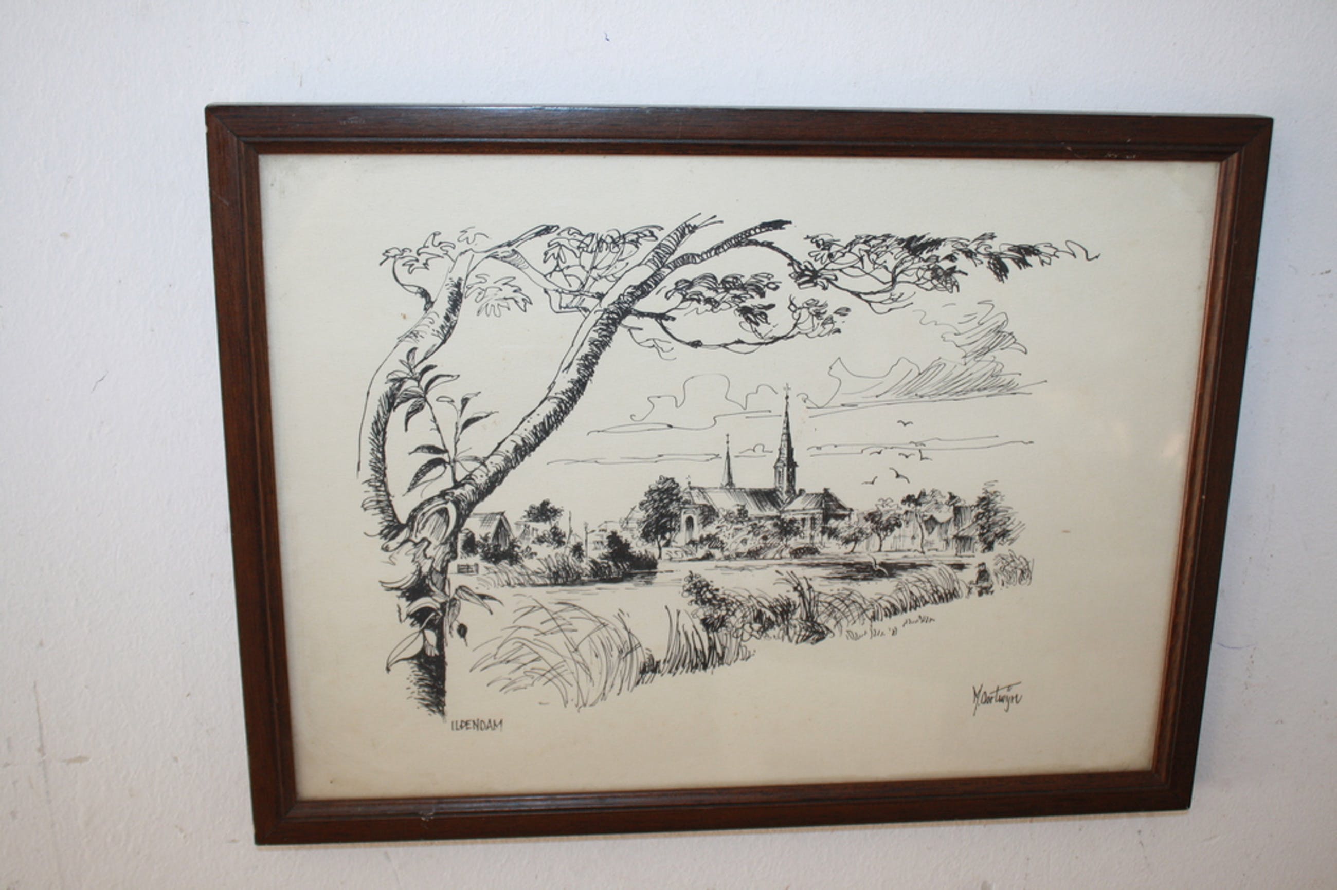 gekaderd in fraai houten lijstje met glas in de maat 26 x 35 cn