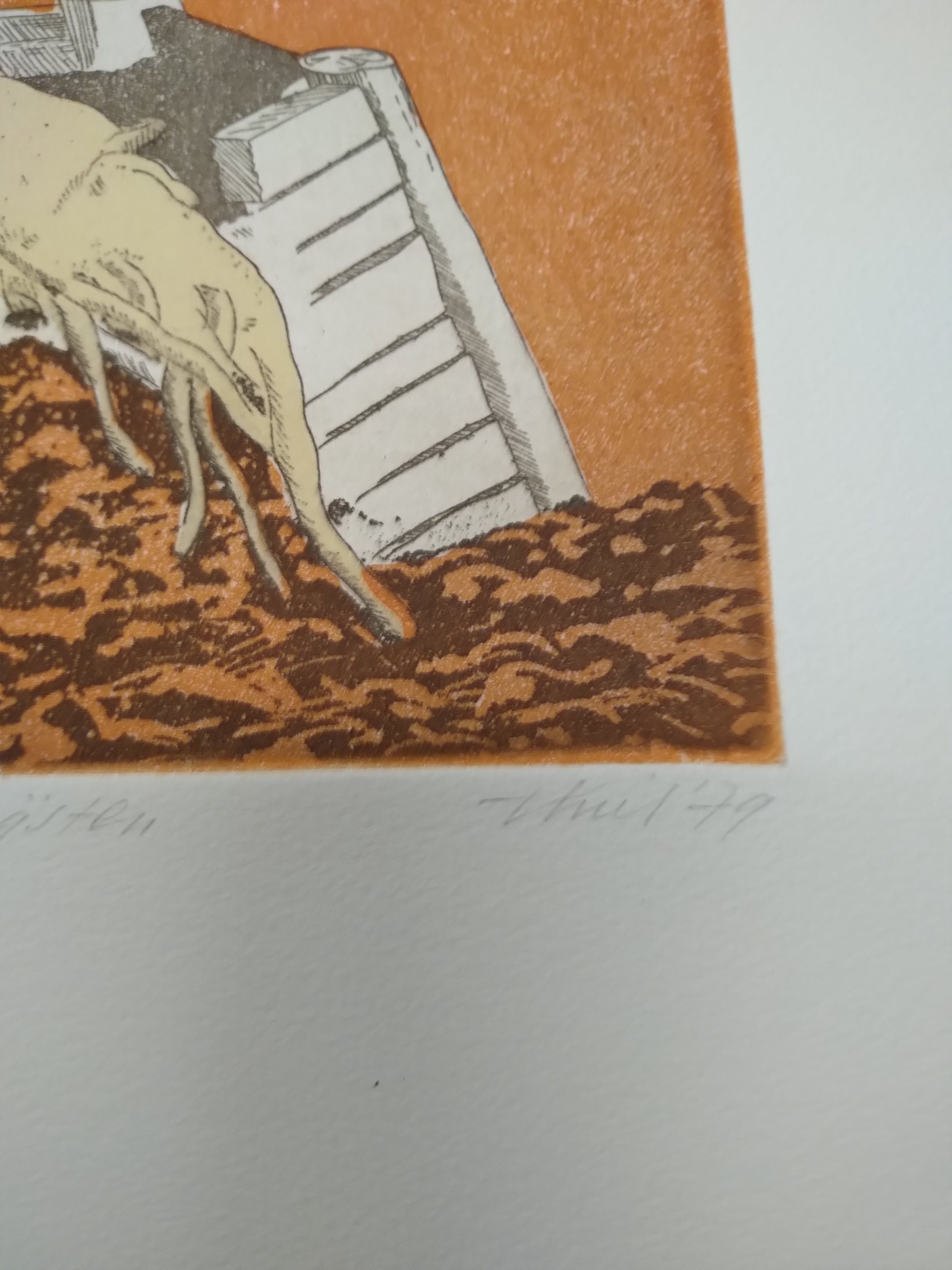 Kunstenaar Maarten Thiel 1979 Nr 27/40 Afm papier 39x50cm hoog Titel palmenkästen