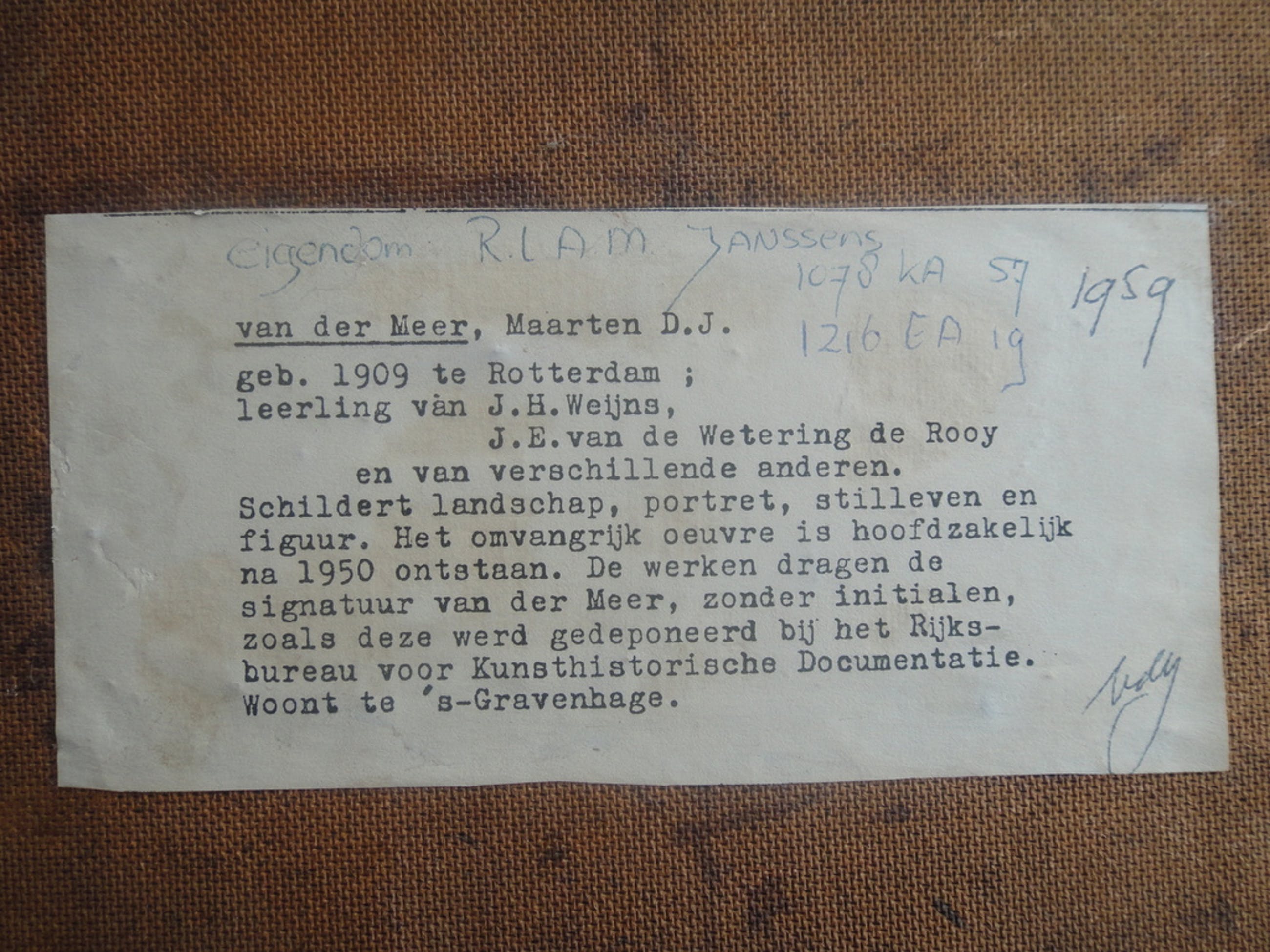 Mooi schilderij uit de 50-er jaren van de Rotterdamse kunstenaar Maarten Dirk Johannes van der Meer, geboren 1909.