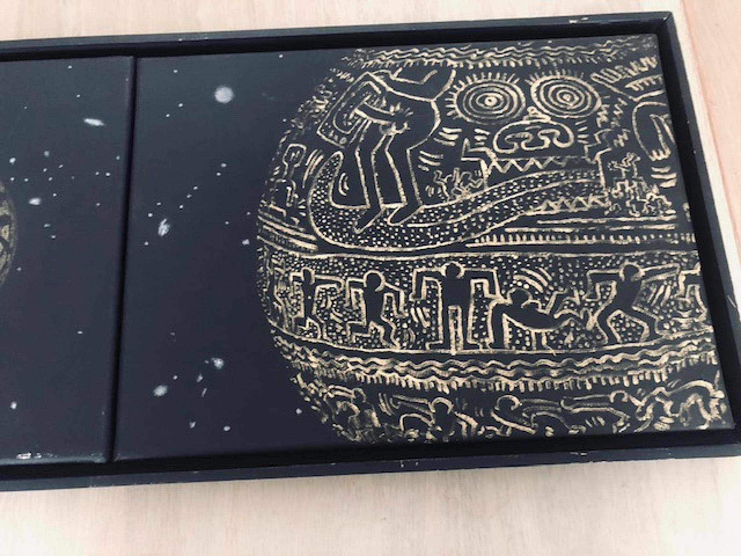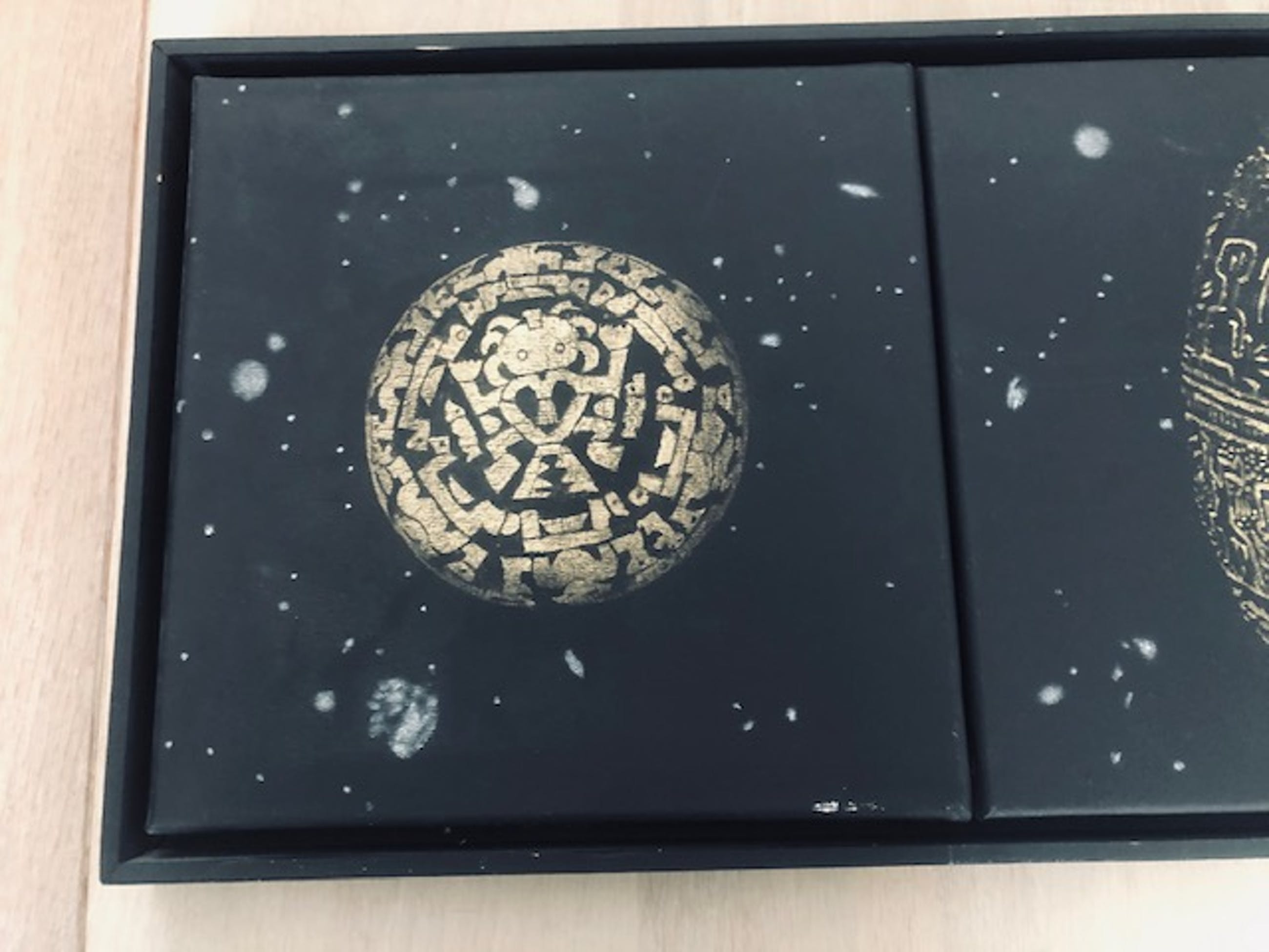 Uniek en origineel kunstwerk van de kunstenaar Maarten van Dreven. Goud op zwart doek.