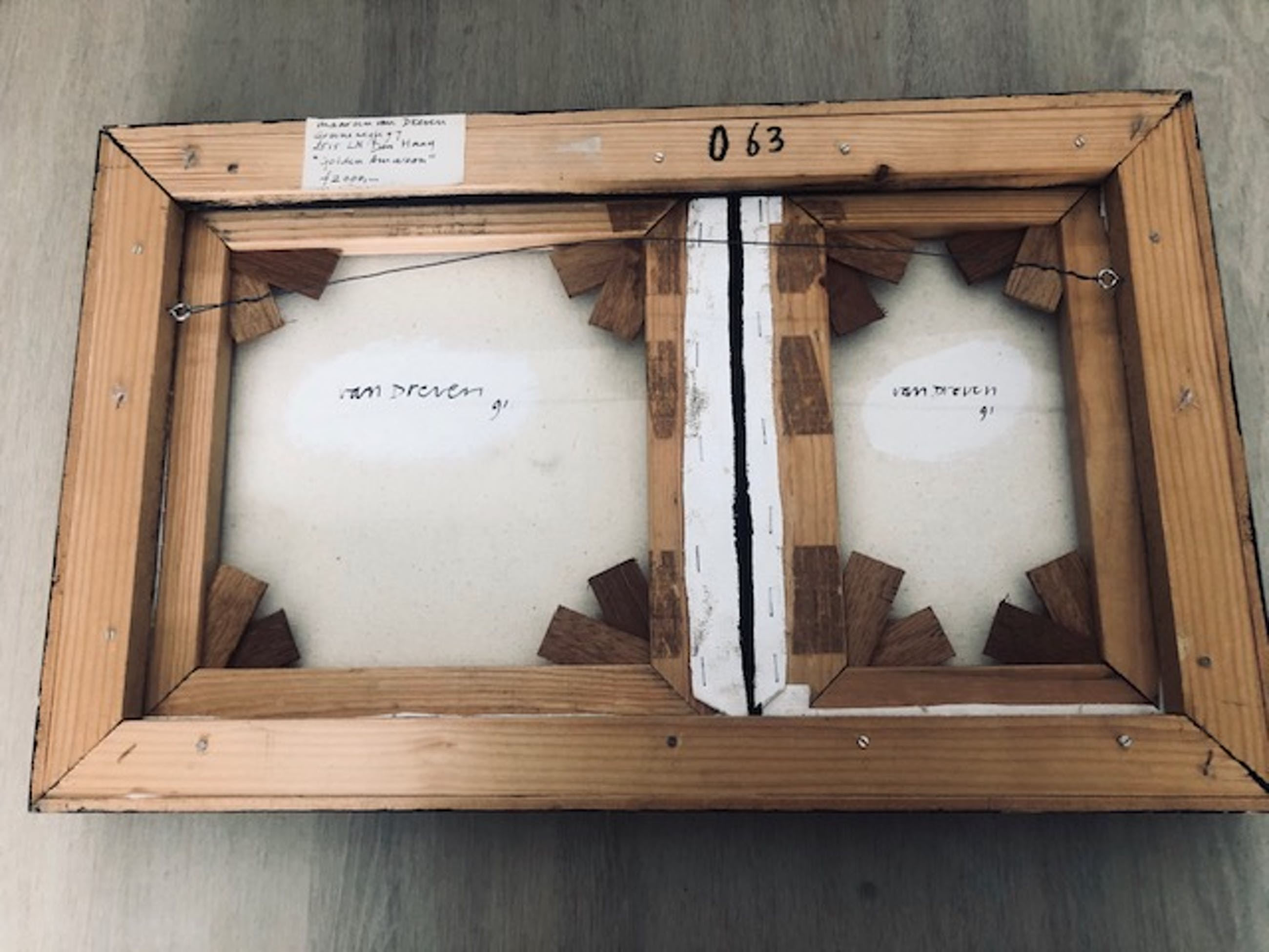 Uniek en origineel werk van de kunstenaar Maarten van Dreven. Goud op zwart doek.
