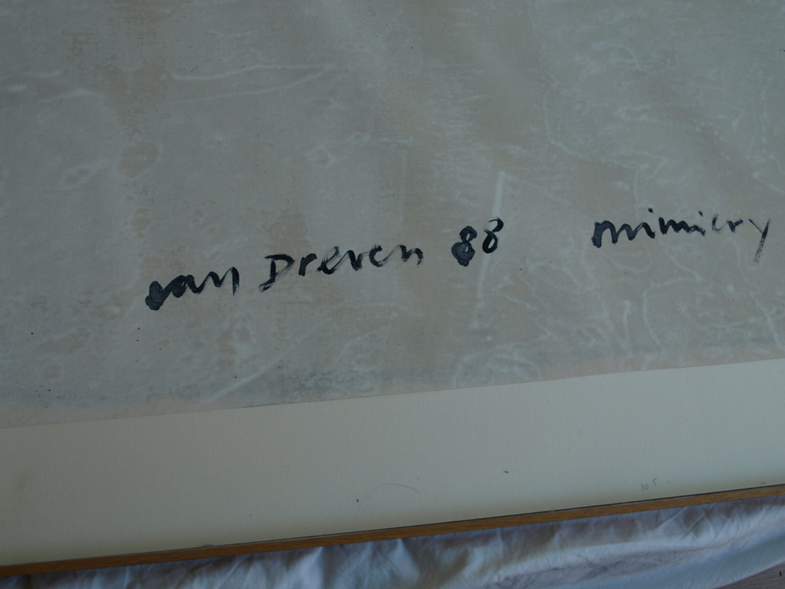 Titel: “Mimicry”. Staat geschreven op de achterkant van het doek.