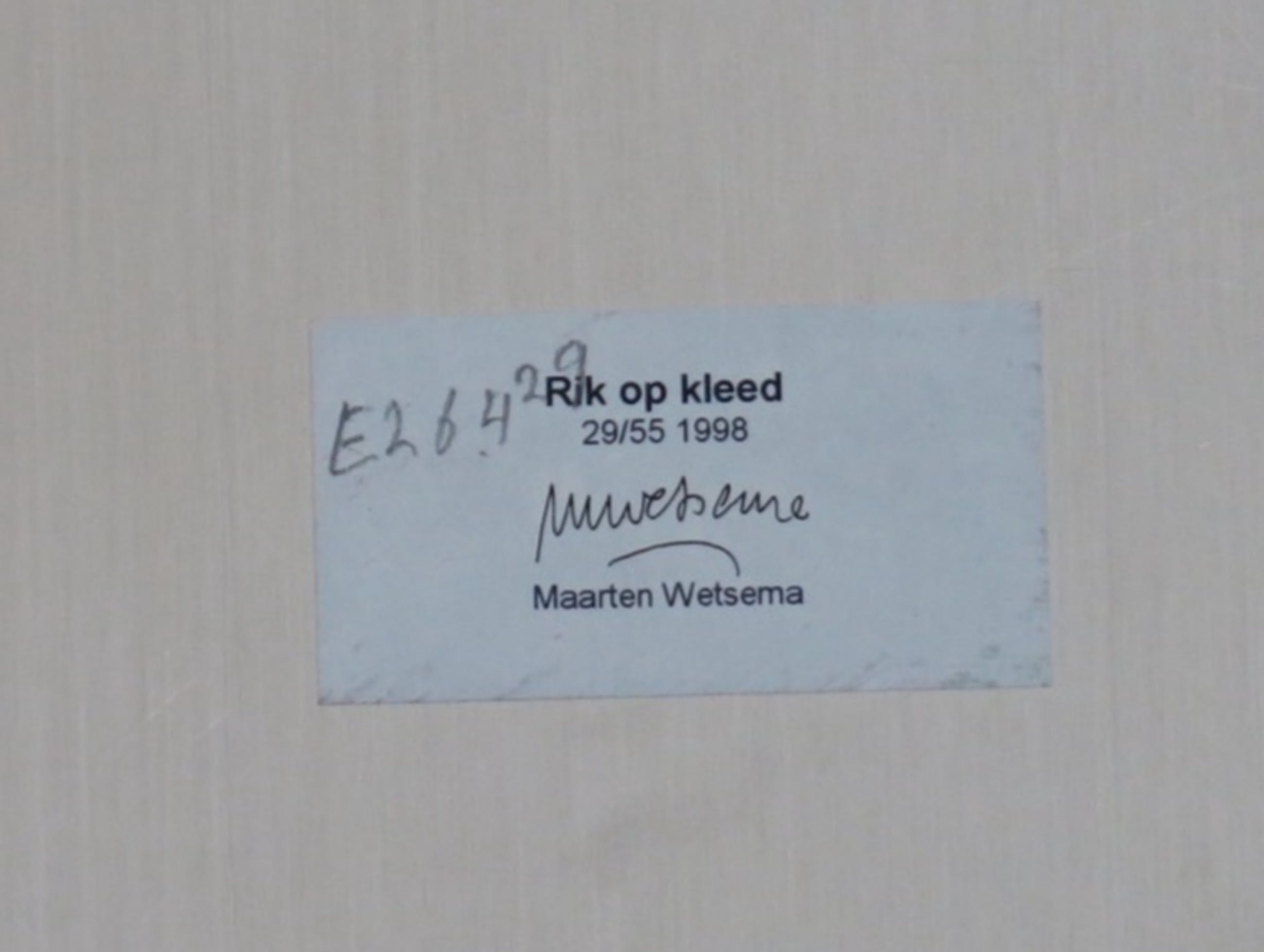 Dit werk is volledig door Kunstveiling.nl gegarandeerd en afkomstig van professionele partijen. Mocht blijken dat het werk niet juist is omschreven, zowel m.b.t. de conditie als de authenticiteit, dan ontvangt u de volledige aankoop terug. De standaard garantie op werken is 3 weken, maar kan in overleg verlengd worden. Als u een werk afhaalt en heeft gecontroleerd, vervalt de garantie op de conditie. Vanzelfsprekend blijft de garantie op authenticiteit dan wel van kracht.