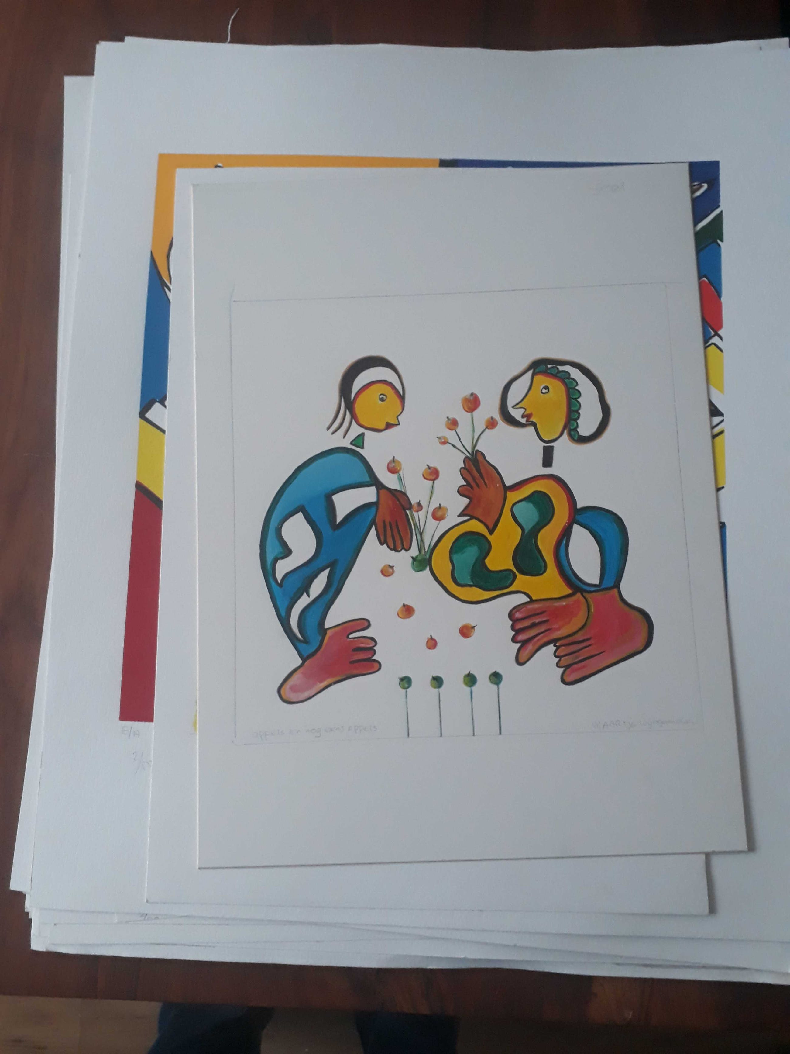 Inclusief een handgesigneerd ontwerp voor een nieuwe zeefdruk De ontwerpen meten 47/35 cm. ze zeefdrukken zijn 60 bij 50 cm de zeefdrukken bestaan uit: 4x masker 4 6x masker 6 9x geen titel