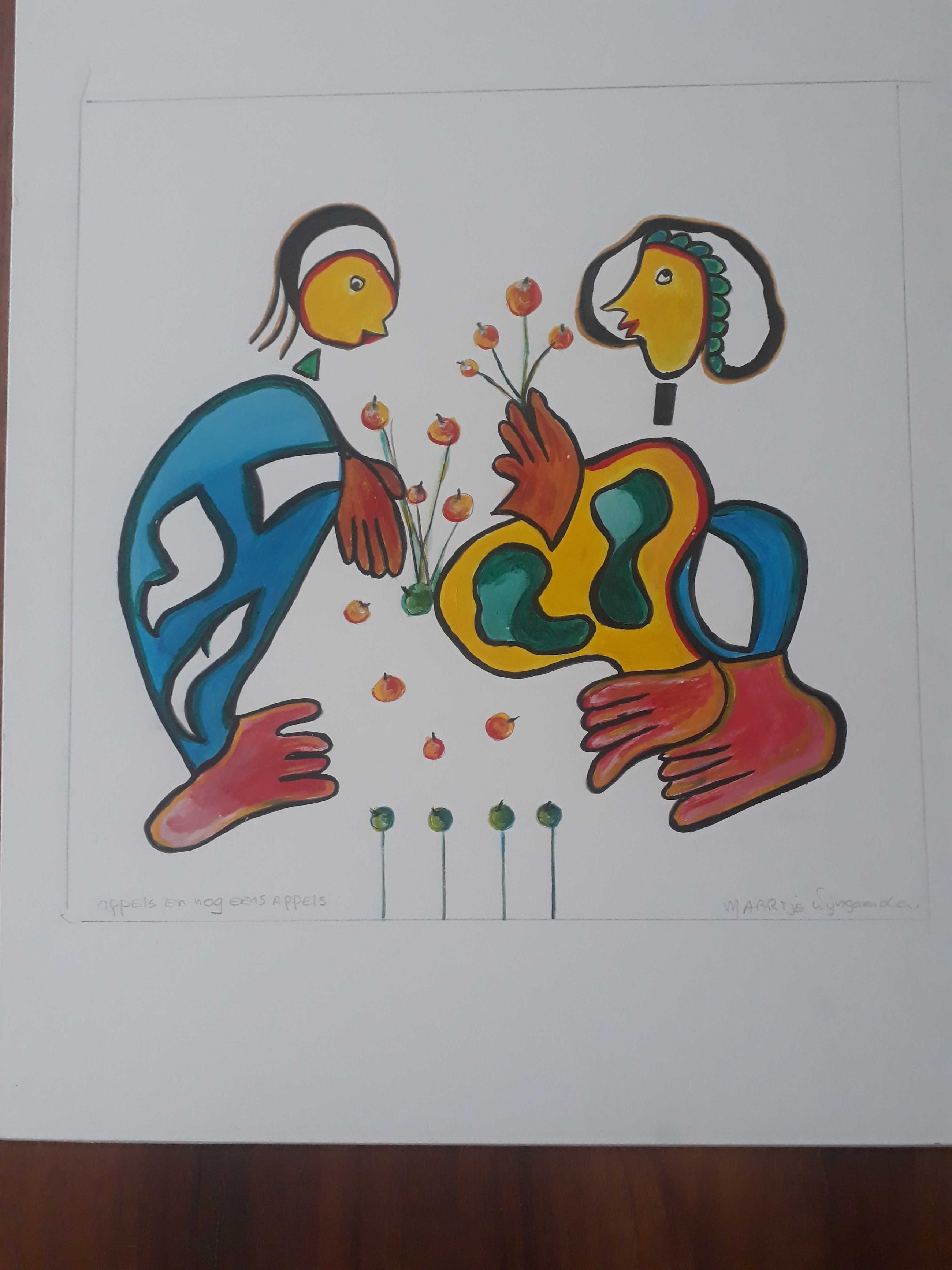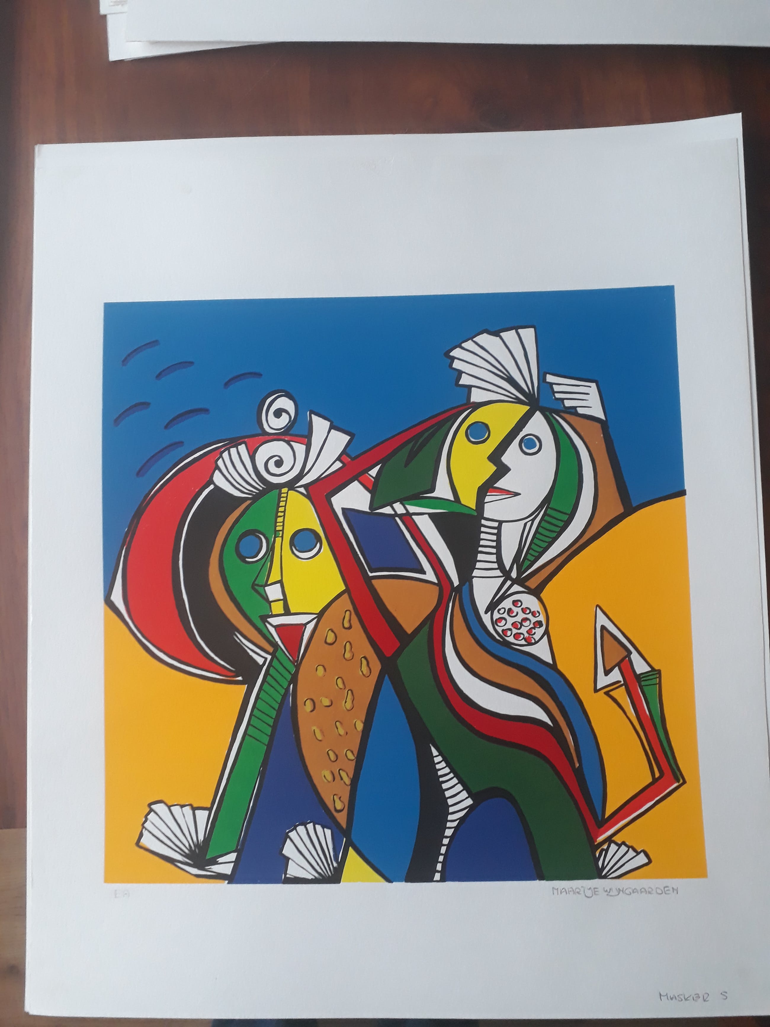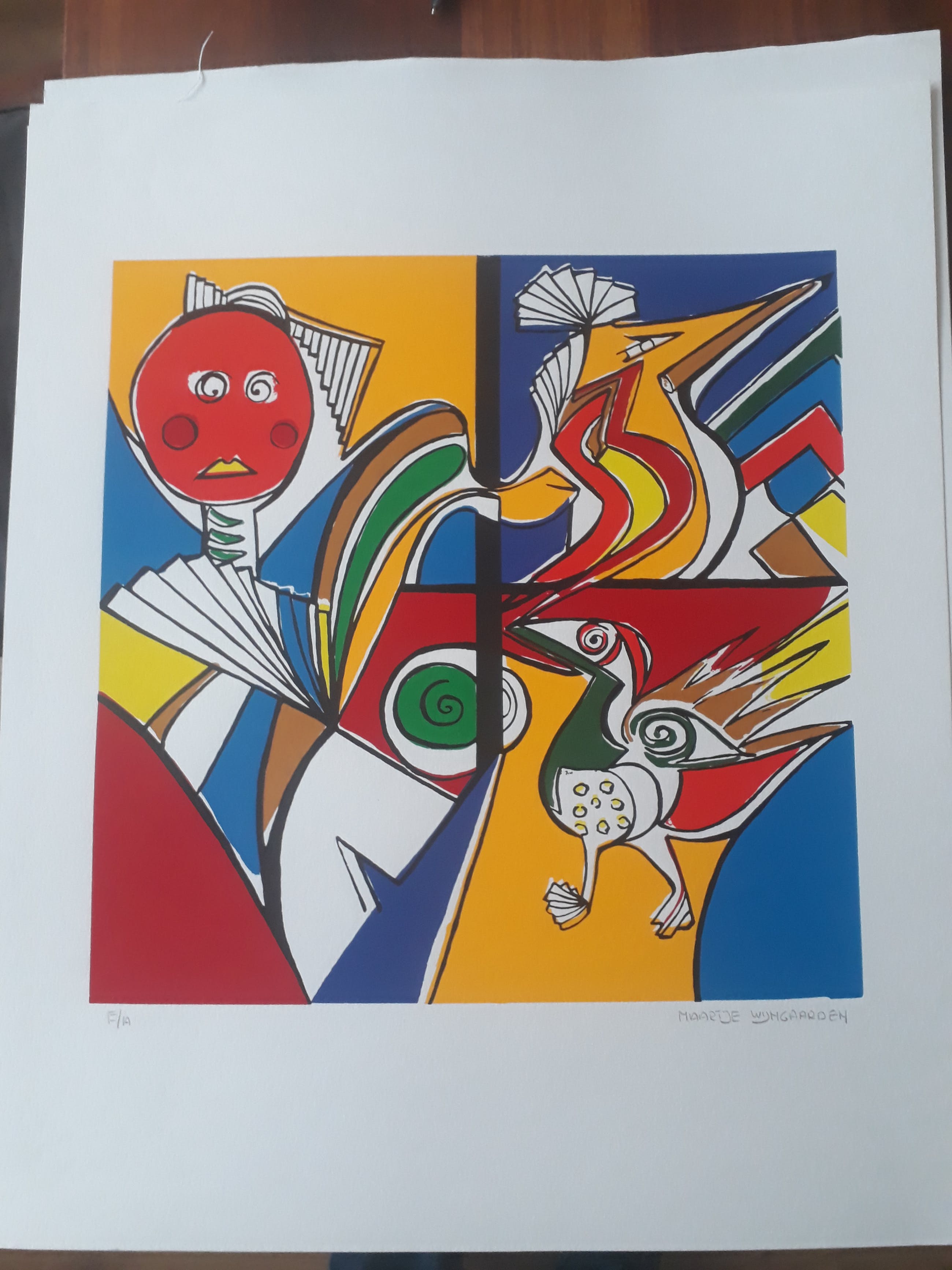 Dit kavel bestaat uit 19 grote nog nooit ingelijste zeefdrukken van maartje wijngaarden. 3 verschillende voorstellingen zie foto,s en 2 ontwerpen die ook gesigneerd zijn