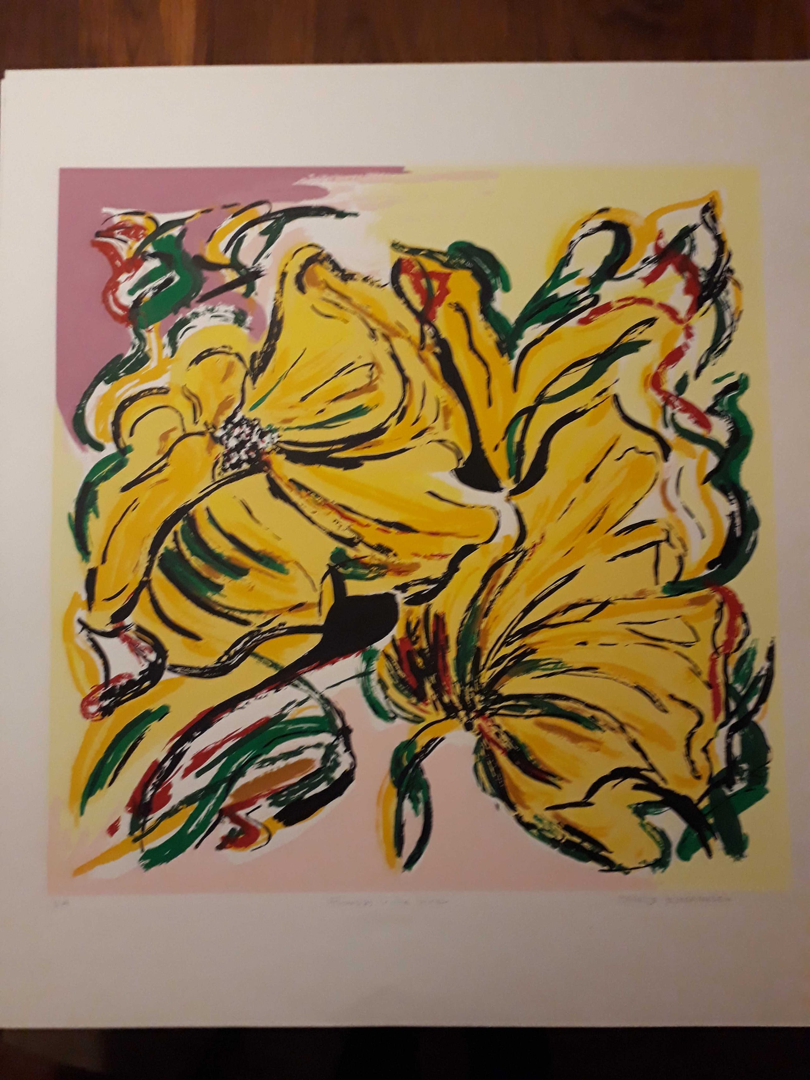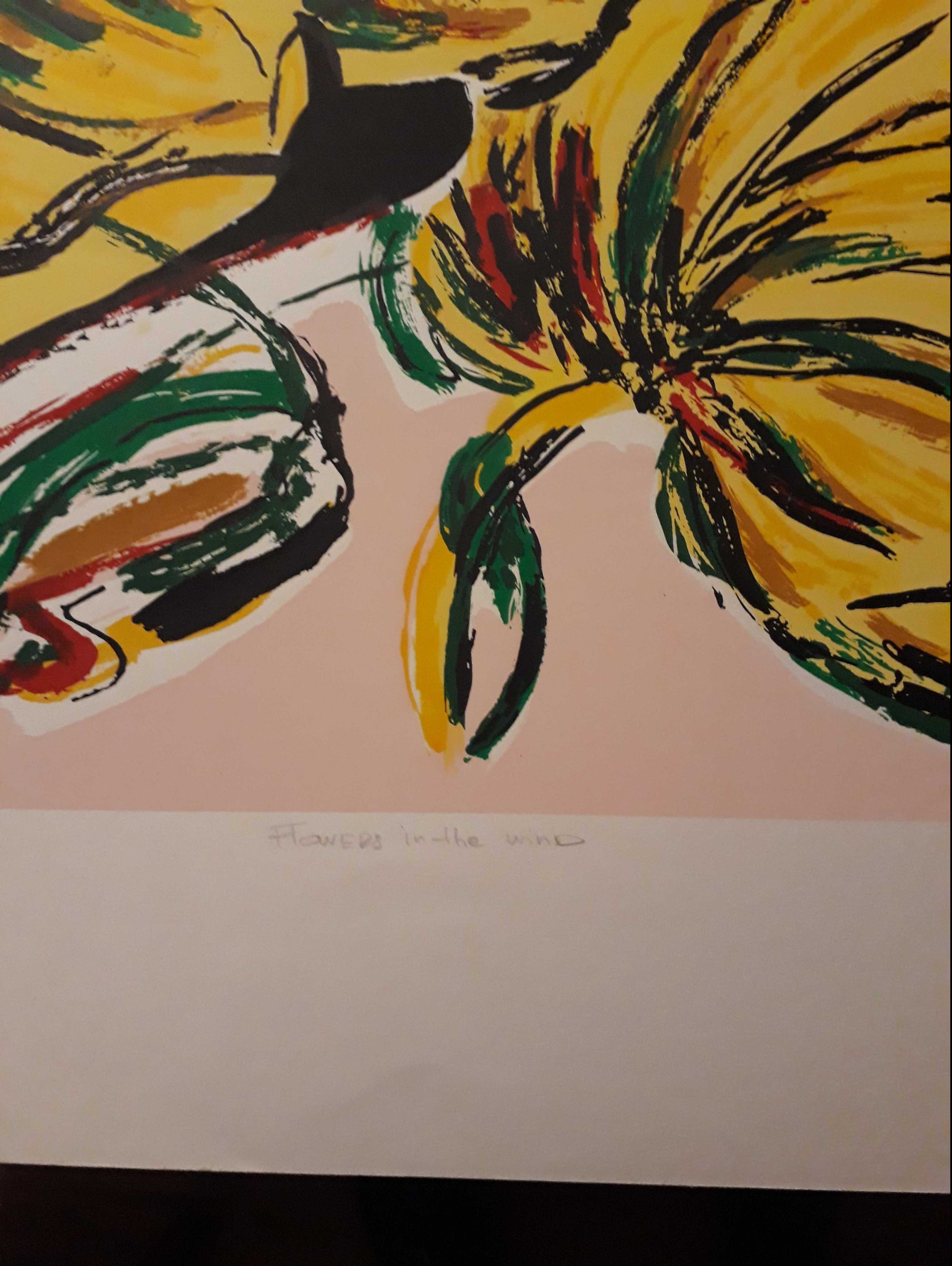 5 grote zeefdrukken van maartje wijngaarden "flowers in the wind" 3 x E.A 2X Genummerd.