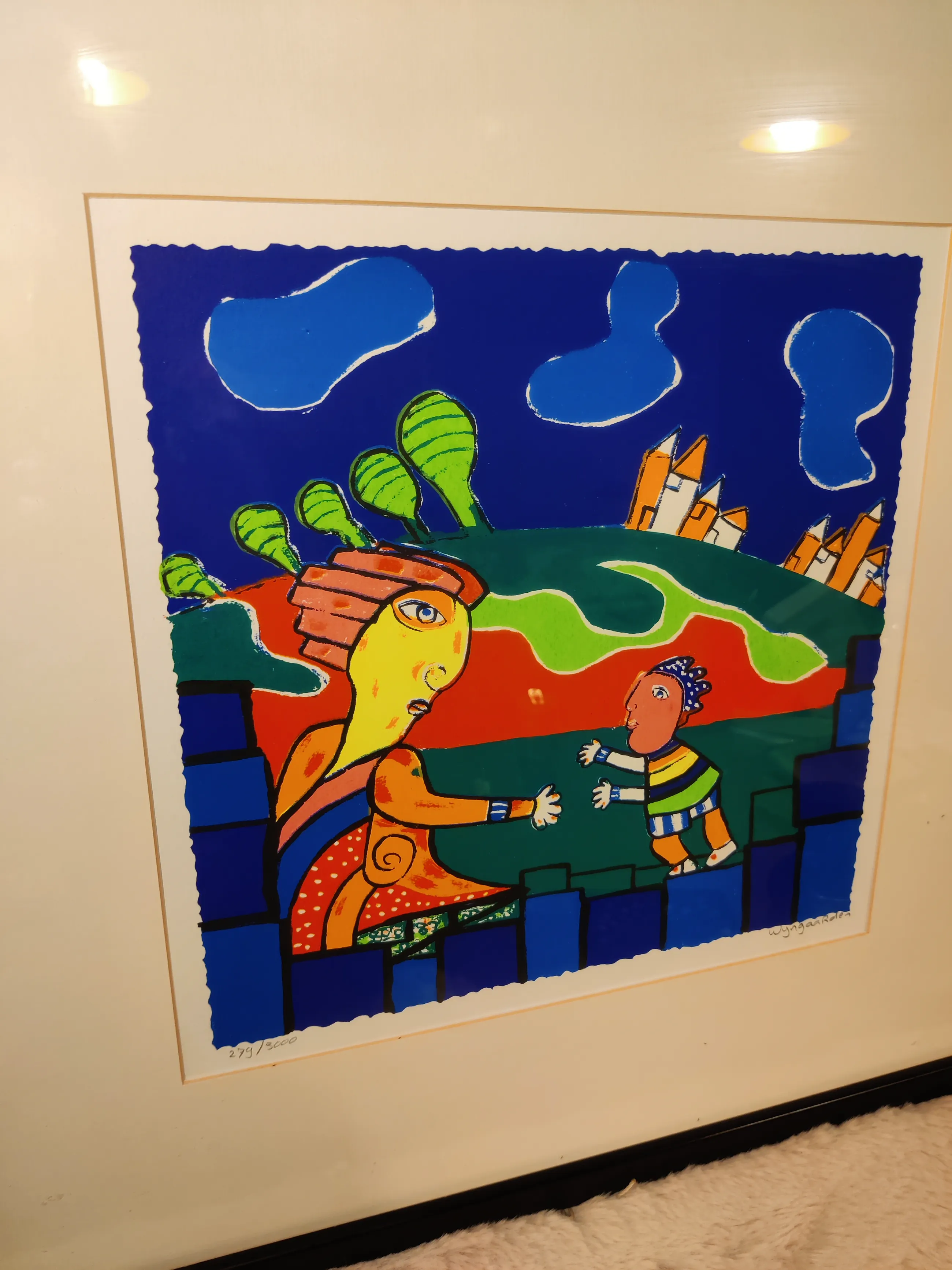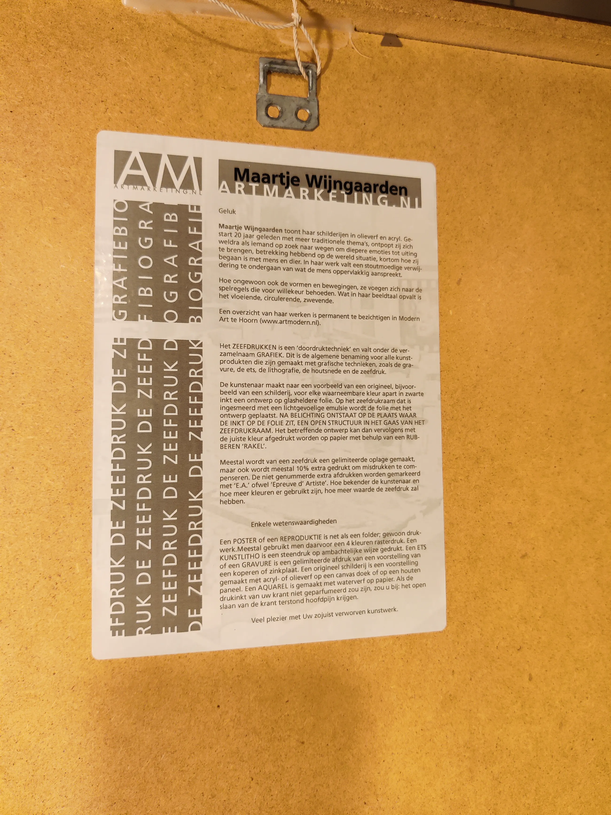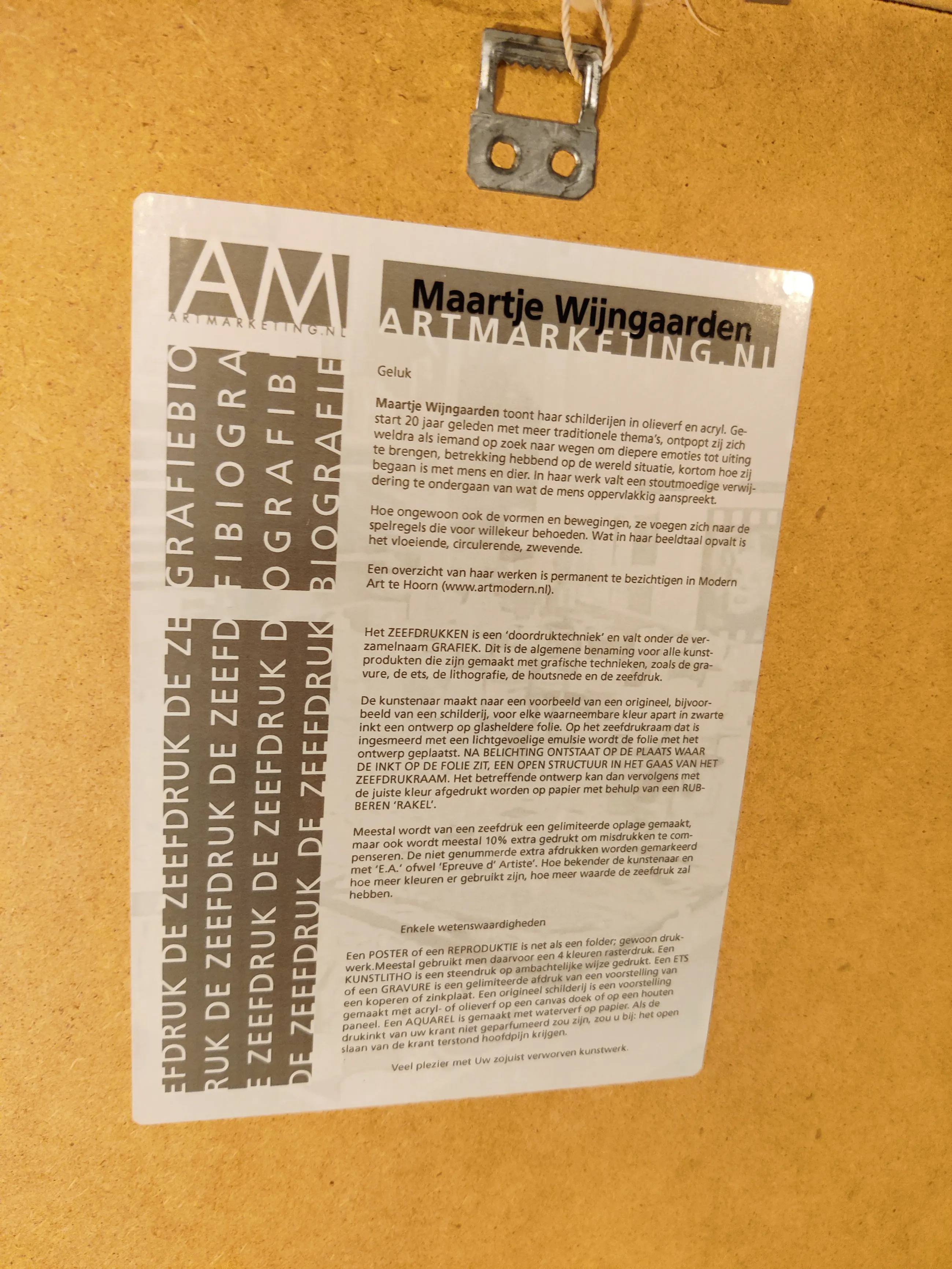 | Geluk! Van Maartje Wijngaarden 279/3000 In uitstekende staat 31 bij 31 Met lijst 52 bij 52 Gesigneerd en genummerd | |||||||||||