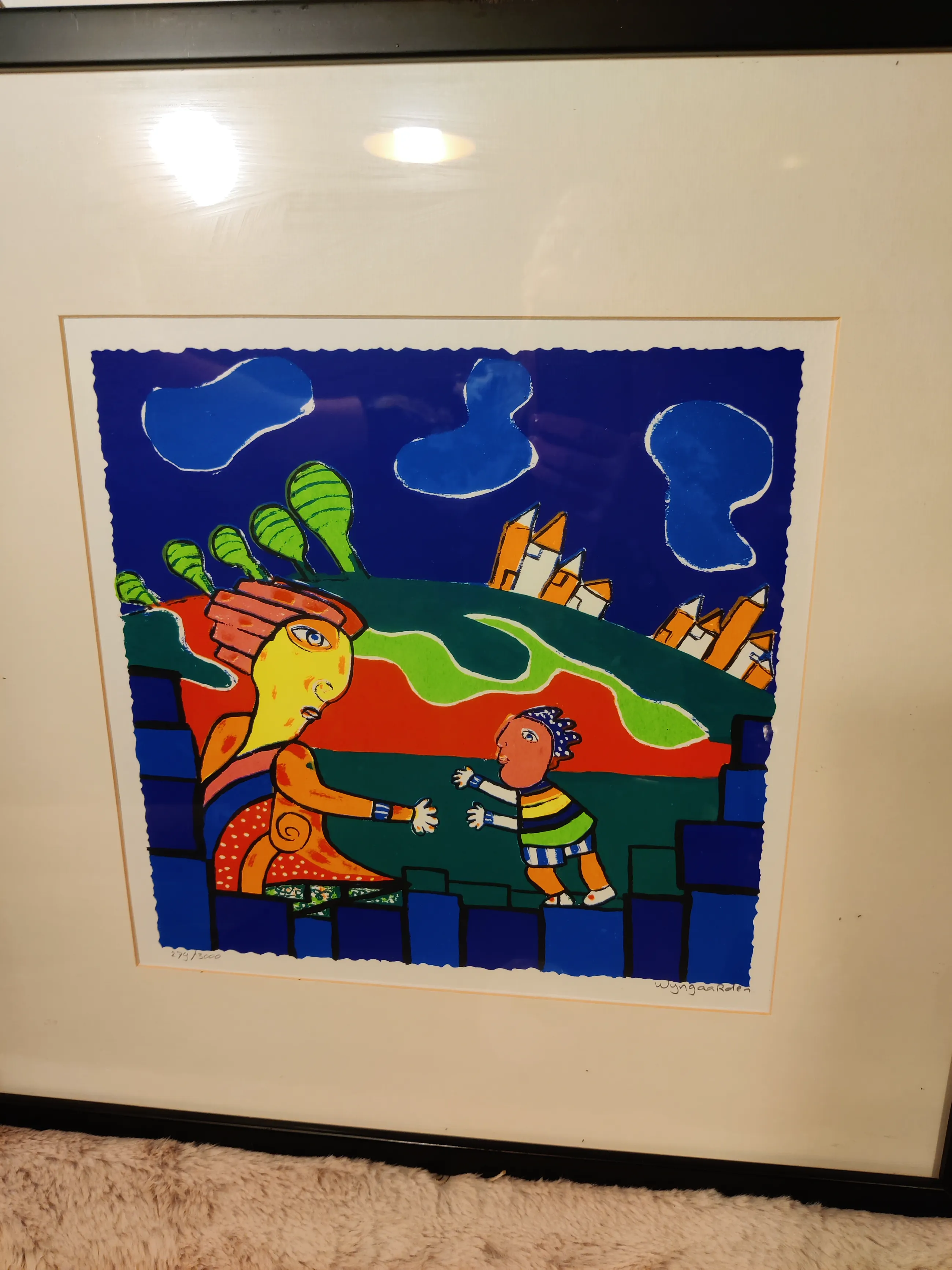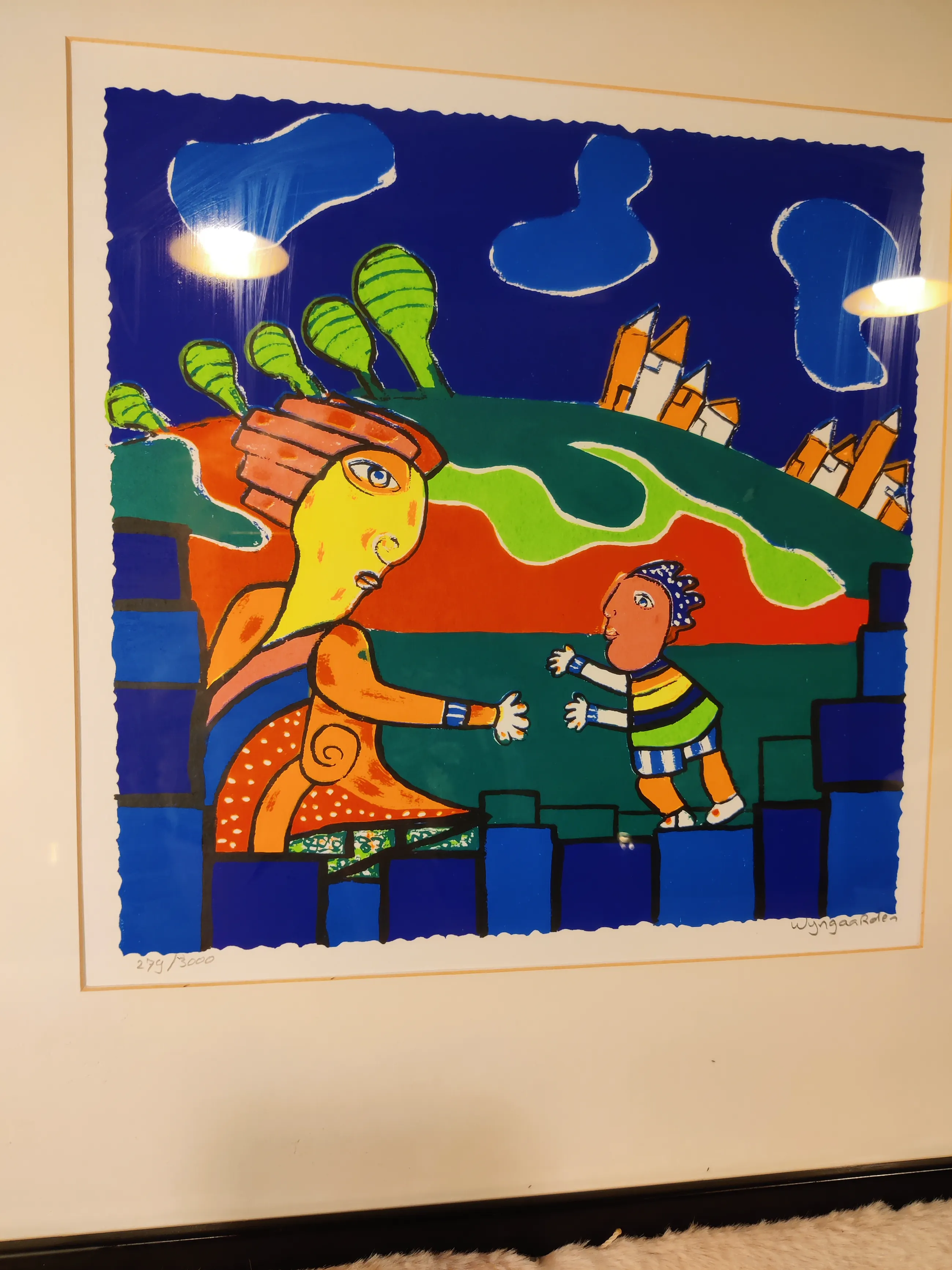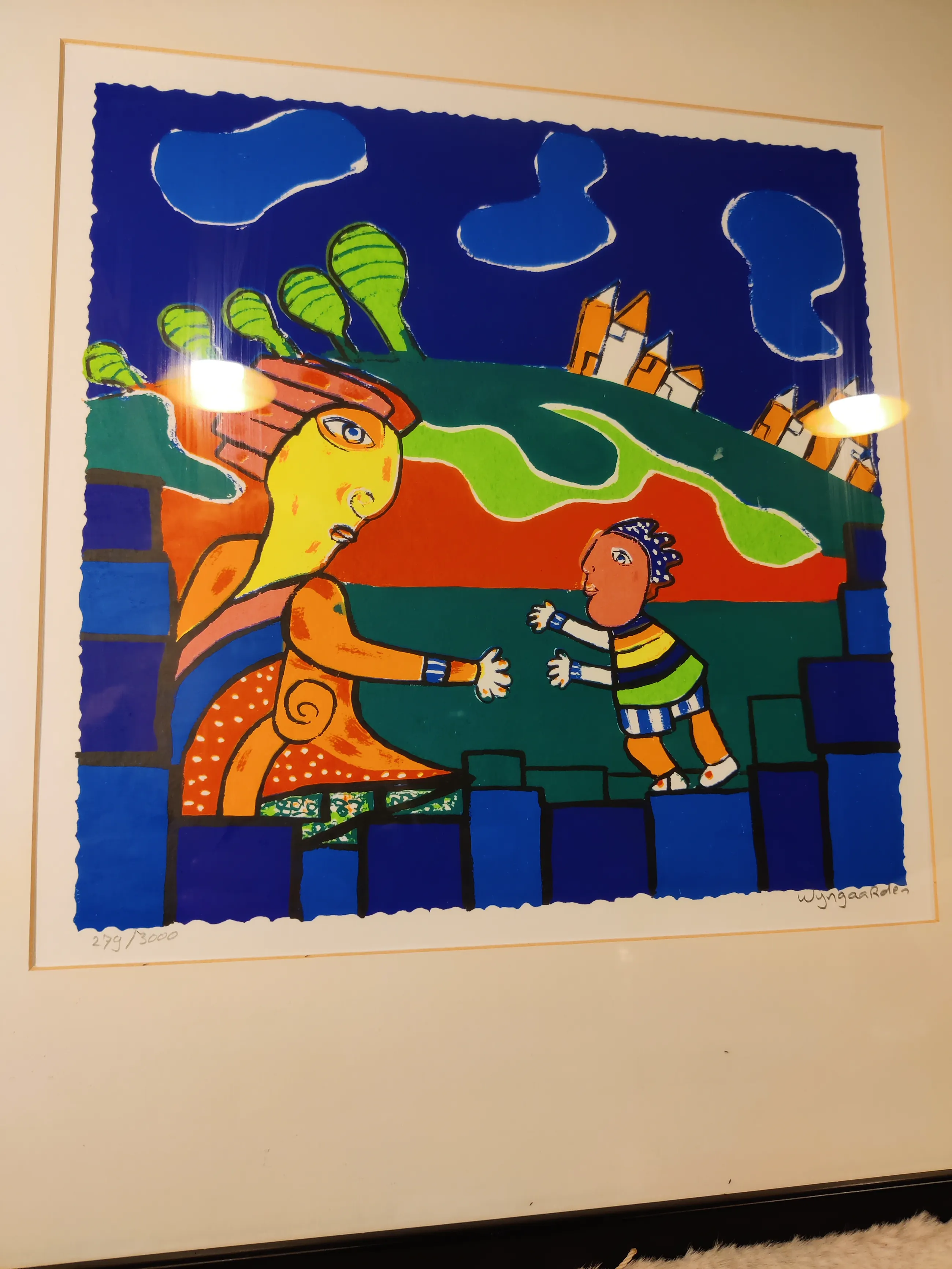 | Geluk! Van Maartje Wijngaarden 279/3000 In uitstekende staat 31 bij 31 Met lijst 52 bij 52 Gesigneerd en genummerd | |||||||||||