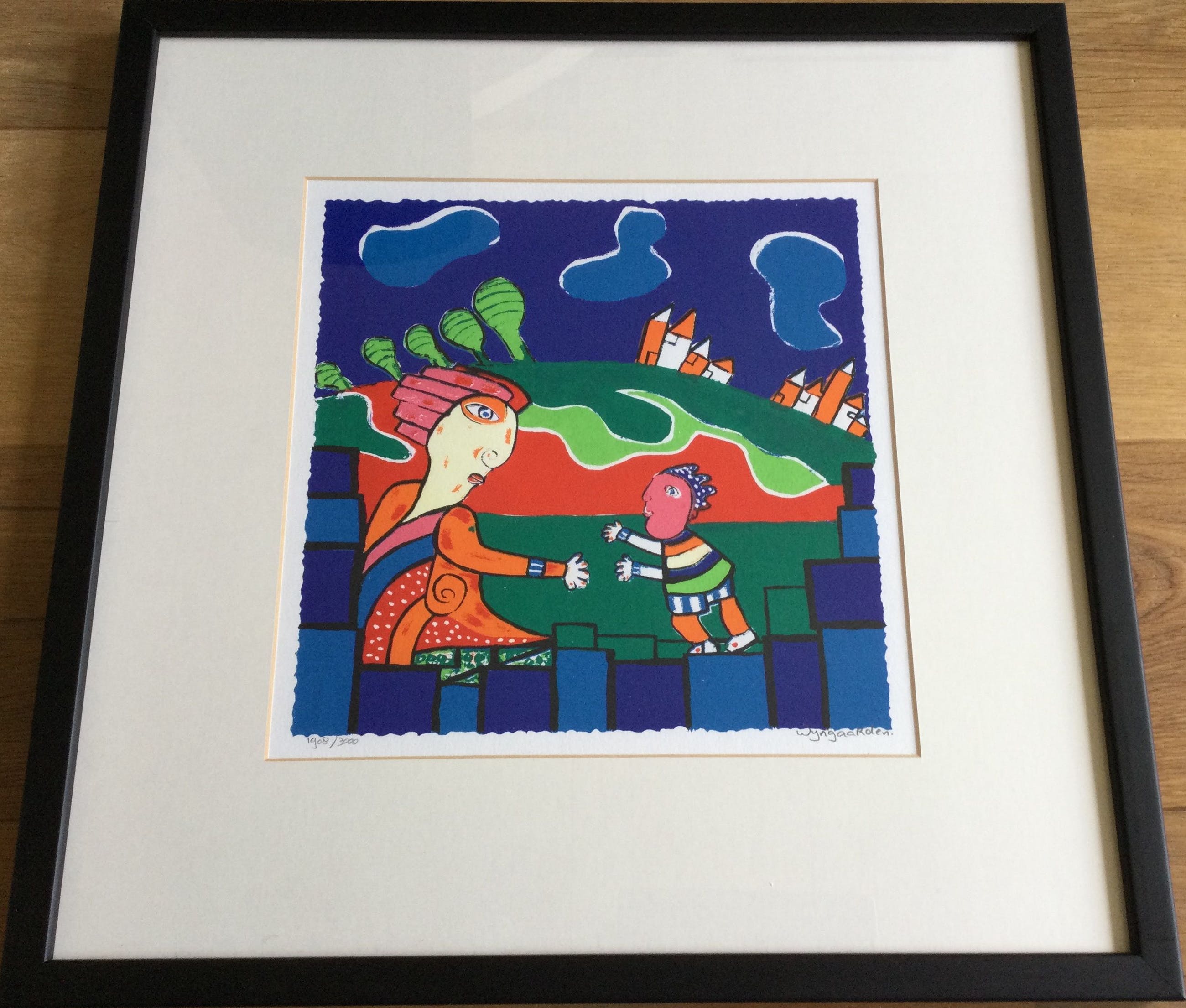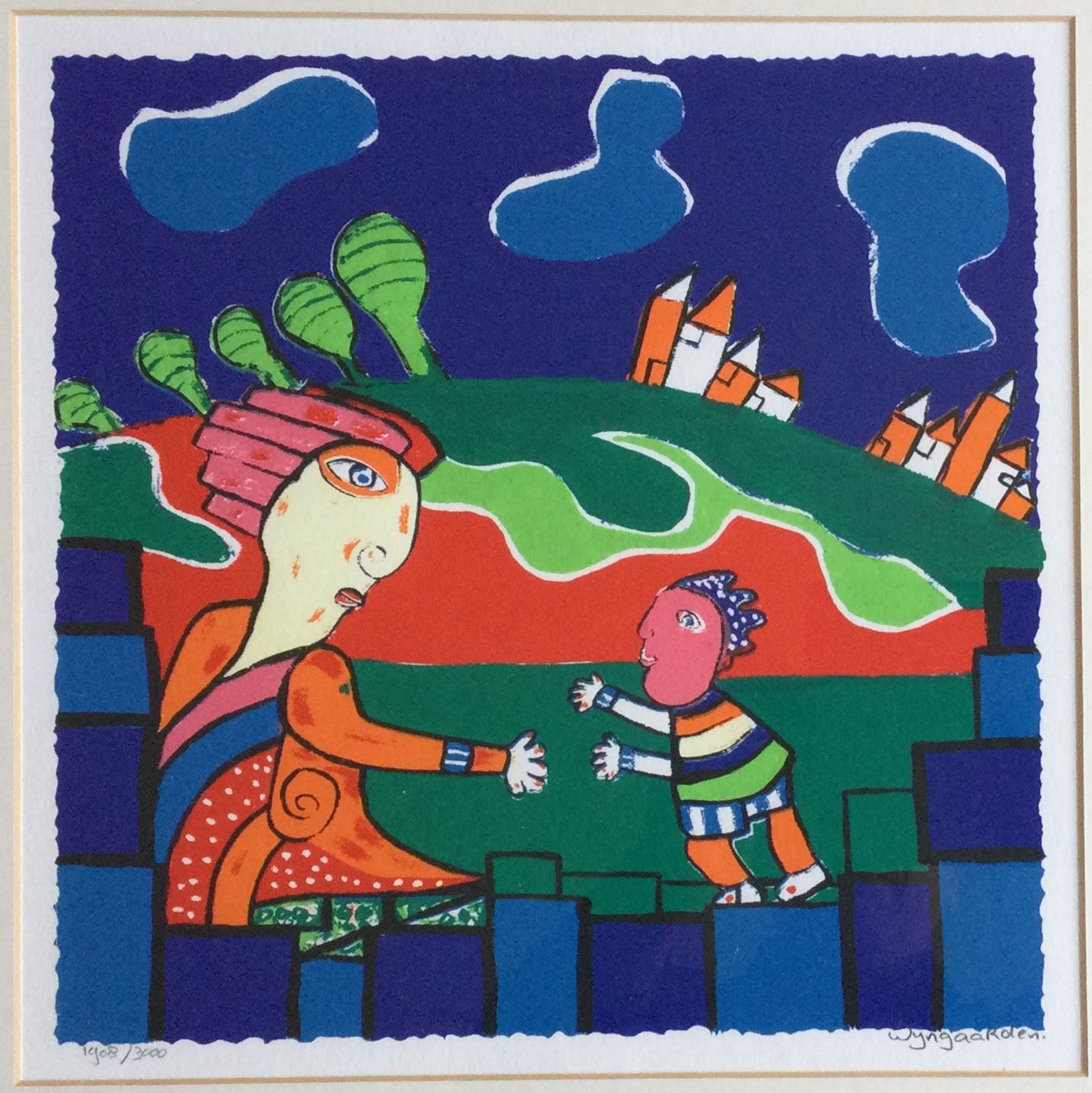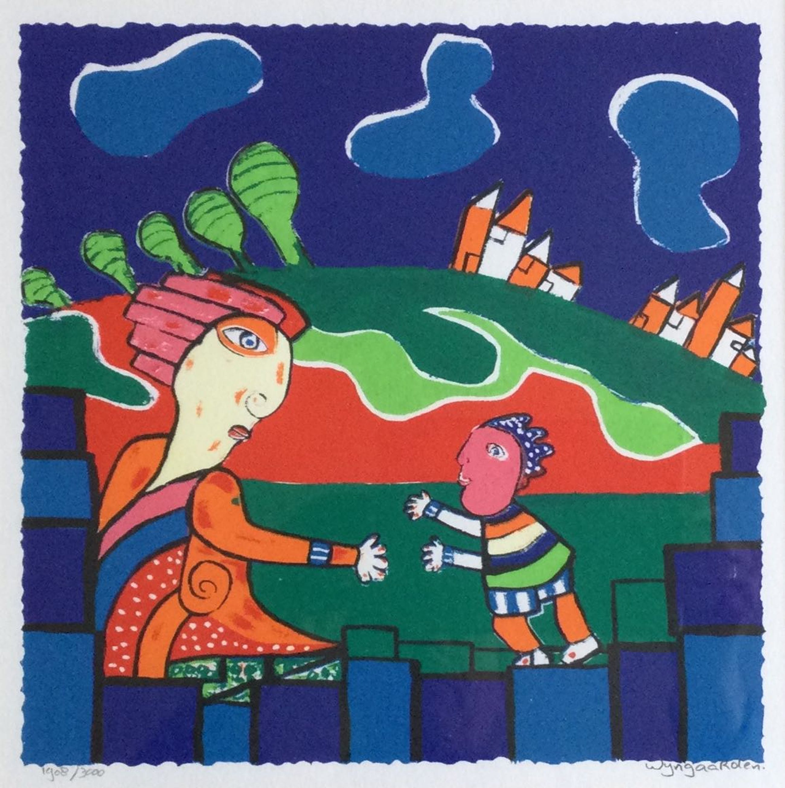 Kleuren zeefdruk van Maartje Wijngaarden (1947) Op geschept papier Oplage 1908 van 3000 Handgesigneerd met potlood Voorzien van ophanghaak