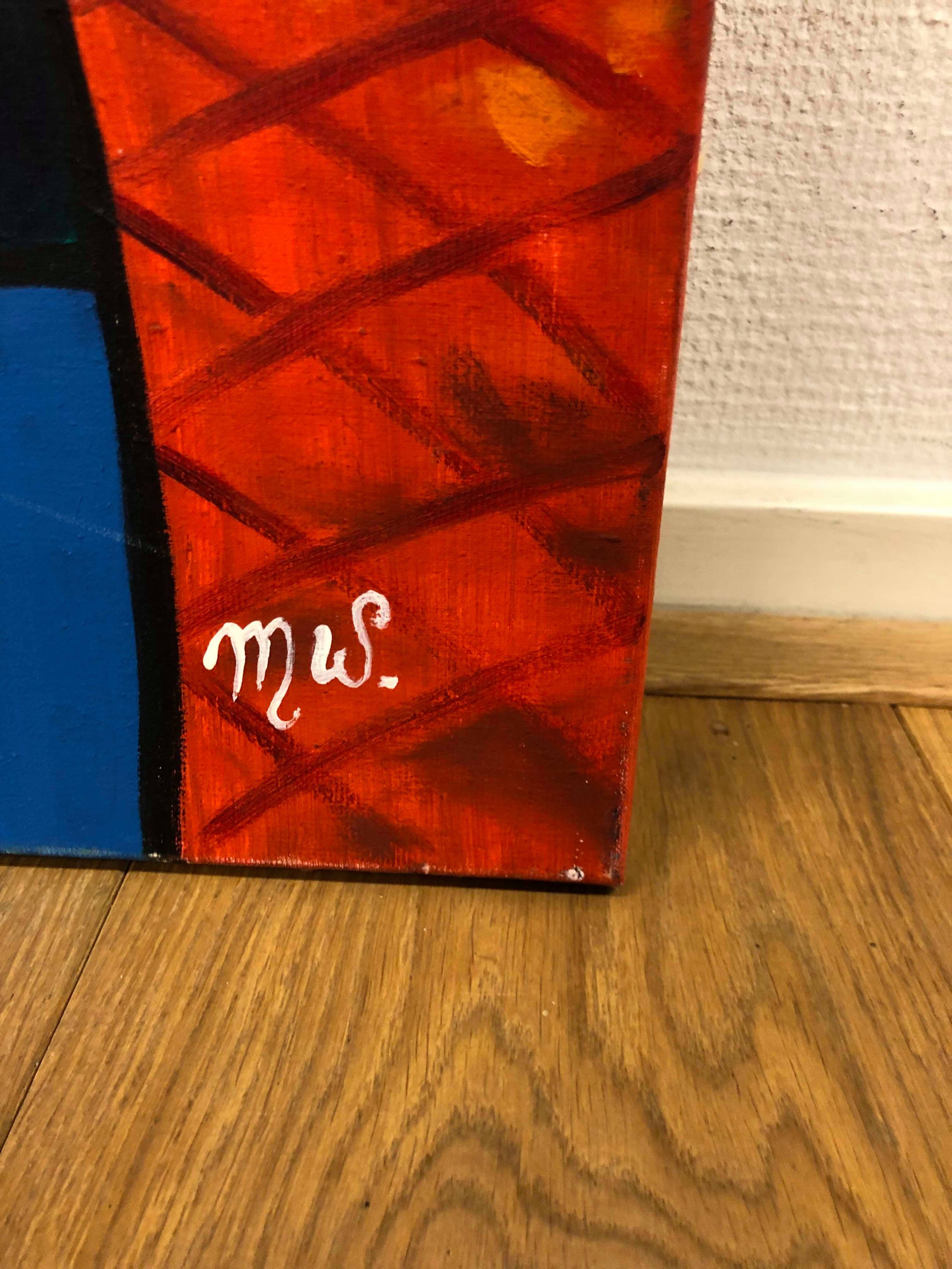 Fris, goed onderhouden schilderij. Twee nonnen uitgebeeld die naar elkaars hand reiken. Opgekocht uit atelier.