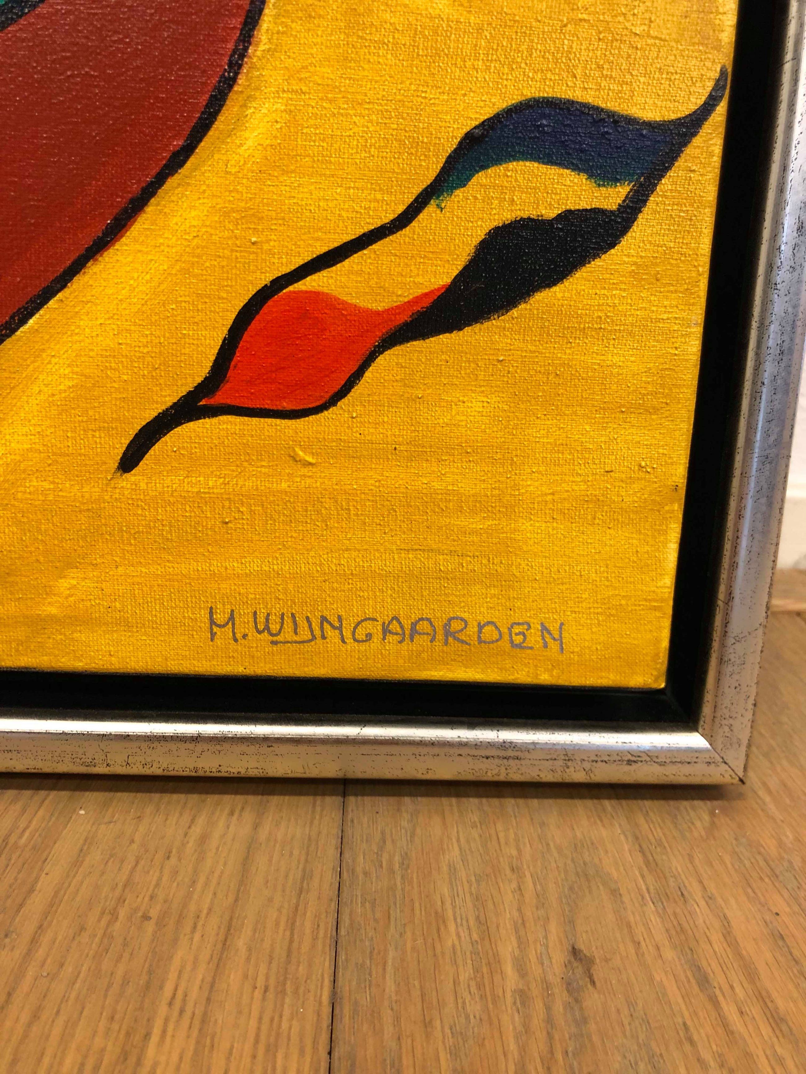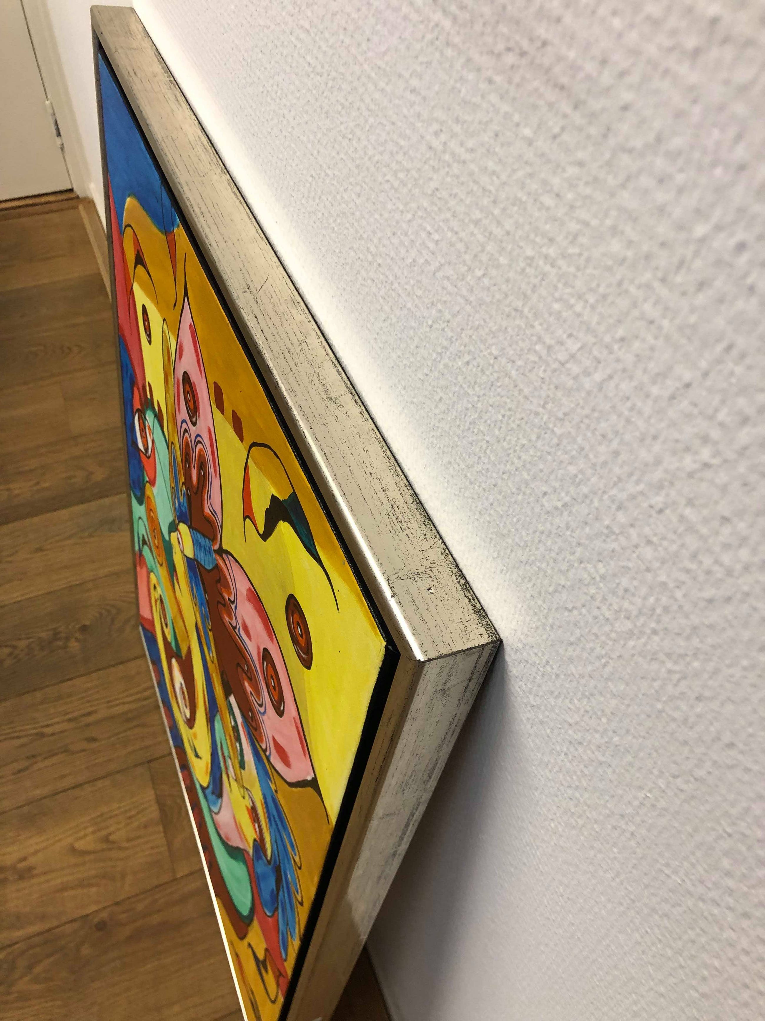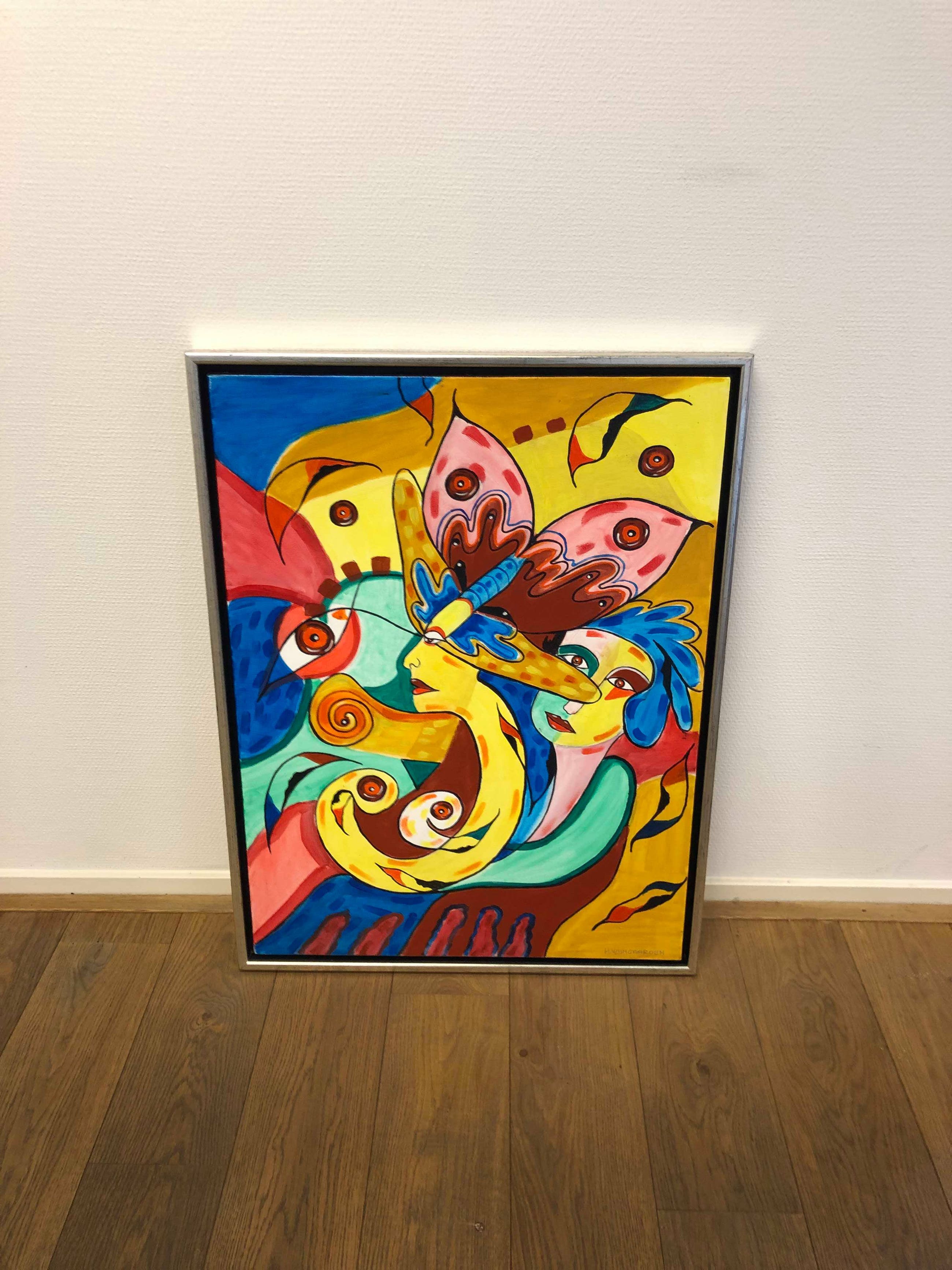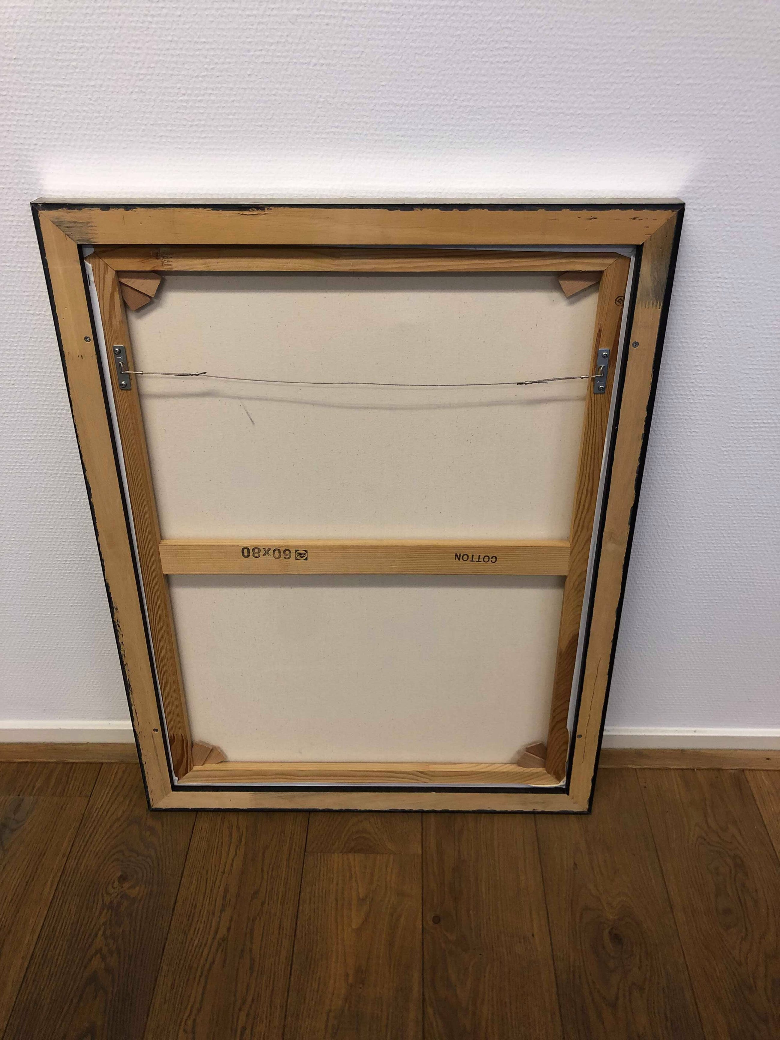 Een mooi, fris schilderij met mooie moderne kleuren erin verwerkt, goed onderhouden.