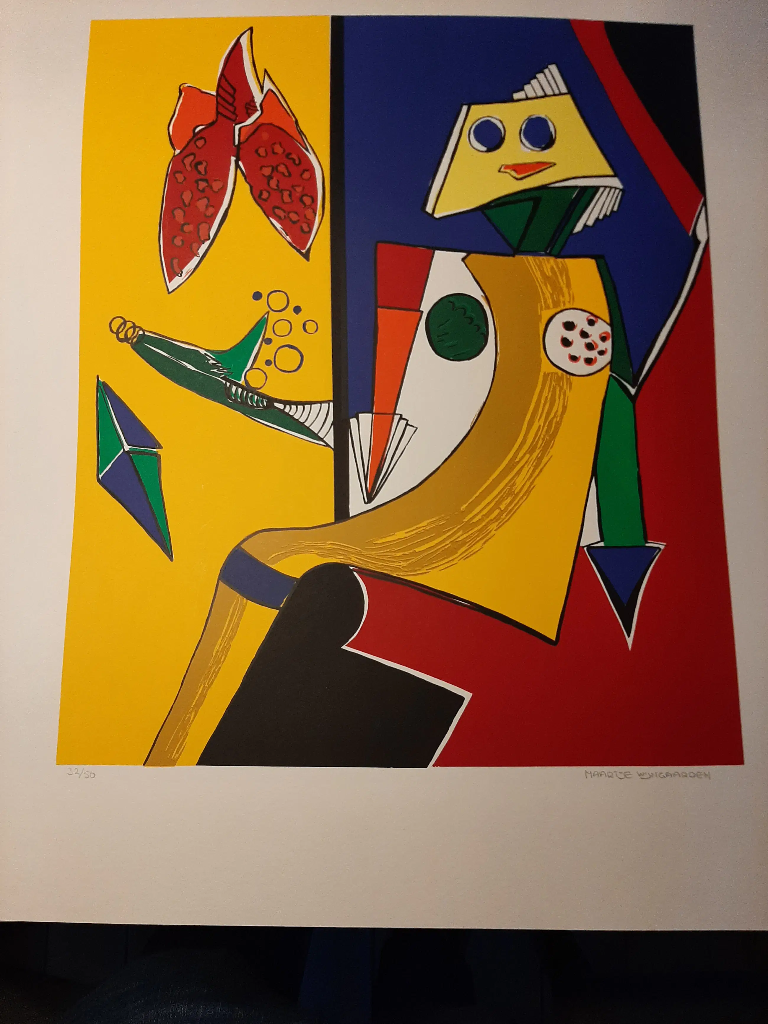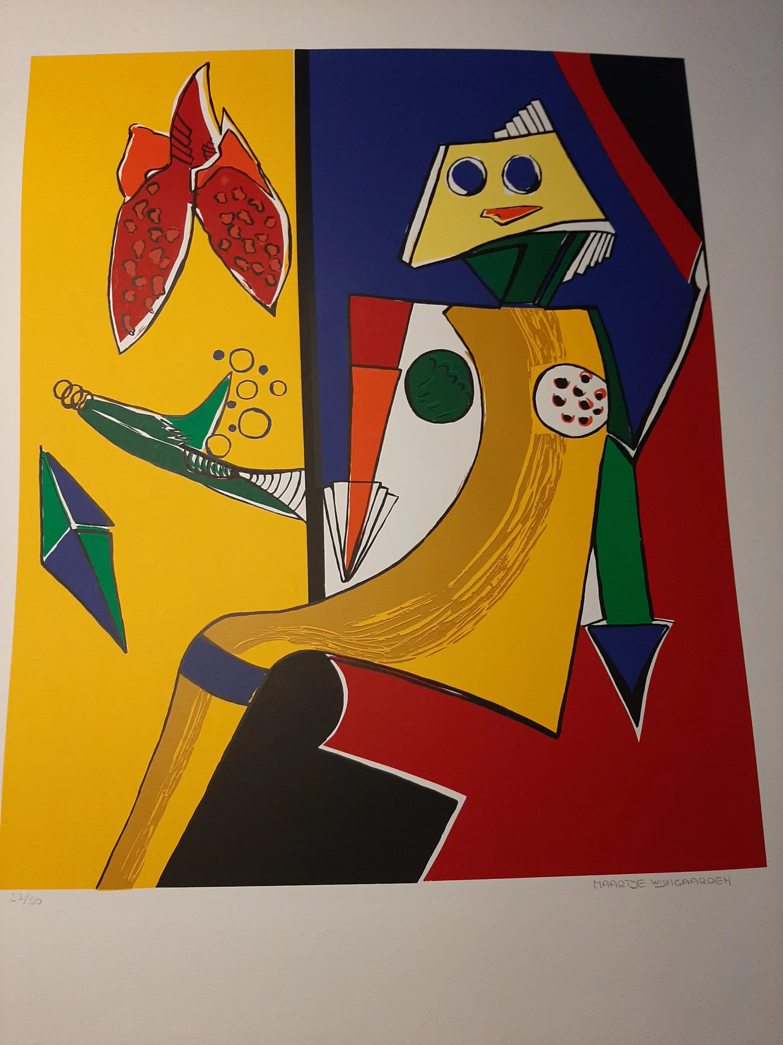 Afmeting blad: H. 80 x B.70 cm. Oplage: E.A Gesigneerd: met de hand. Techniek: zeefdruk op papier