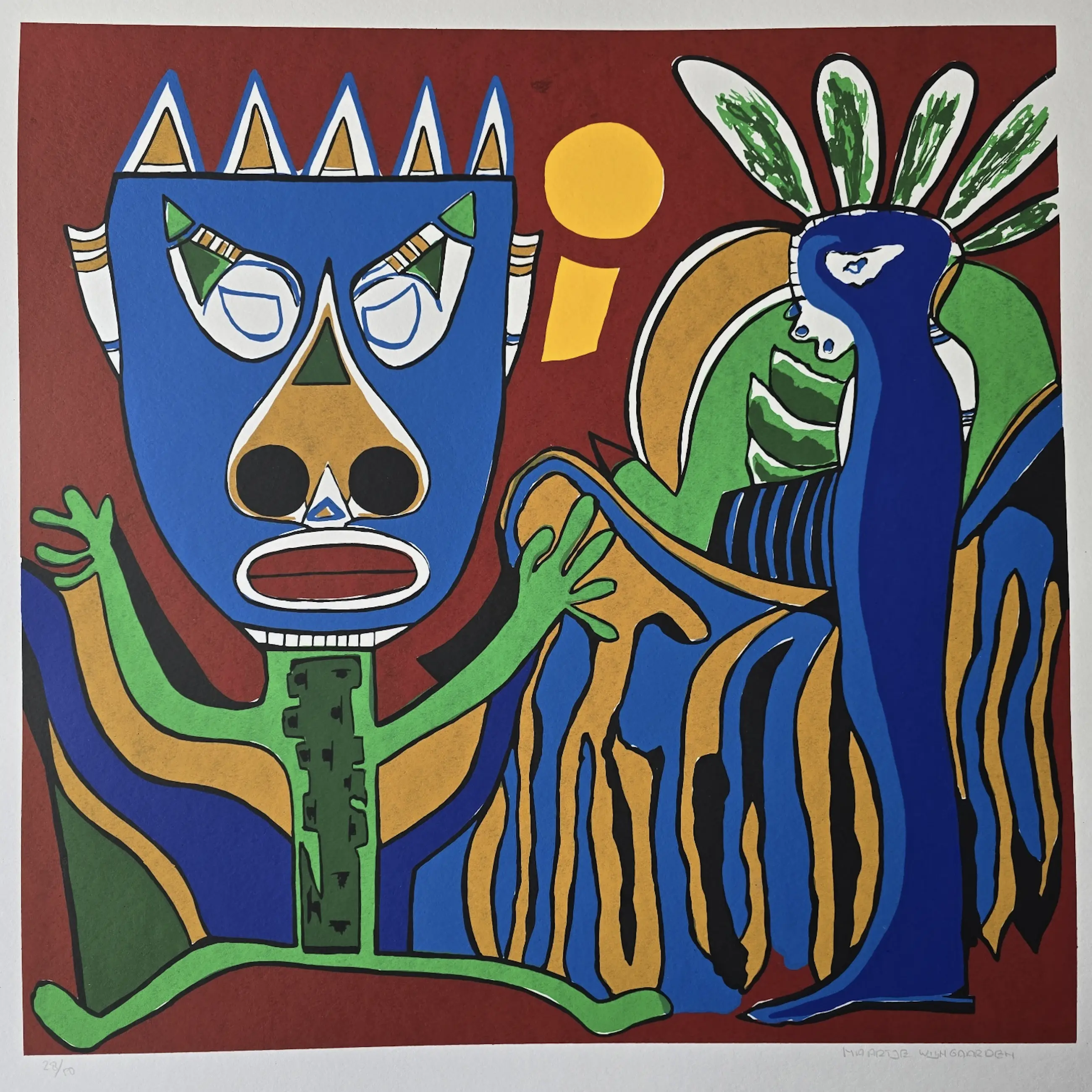 Grote hand gesigneerde en genummerde zeefdruk van Maartje Wijngaarden.