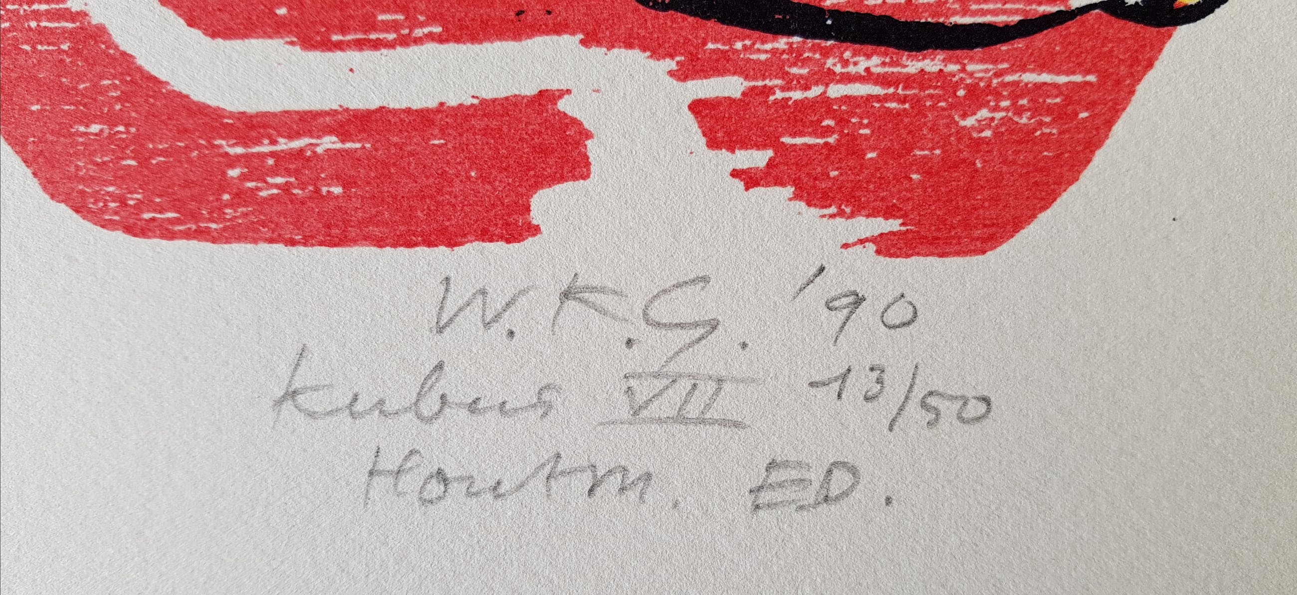 Maatschap Klaas Gubbels/Walter Kerhofs HoutsnedeKubus VIIRechtsonder gesigneerd, gedateerd etc, zie foto 2Papiermaat: 61 x 88,50 cm