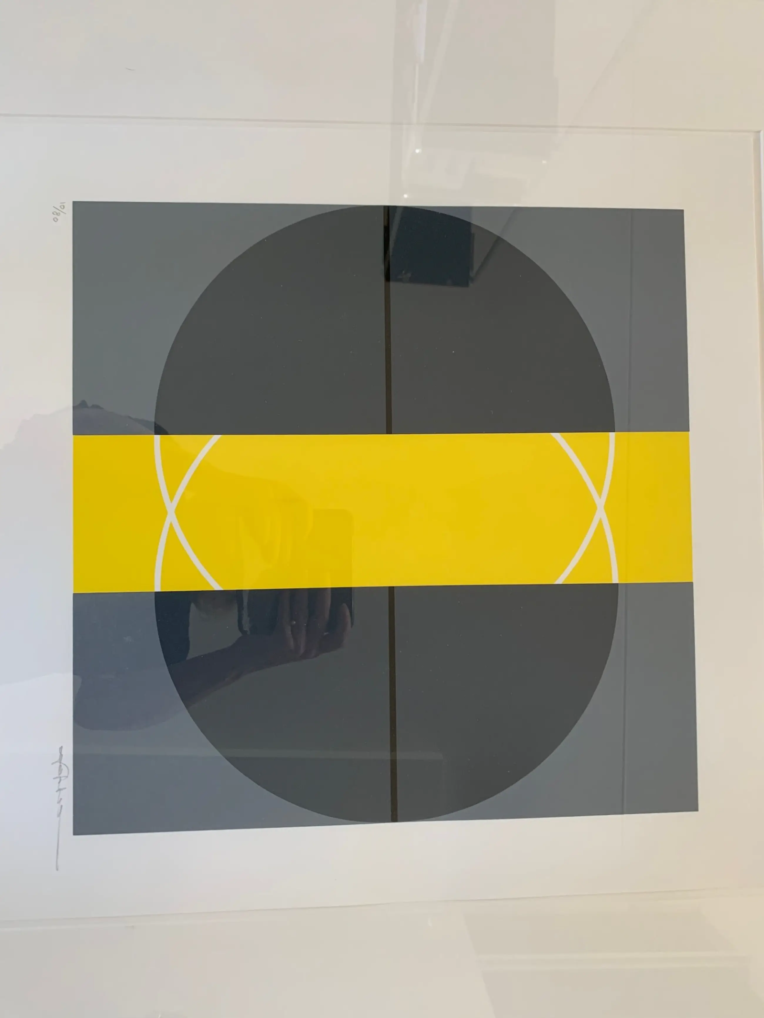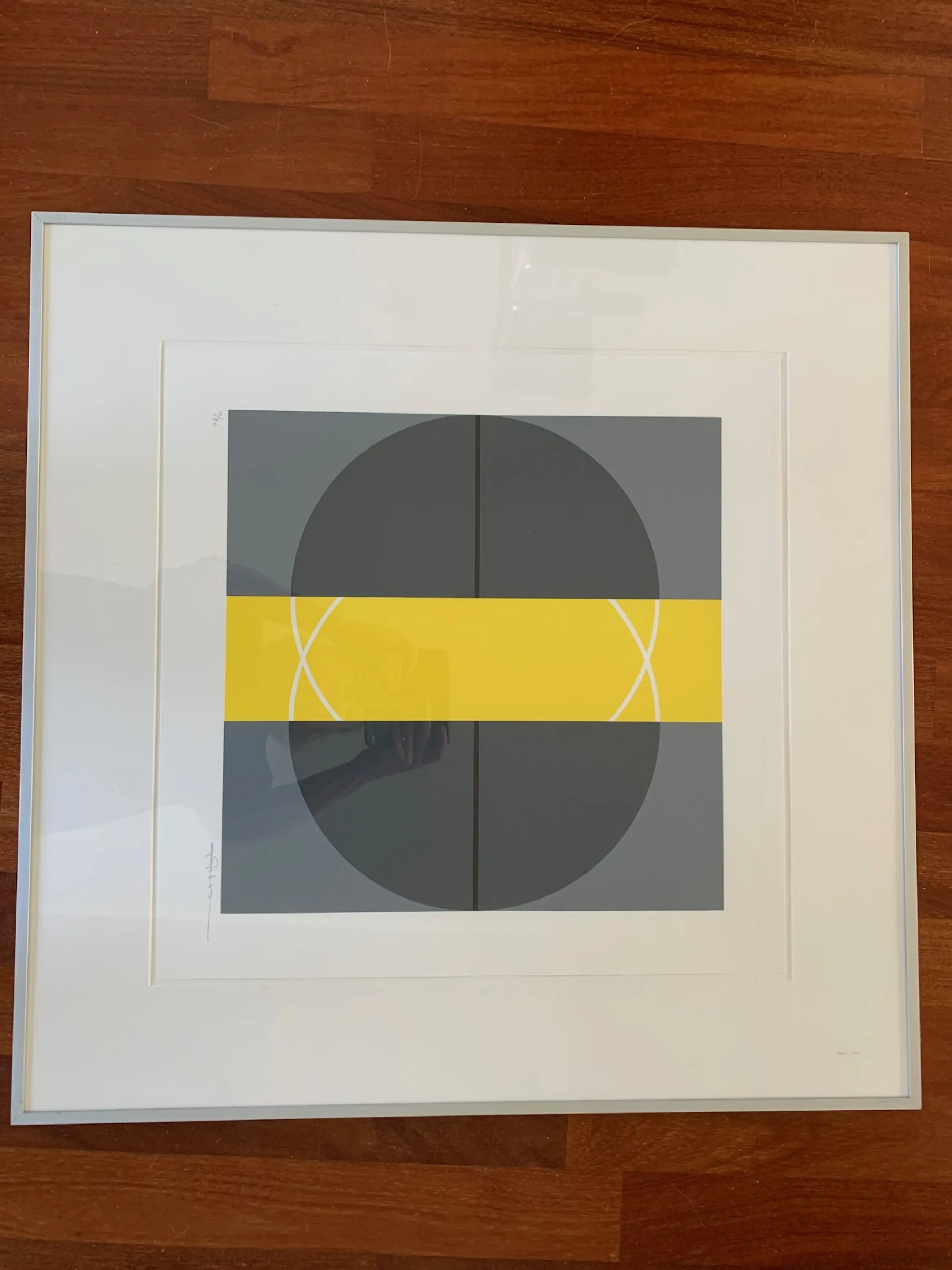 Kleuren zeefdruk uit een oplage van 80. Gesigneerd. Op de achterkant label met "Haagse constructivisten". Vermoedelijk Mabel Bouscholte.
