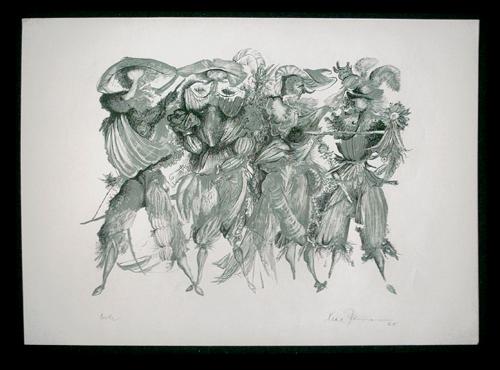 Mac Zimmermann (1912-1995). Landsknechte, Farblithographie, 1961.