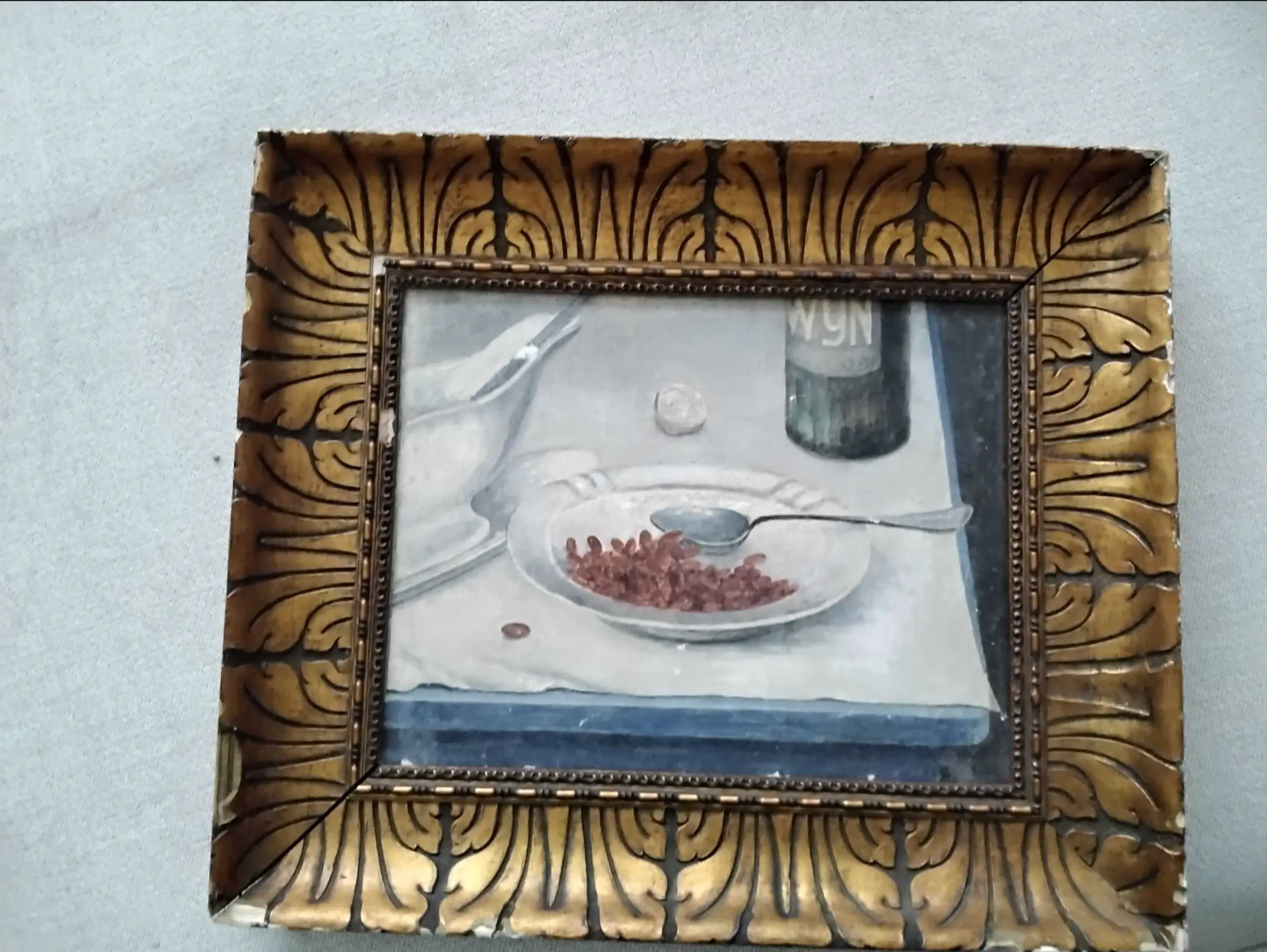 Werk in goede staat, lijst op een paar plekjes beschadigd