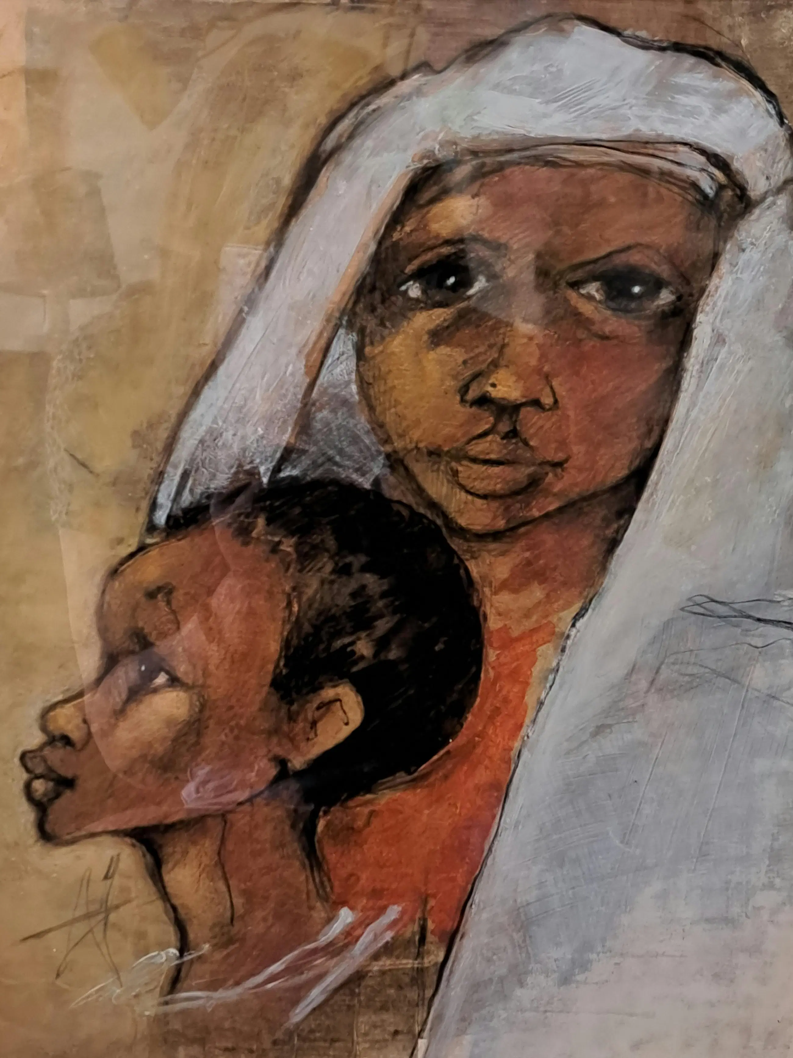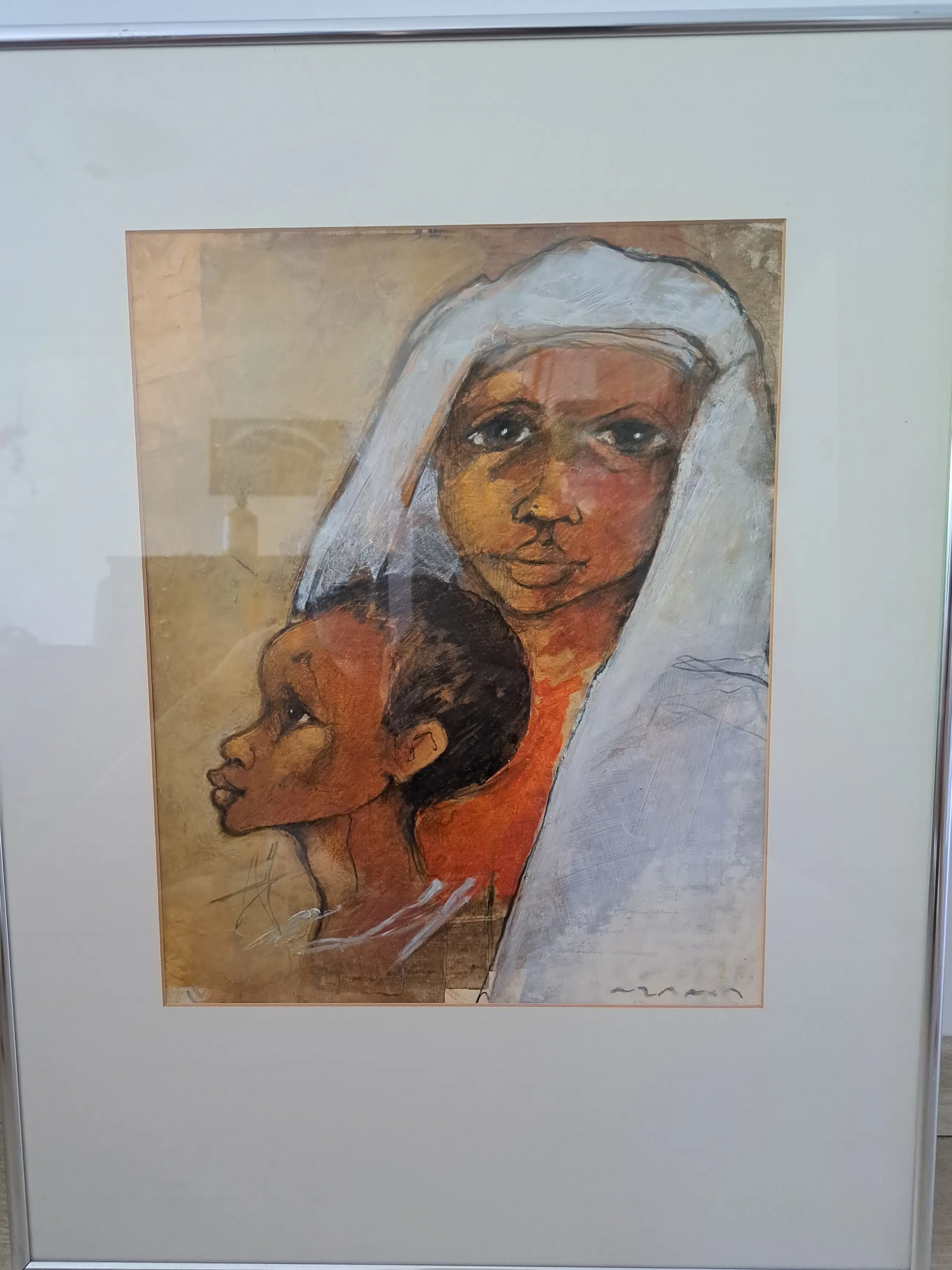 Het werk is gesigneerd met naam NZAMA. Dit was pseudoniem van Machiel Hopman. Het werk zit in passe-partout in lijst metaalkleurig.