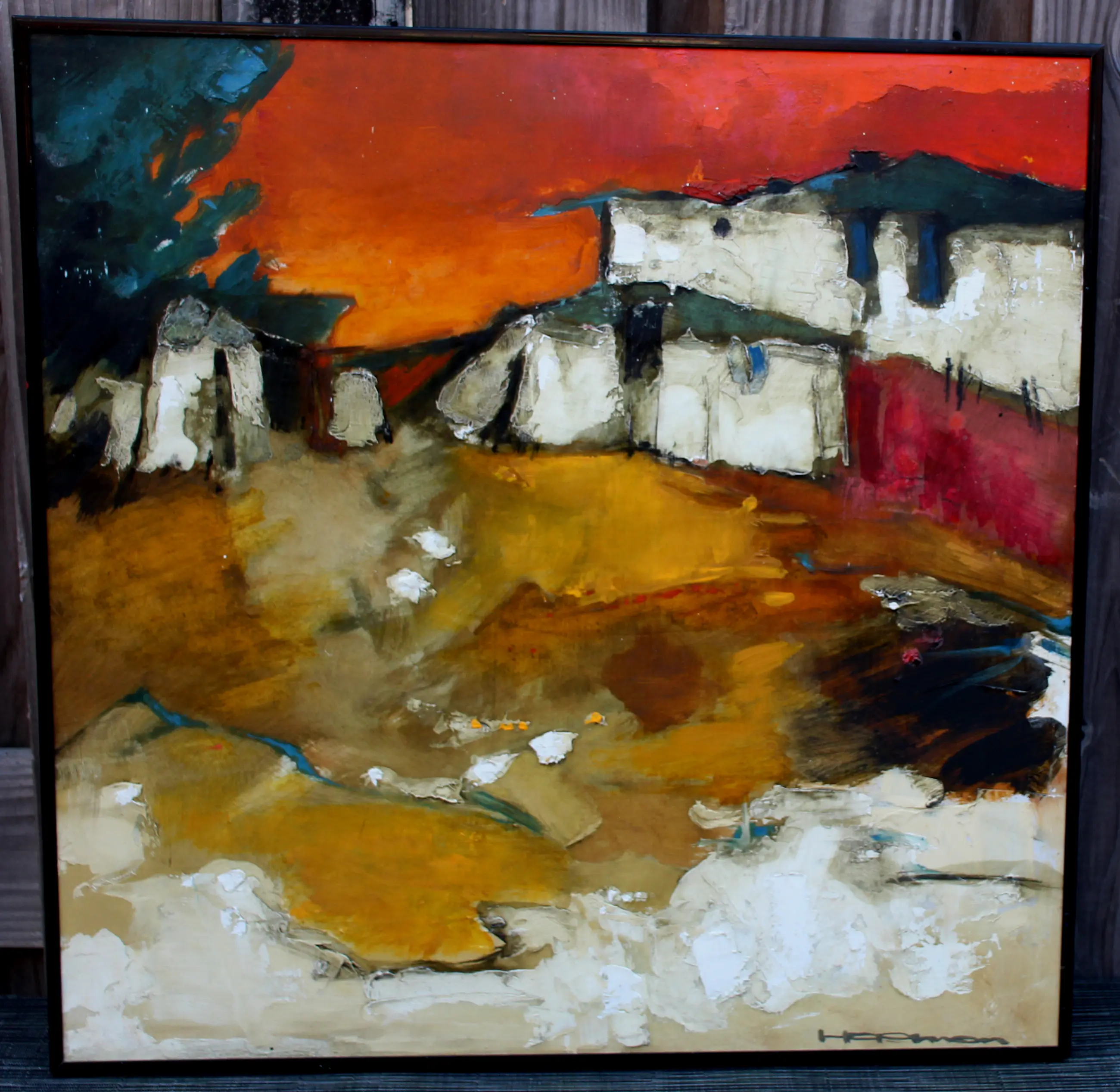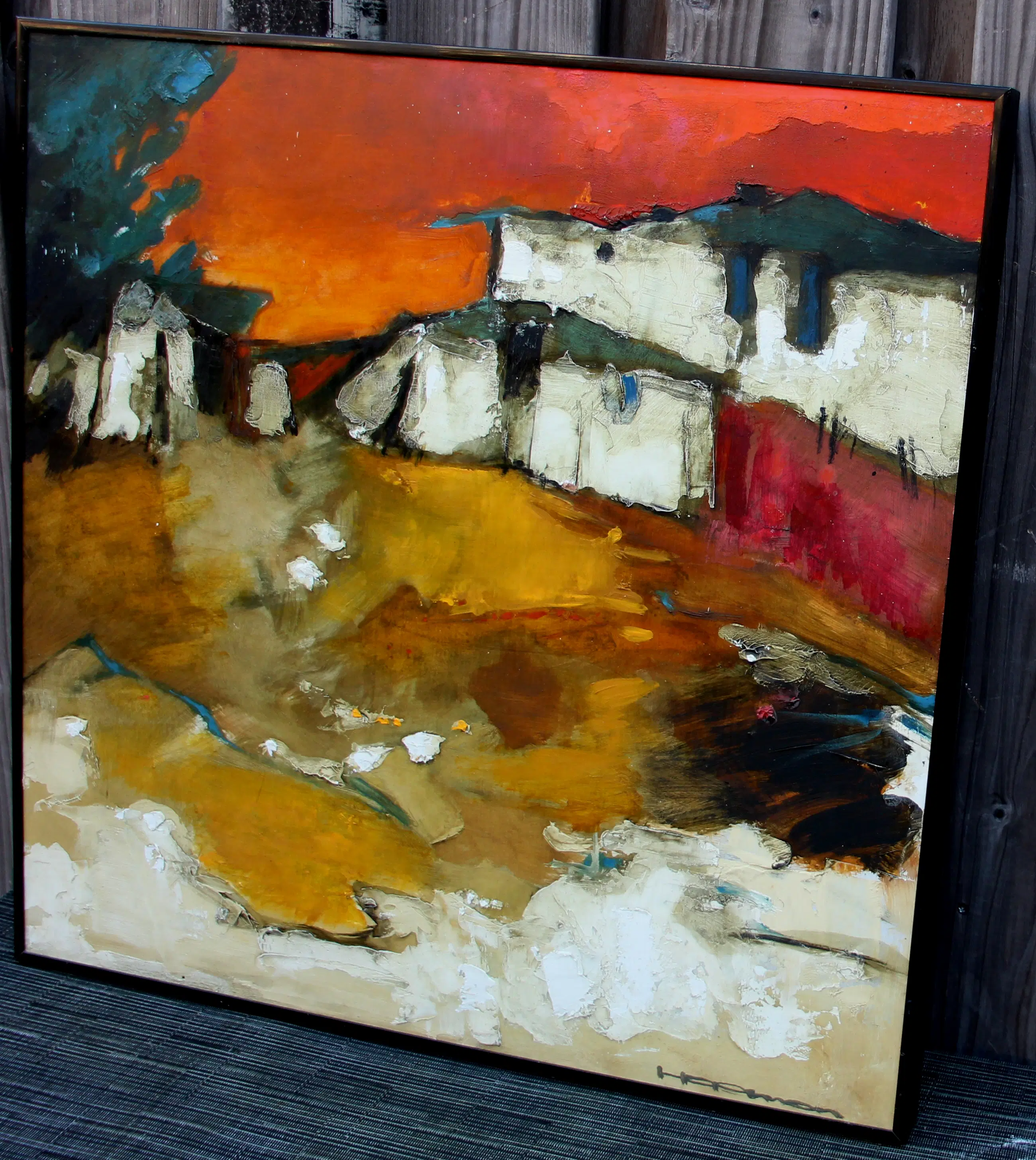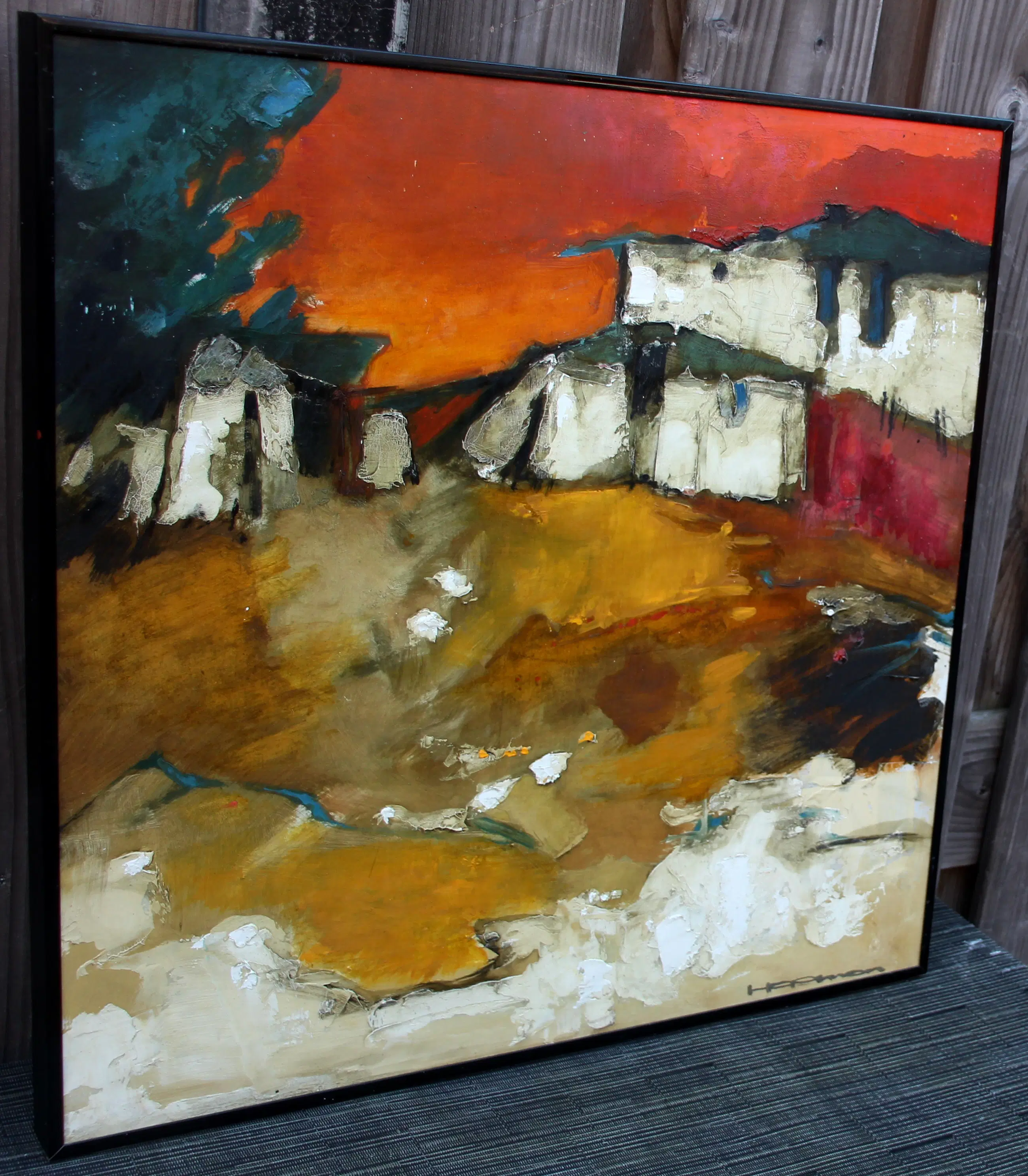 Ingelijste olieverf op paneel, van Machiel Hopman. Voorstelling van een landschap. Afmetingen incl lijst: H60 x b60cm. Afmetingen voorstelling: H57 x b57cm. Het werk is rechts onderaan gesigneerd, door de kunstenaar. De authenticiteit van het, aangeboden, werk wordt volledig gegarandeerd. Een certificaat van echtheid kan, op aanvraag, worden gemaild.