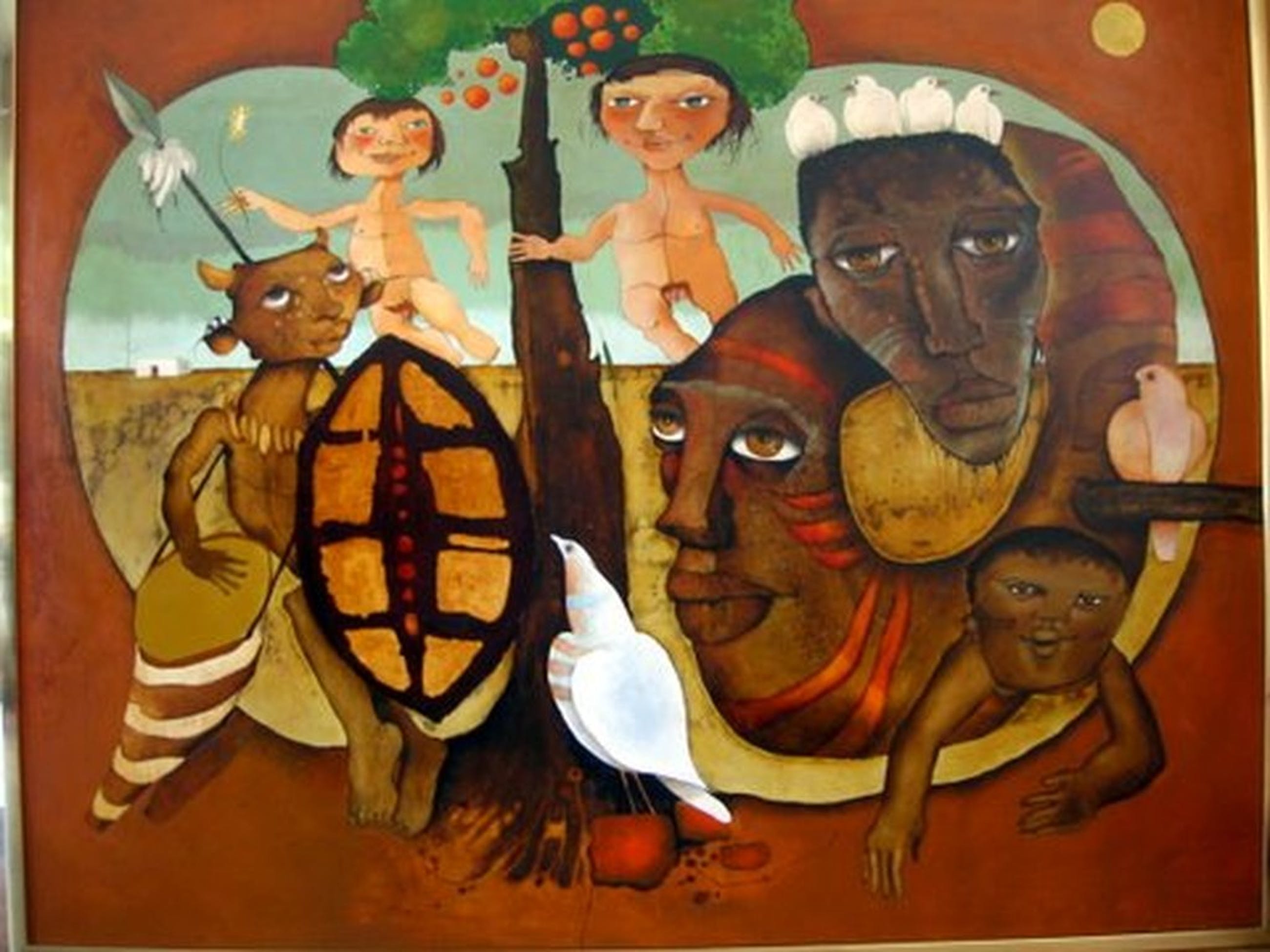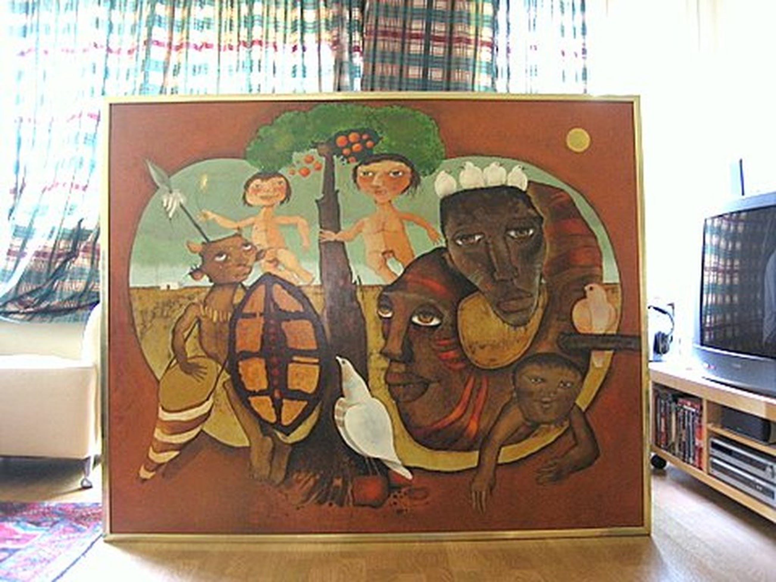 Olieverf schilderij op paneel. Kijk van de zwarte Zuid-Afrikaan op de apartheid door de ogen van een op dat moment nog in Zuid-Afrika wonende schilder. Dit schilderij dateert uit 1976 en is niet alleen zijn enige werk dat verhaalt over de apartheid, maar tevens een van zijn laatste werken onder zijn pseudoniem 'Nzama' waarmee dit werk tevens is gesigneerd. Hopman is in 1977 teruggekomen naar Nederland. Het schilderij verkeert in een uitstekende staat, is ingelijst in een geel koperen lijst en is een origineel.