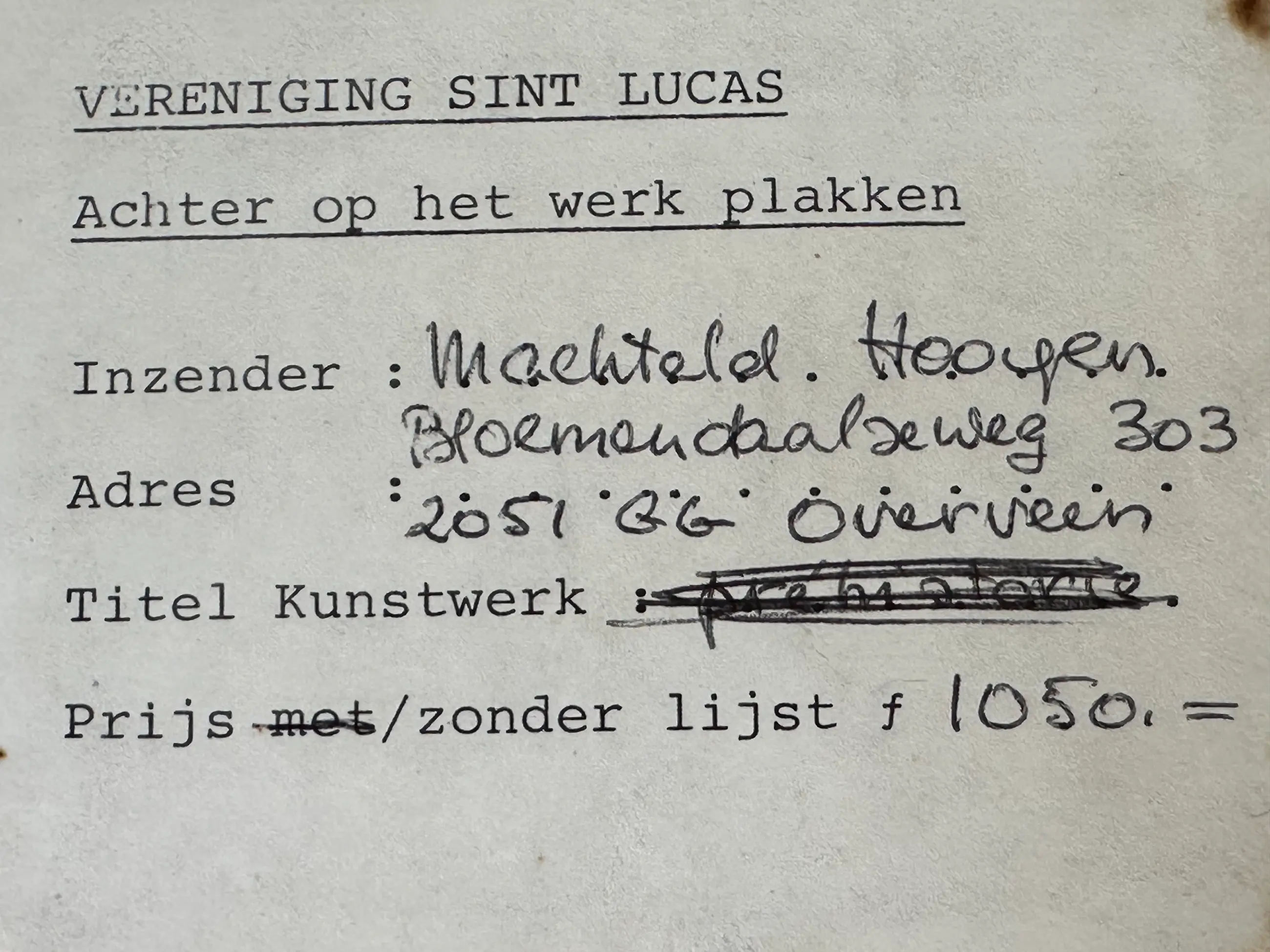 | Afhalen | Het werk is af te halen op locatie. Als koper dient u zelf verpakkingsmateriaal mee te nemen. De locatie is: Heemstede, Nederland | ||||||||||