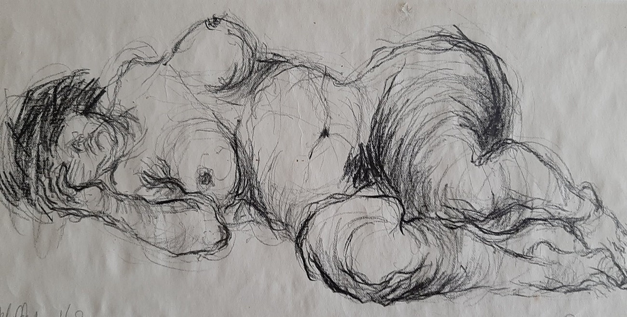 Fraai ingelijste houtskooltekening van Madeleine Leddy