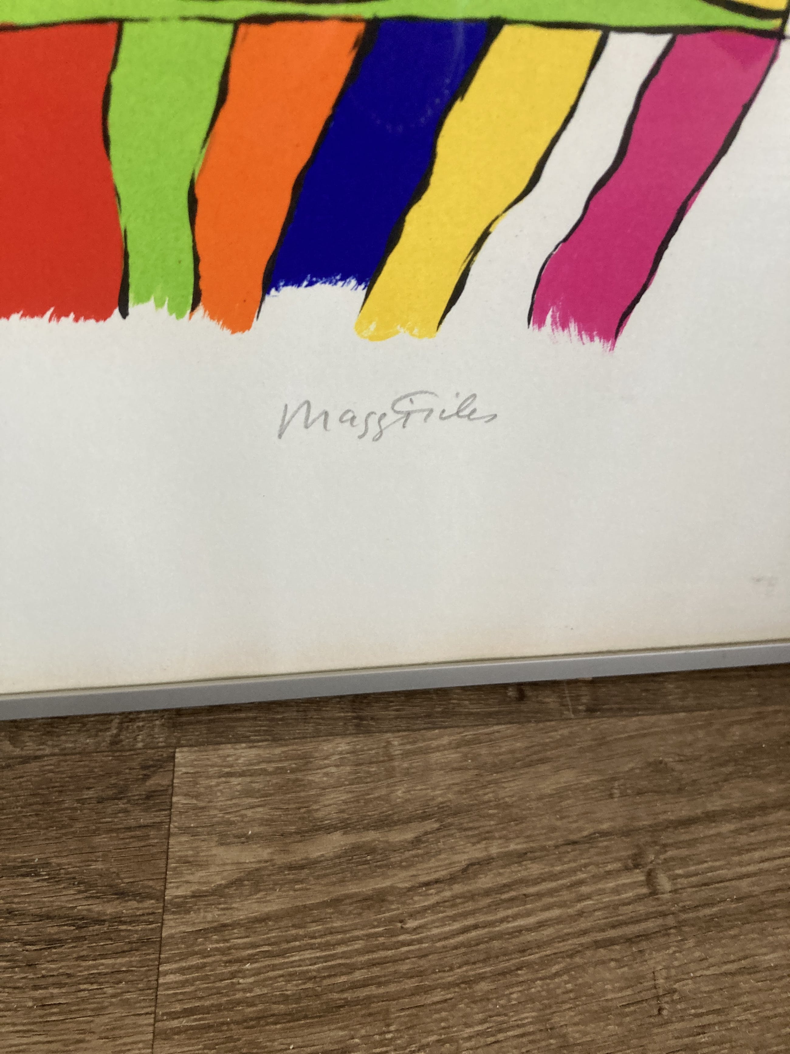 Vrolijke en kleurrijke litho in een Barth lijst. Met l.o.137/300 Kees op stap 1990 met potlood en r.o.Maggi Giles met potlood.