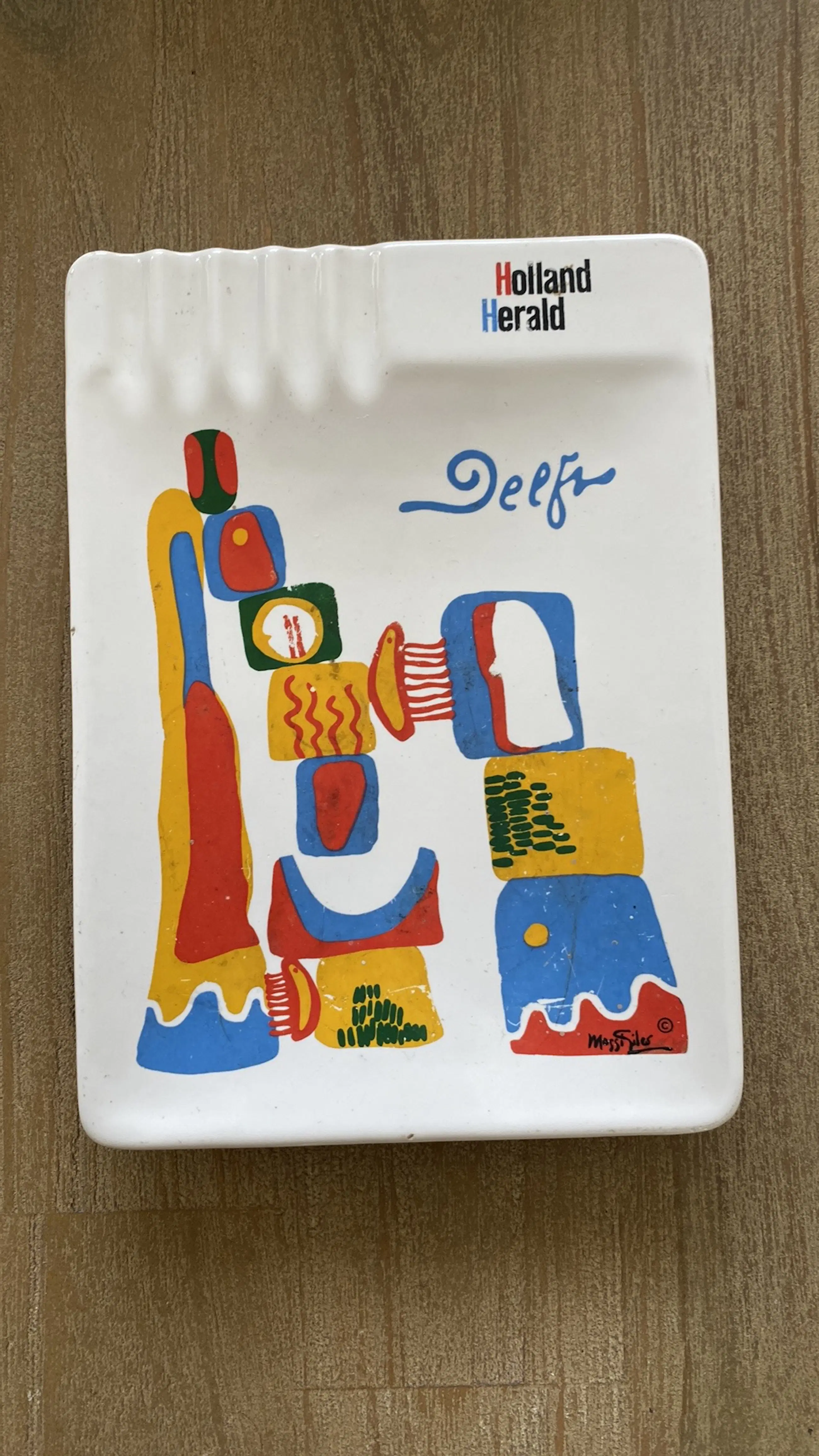 Een zeldzame asbak ontworpen door Maggi Giles voor Holland Herald. De asbak is uit de jaren 70 van Porceleyne Fles.