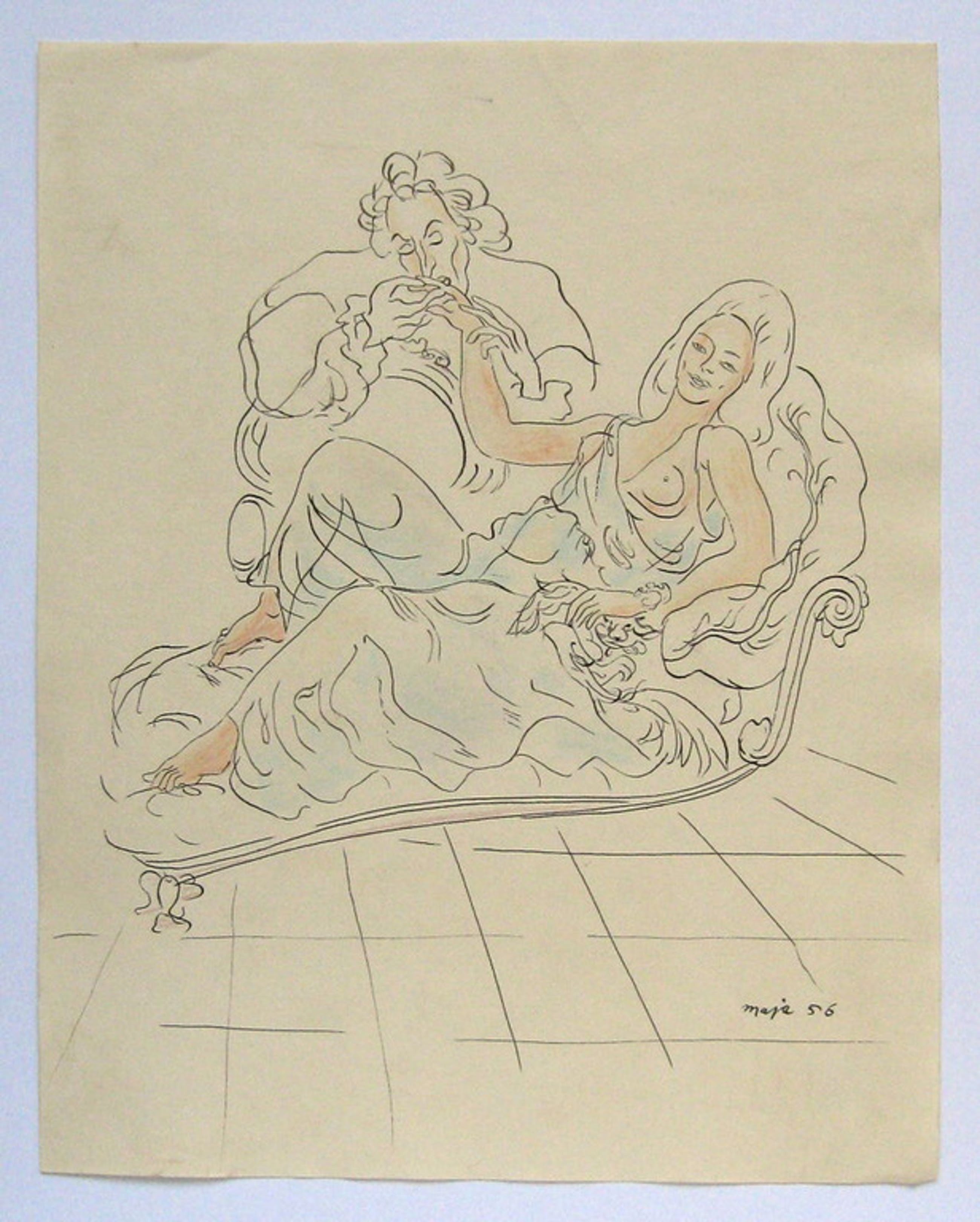 Authentieke Indische inkt (Indian ink) en aquarel tekening 1956