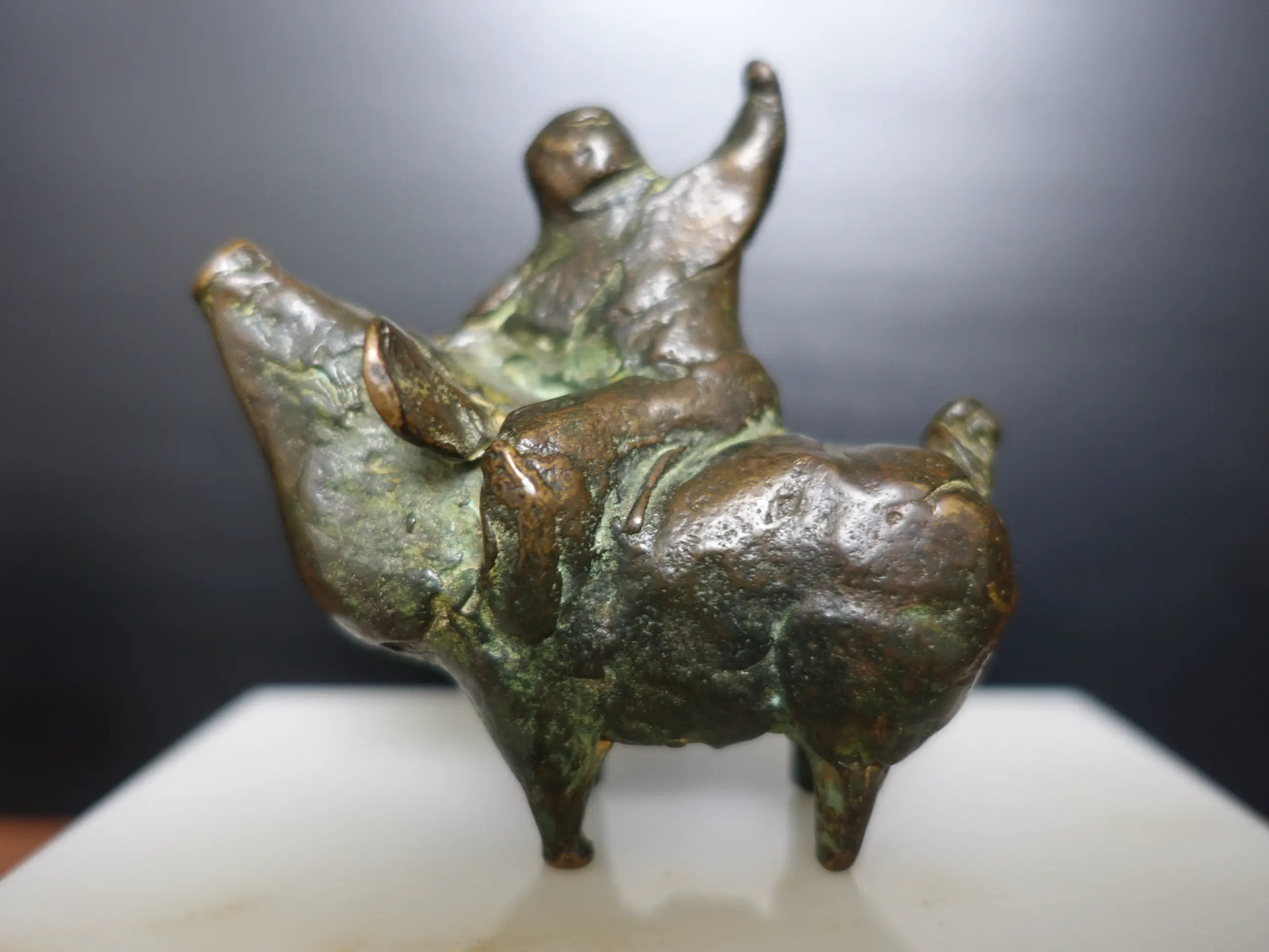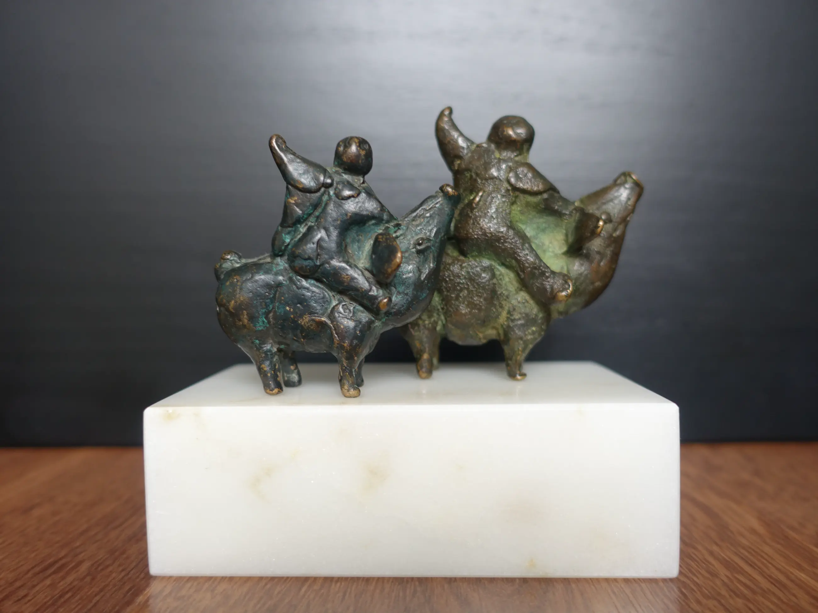 TWEE beeldjes , monumentje voor het sparende kind, GROOT & KLEIN. Het gebeurt zelden dat de grote en de kleine versie in één lot worden aangeboden. Let op ZONDER de afgebeelde sokkel. Afmeting klein: 6 x 6 x 3 Afmeting groot: 7 x 8 x 3,5